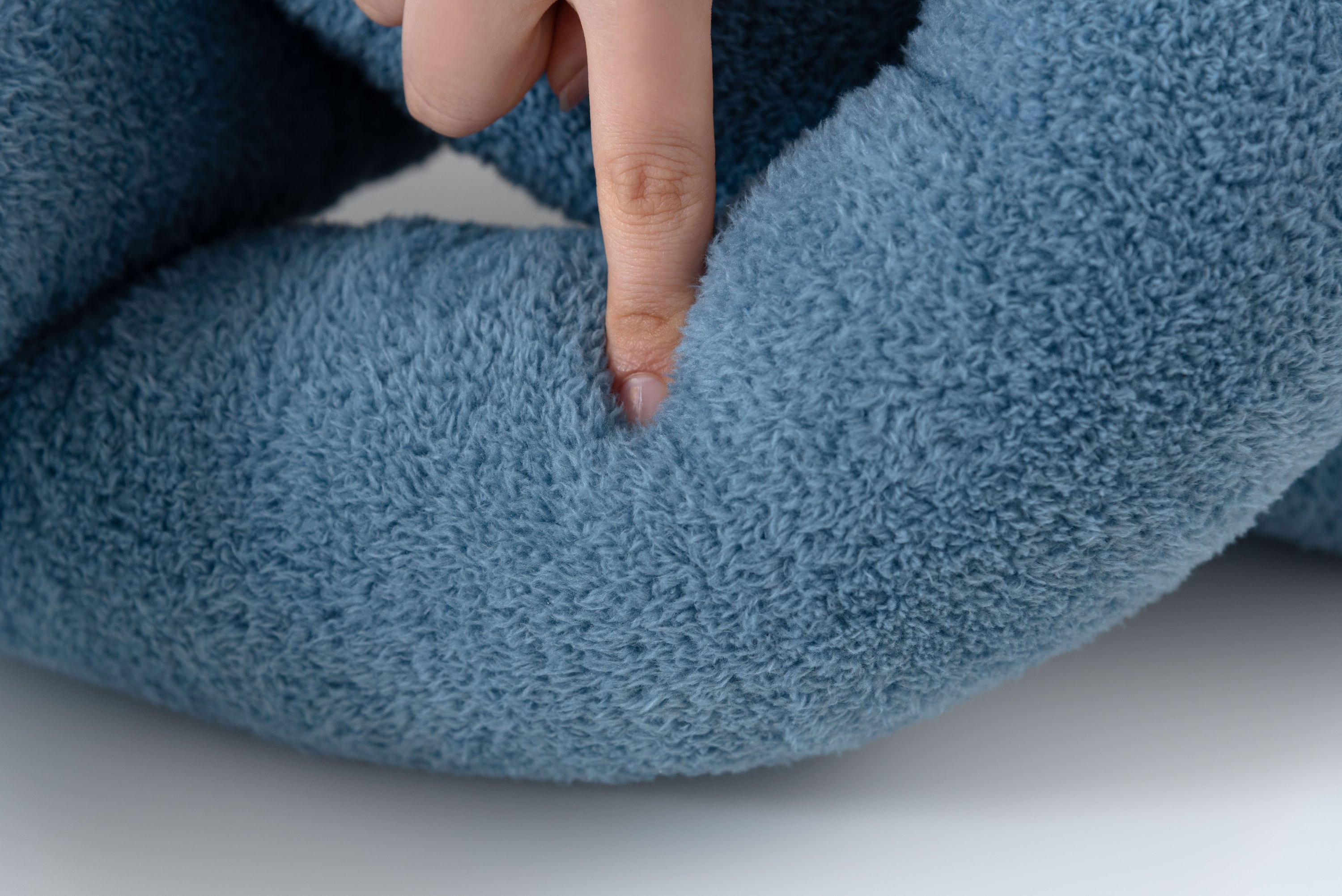 もちもち触感のブークレ生地を使用したロープクッション。触り心地の良い感触と、インテリア性のあるデザインが魅力的なアイテム。結び目を解くことができる仕様なので、自由な使い方ができます。スリムなロングクッションとしても。クッション性が高く、やわらかい弾力が癖になる触り心地。抱き枕や腰当としても使えます。置いておくだけでも目を引くユニークなフォルムなのでインテリアのアクセントとしても。ぬくもりのあるモコモコとした立体感が心地よいブークレ生地を採用。