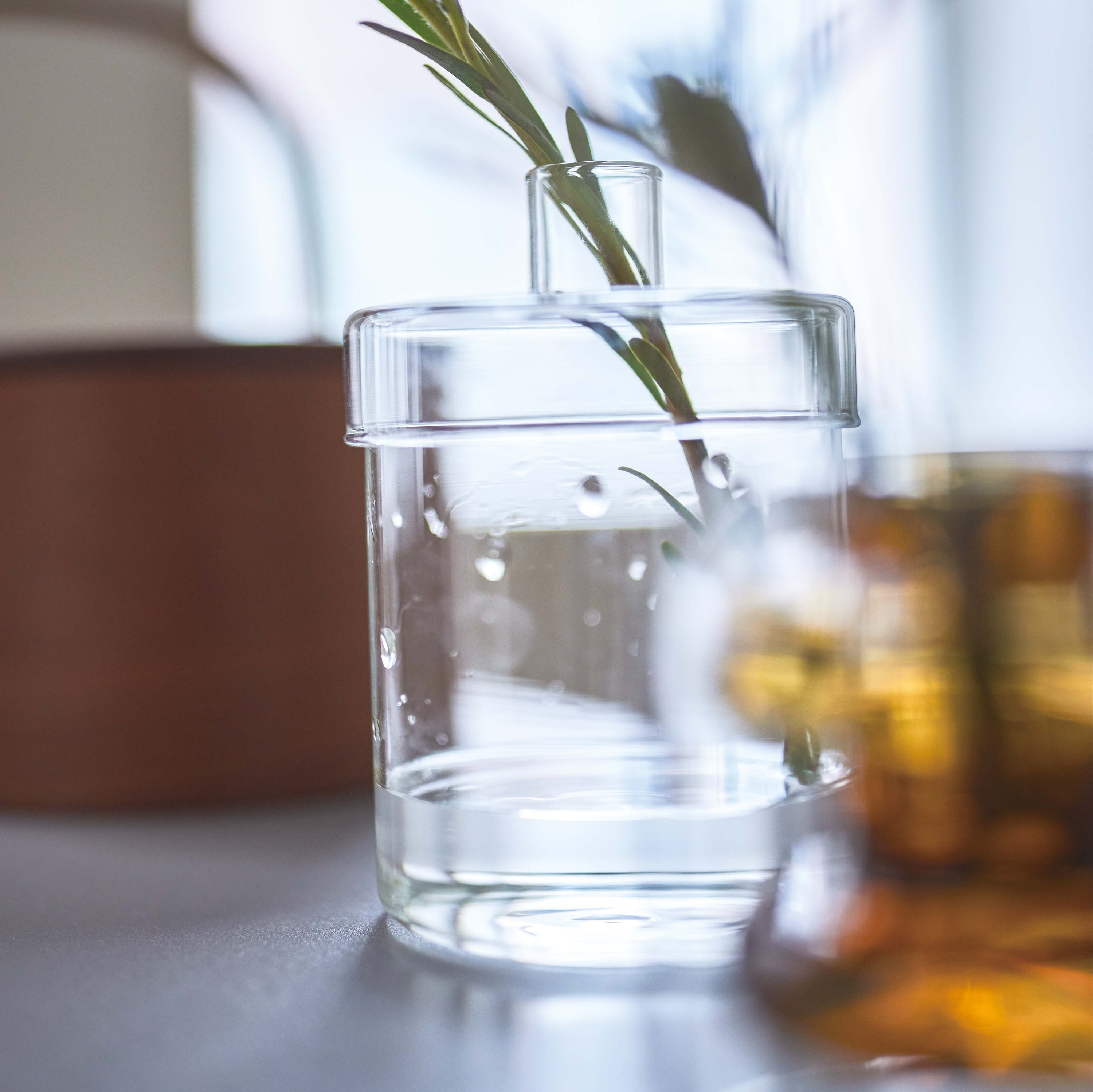 クリアガラス製の一輪挿し対応ベースで、どのような花材とも相性が良く、透明感と清楚さを兼ね備えた定番デザイン。完成品仕様で設置が簡単、個体差あり。インテリアを選ばず溶け込む花器としておすすめです。