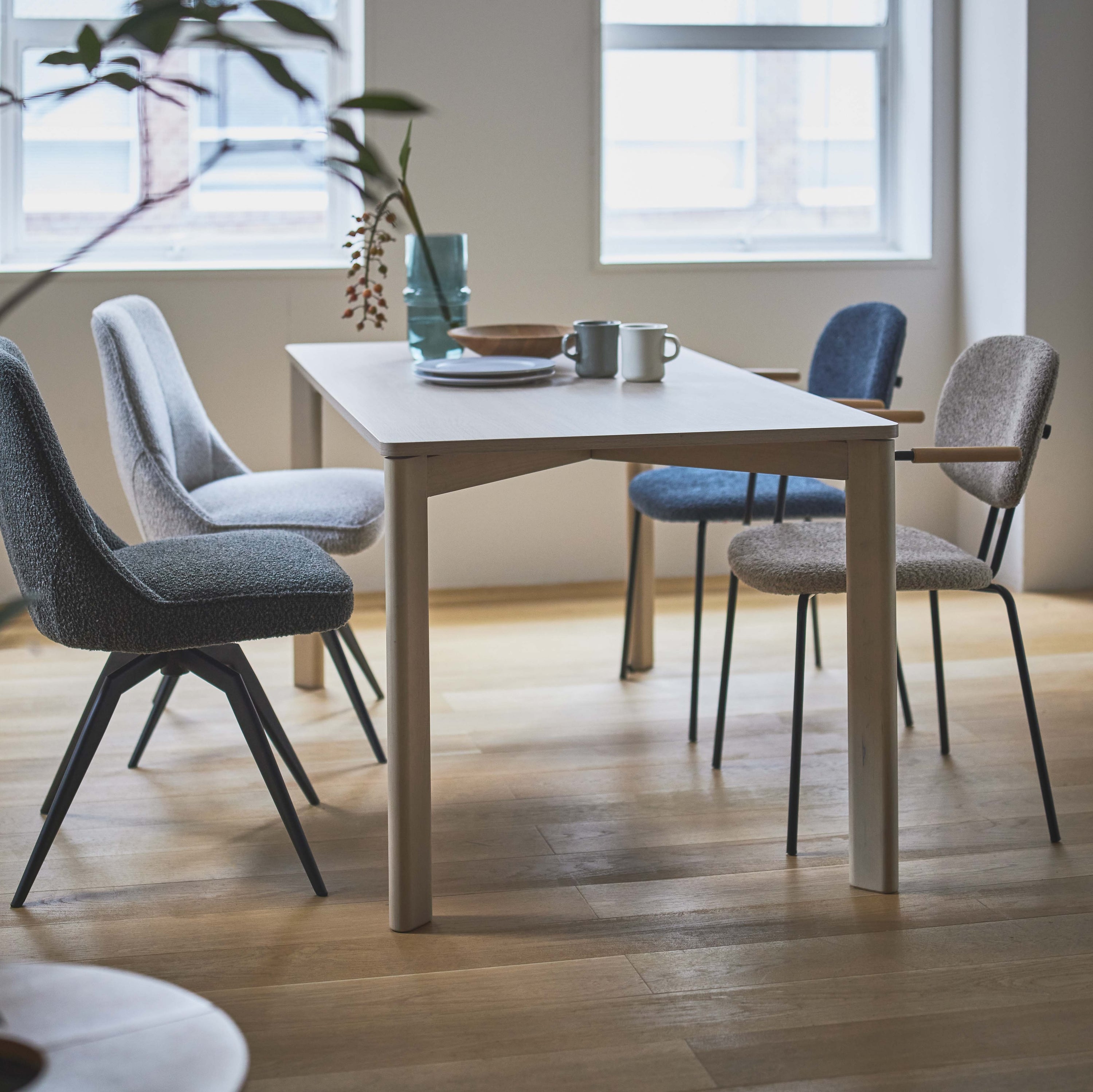 ROOMESSENCEのダイニングテーブルベージュです。安定感のあるつくりを備え、ダイニングや作業台として活躍します。ブランドの美意識を感じる佇まいで、日常づかいから来客時まで幅広く対応。品番:HOT-212。暮らしに上質なアクセントを添える一品です。