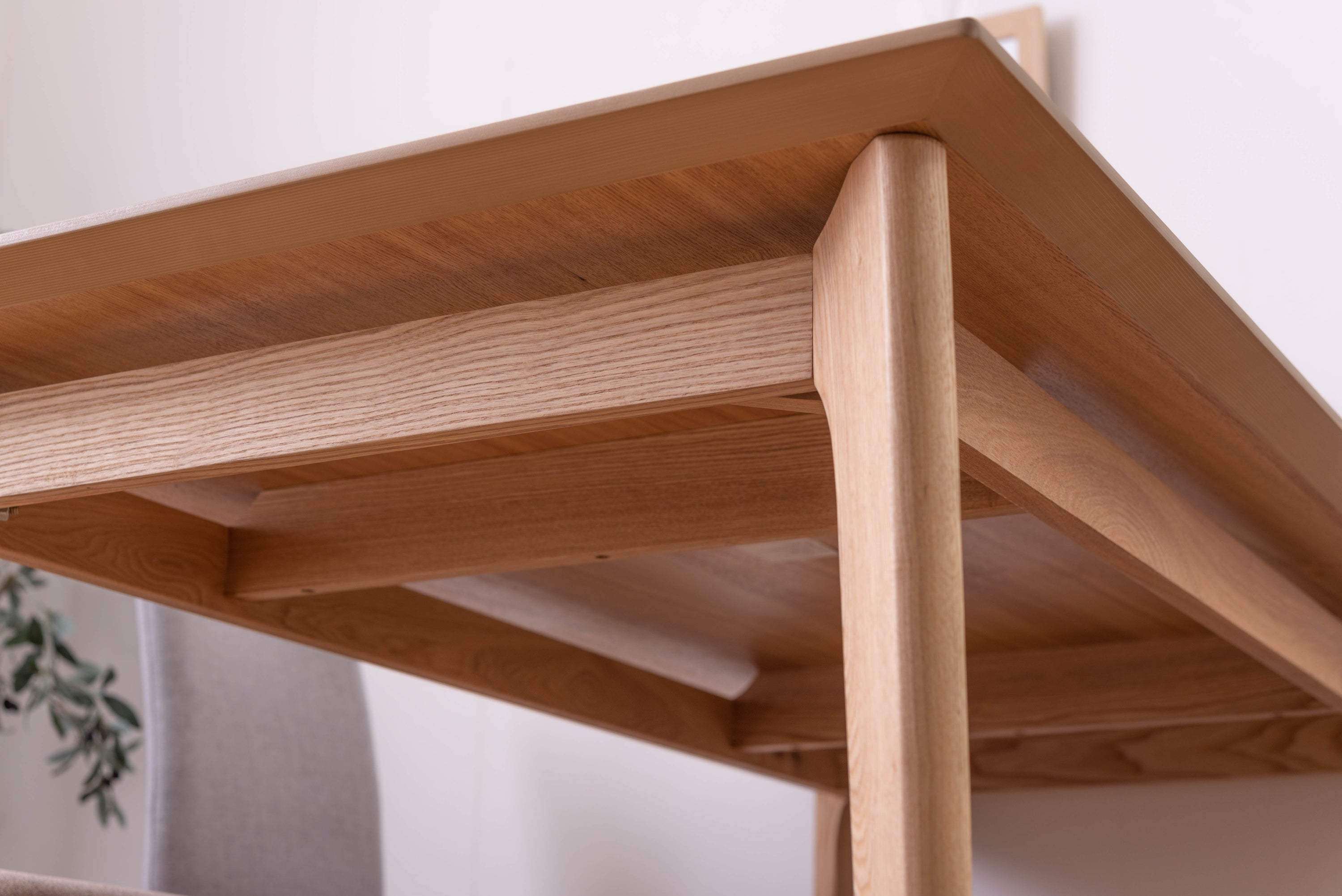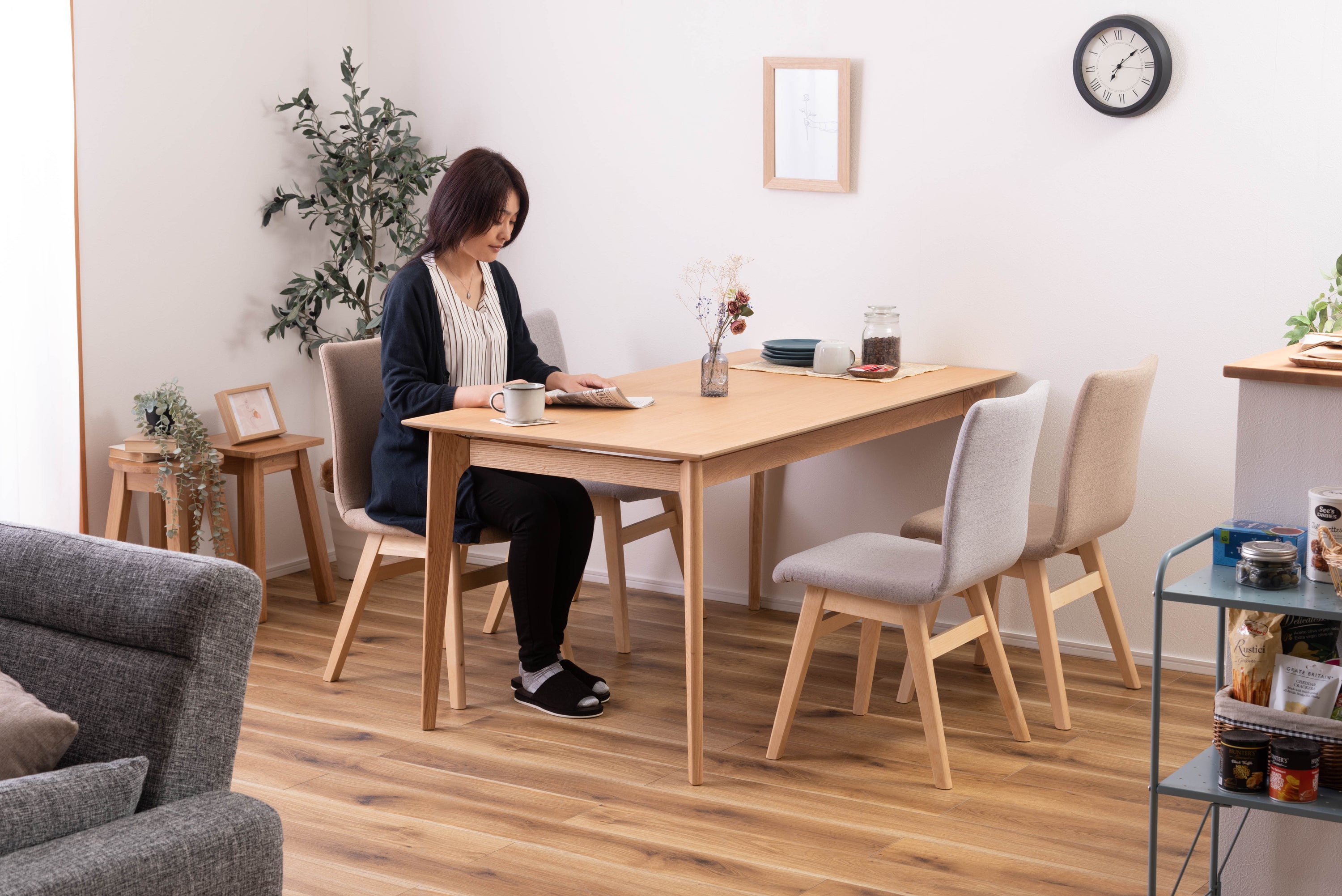 ROOMESSENCEのダイニングテーブルナチュラルです。安定感のあるつくりを備え、ダイニングや作業台として活躍します。ブランドの美意識を感じる佇まいで、日常づかいから来客時まで幅広く対応。品番:HOT-883NA。暮らしに上質なアクセントを添える一品です。