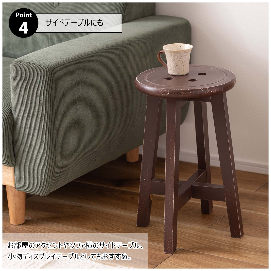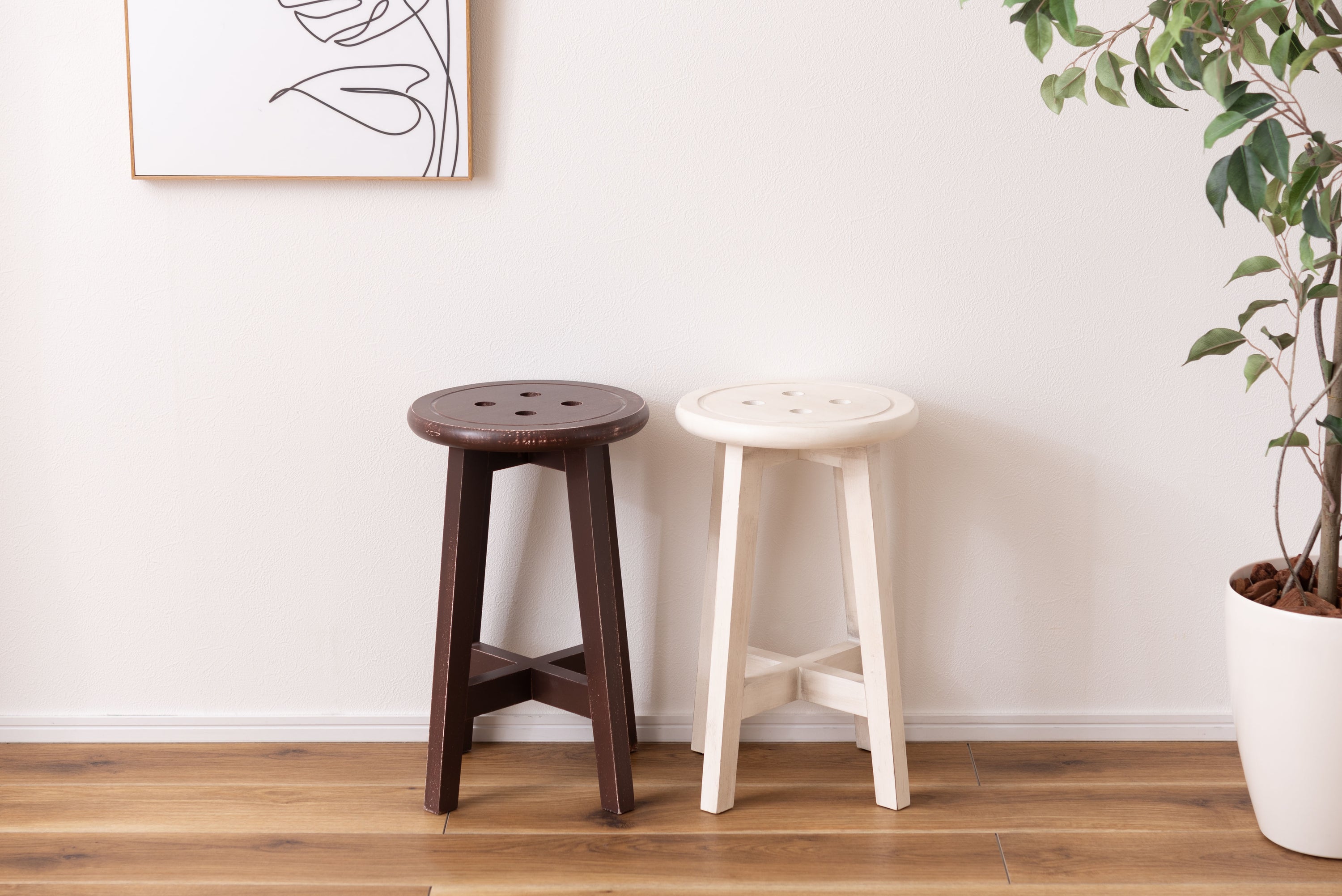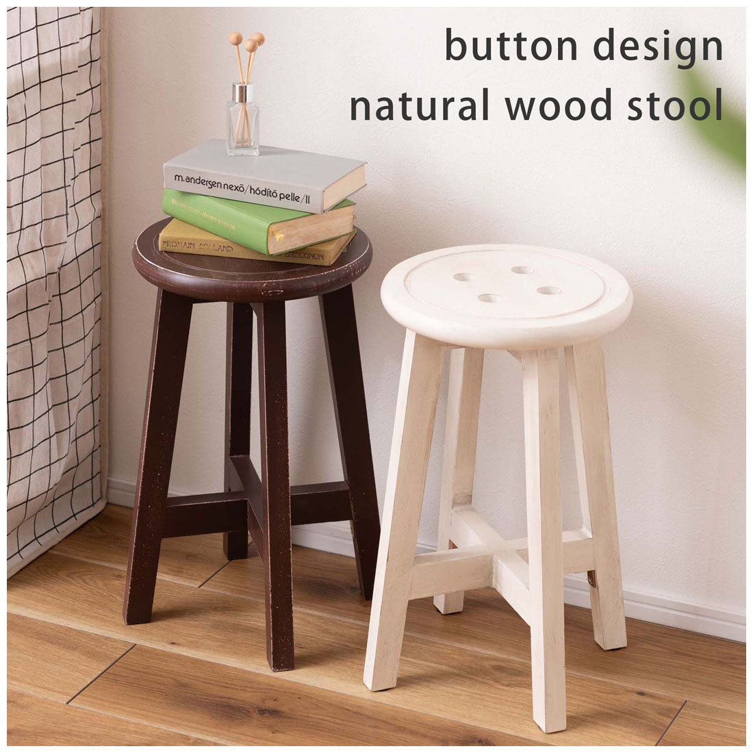 座面のボタンデザインが愛らしい、ヴィンテージ&シャビーシックテイストのスツール。天然木のポプラを使用しているので軽くて持ち運びもラクラク。座面までの高さは45cmと一般的なチェアと同じ座面高なのでダイニングでも使えます。普段使いや来客用としてのスツールはもちろん、お部屋のアクセントやソファ横のサイドテーブル、小物ディスプレイテーブルとしてもおすすめ。コンパクトサイズなので、玄関用のスツールにも最適。