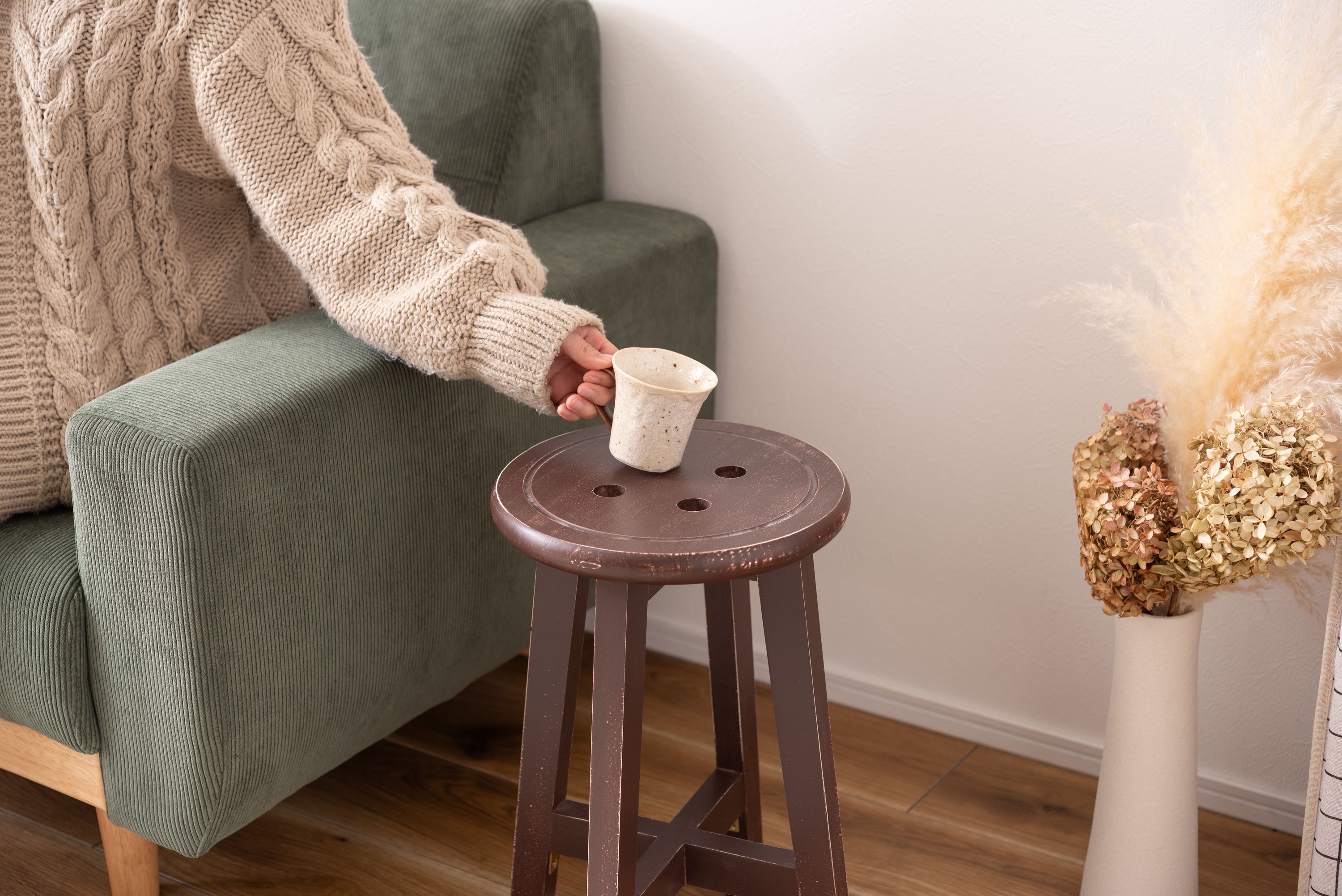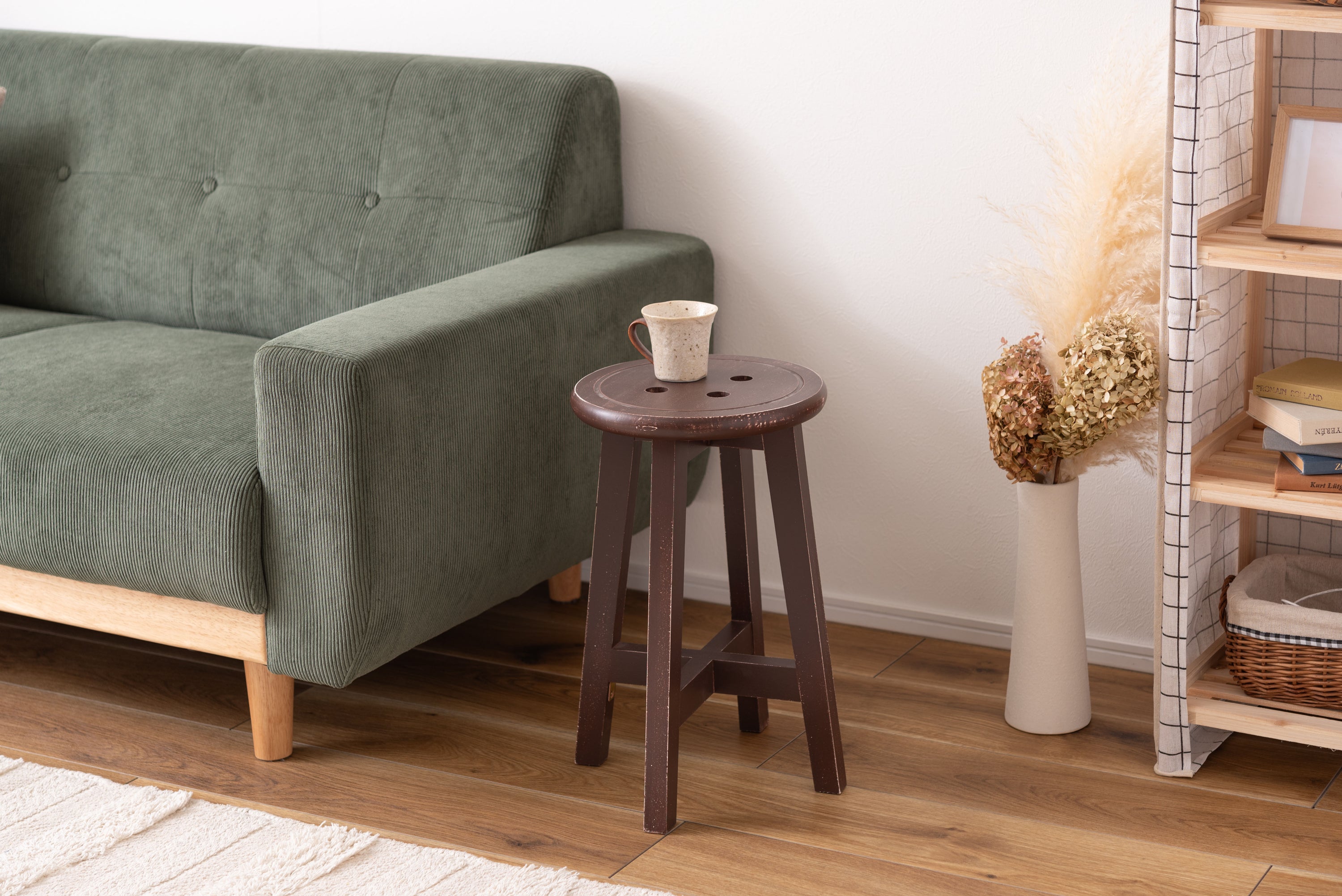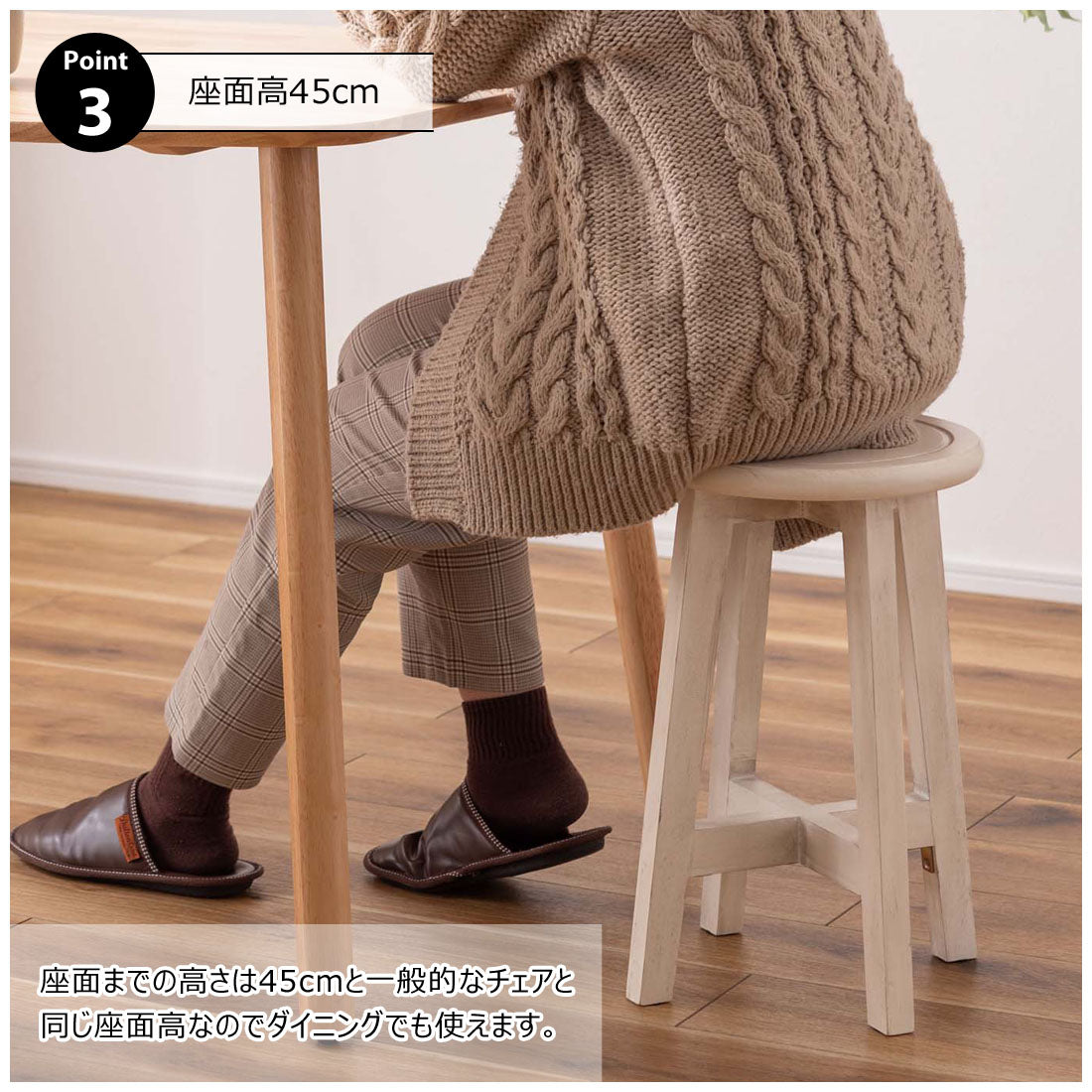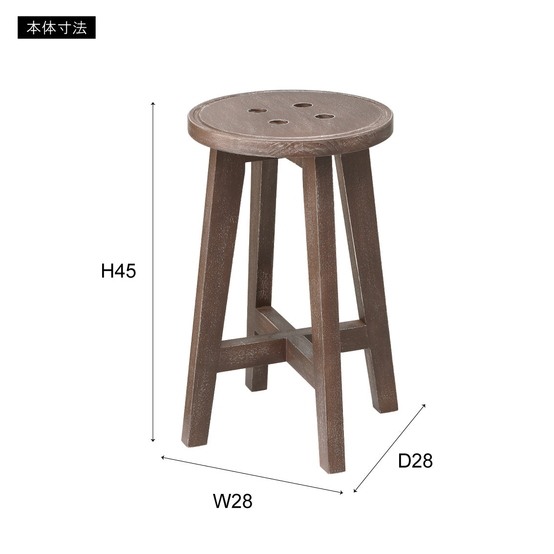 座面のボタンデザインが愛らしい、ヴィンテージ&シャビーシックテイストのスツール。天然木のポプラを使用しているので軽くて持ち運びもラクラク。座面までの高さは45cmと一般的なチェアと同じ座面高なのでダイニングでも使えます。普段使いや来客用としてのスツールはもちろん、お部屋のアクセントやソファ横のサイドテーブル、小物ディスプレイテーブルとしてもおすすめ。コンパクトサイズなので、玄関用のスツールにも最適。