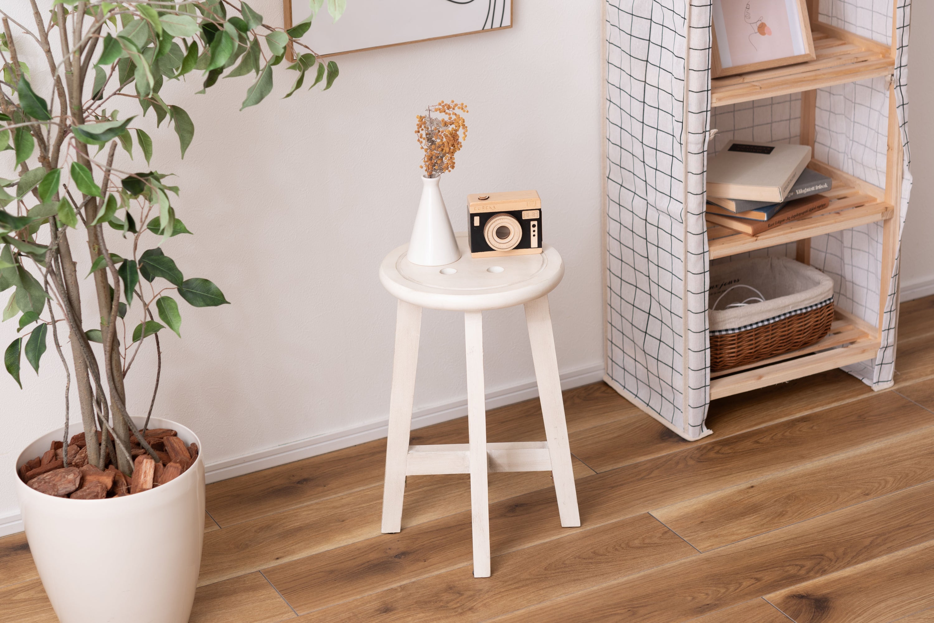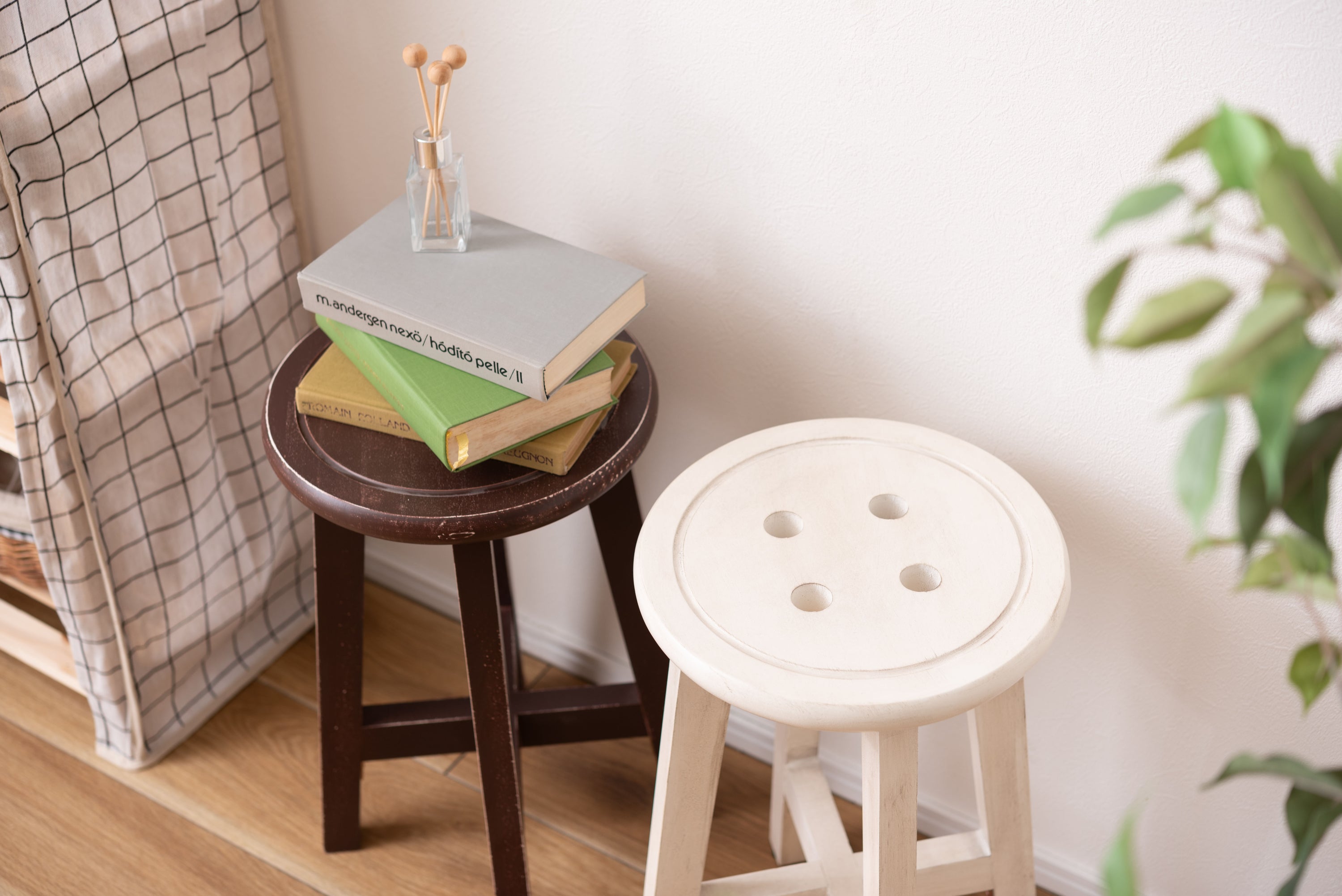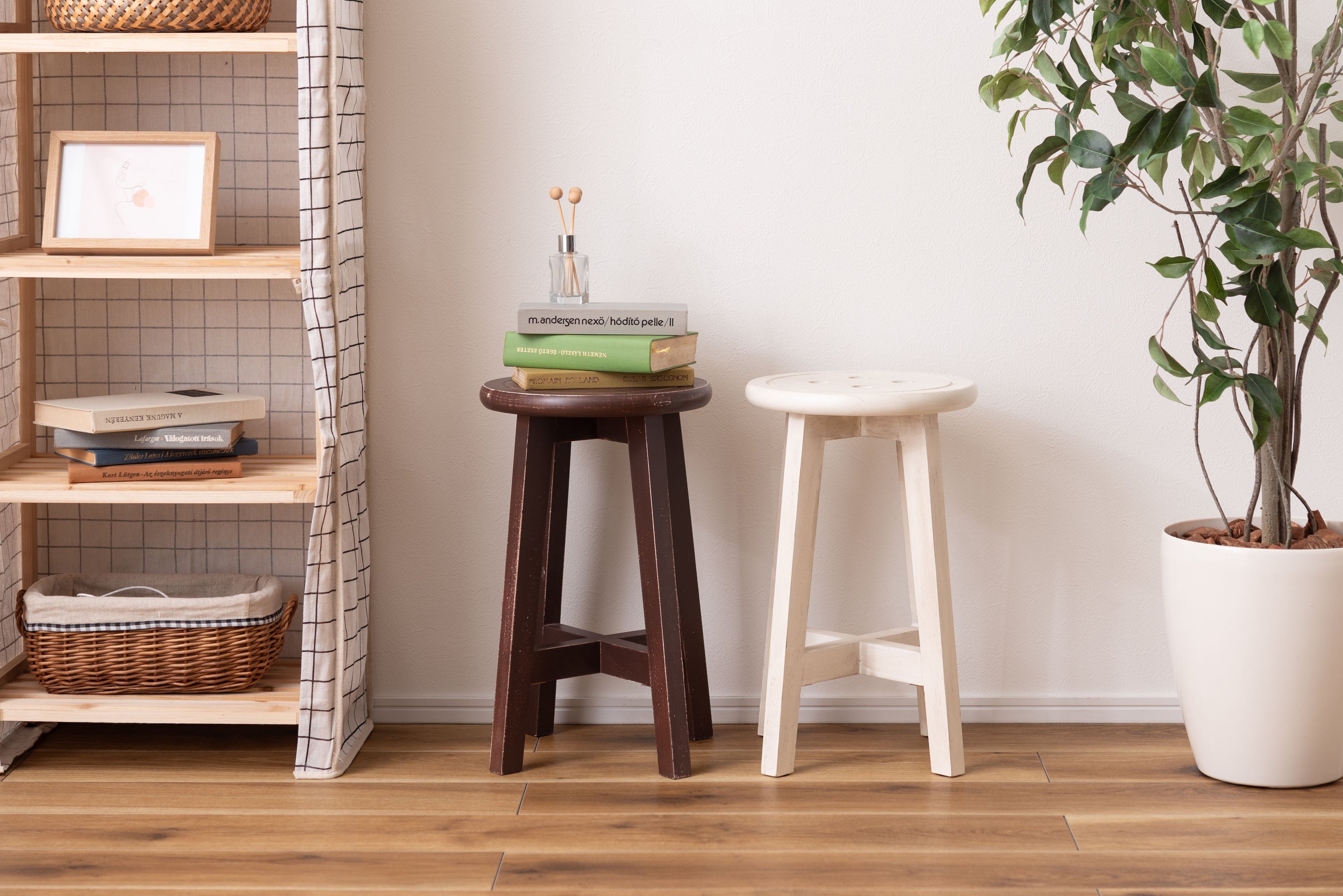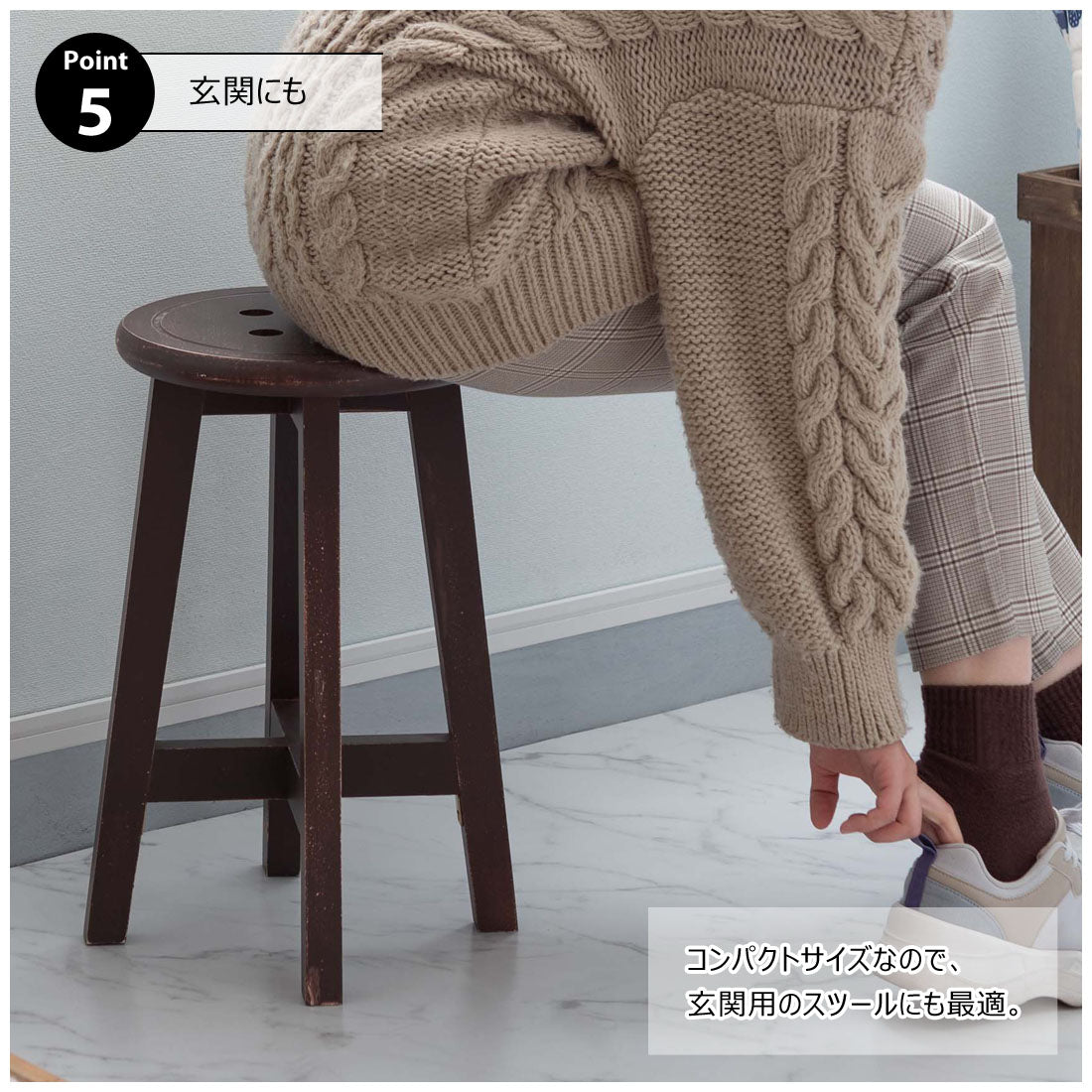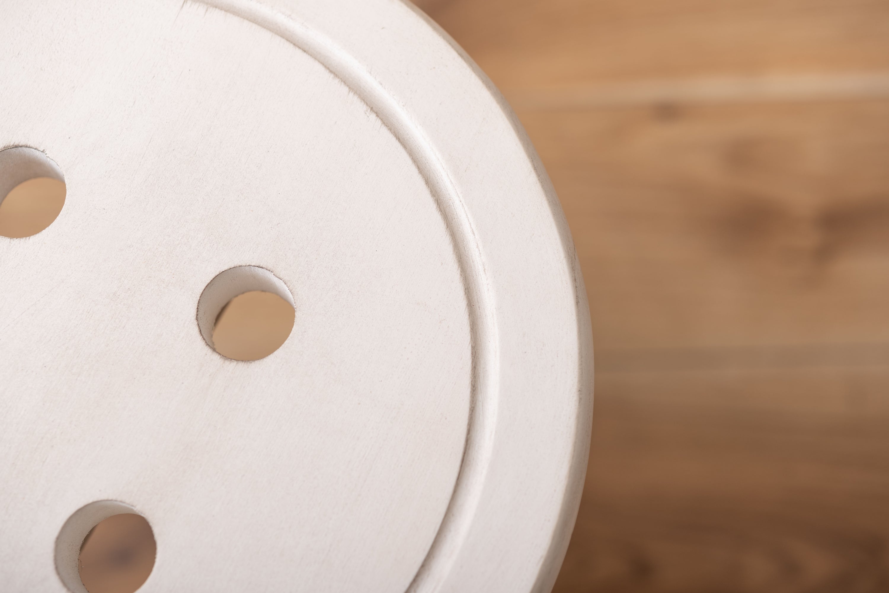 座面のボタンデザインが愛らしい、ヴィンテージ&シャビーシックテイストのスツール。天然木のポプラを使用しているので軽くて持ち運びもラクラク。座面までの高さは45cmと一般的なチェアと同じ座面高なのでダイニングでも使えます。普段使いや来客用としてのスツールはもちろん、お部屋のアクセントやソファ横のサイドテーブル、小物ディスプレイテーブルとしてもおすすめ。コンパクトサイズなので、玄関用のスツールにも最適。