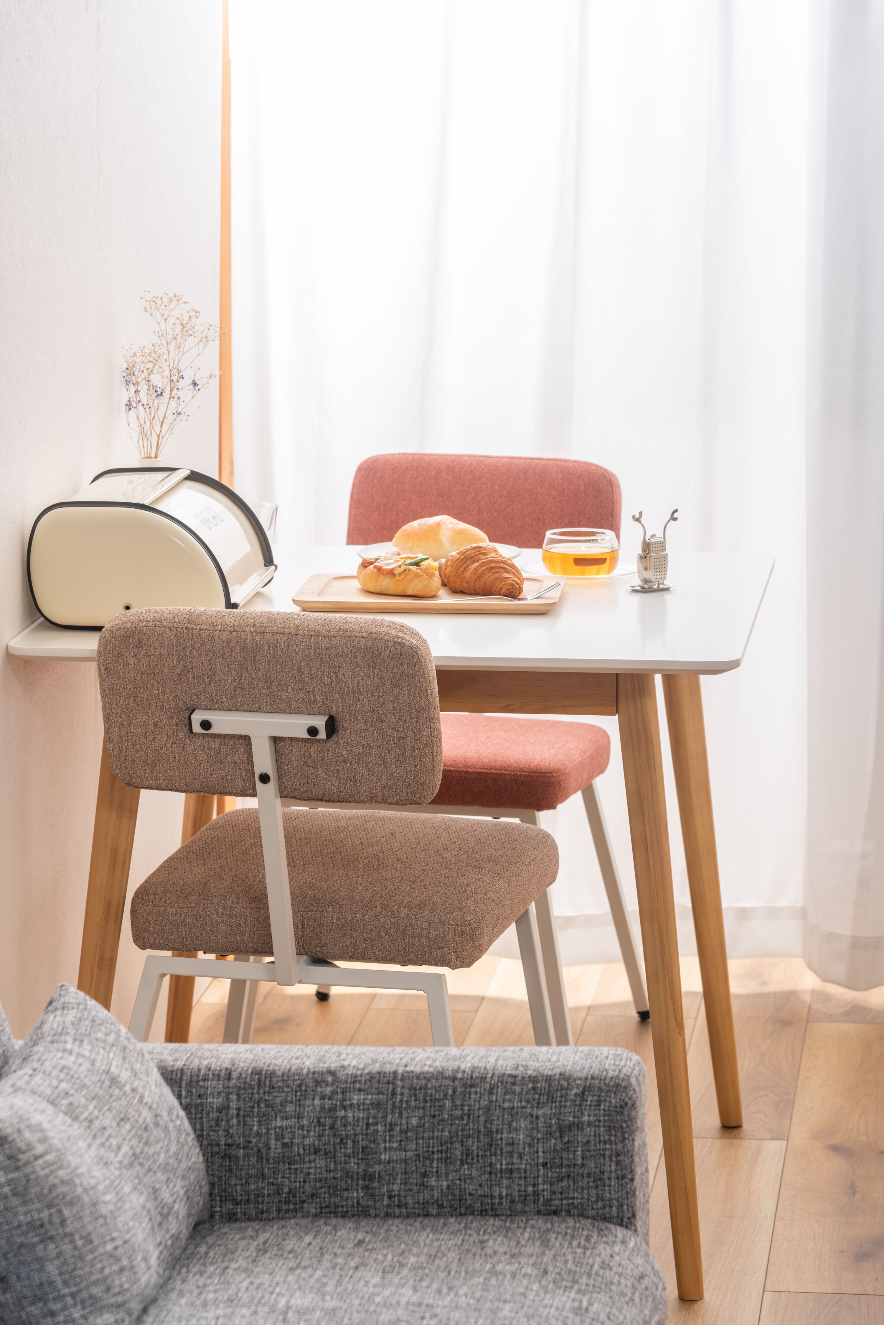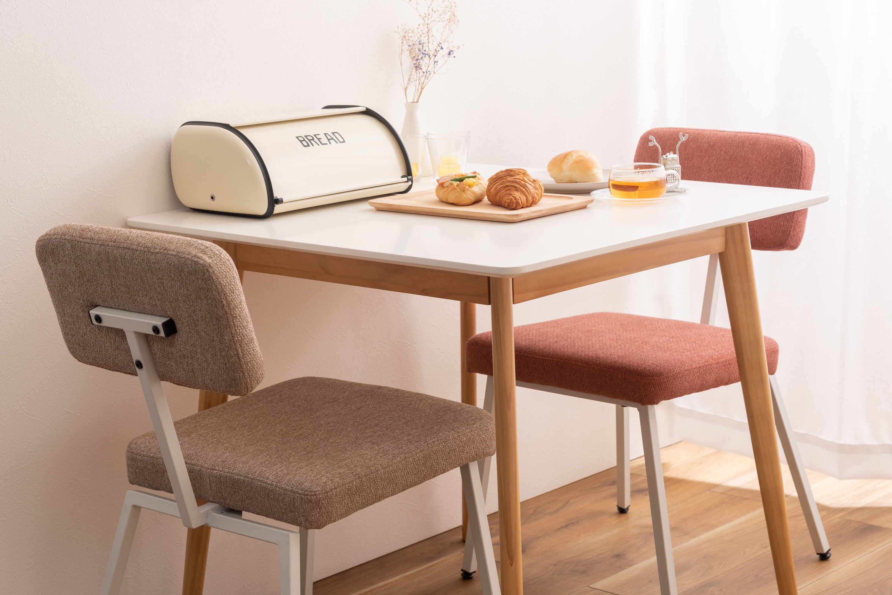 ROOMESSENCEのチェアベージュです。長時間でも快適な座り心地を備え、ダイニングやワークスペースに活躍します。ブランドの美意識を感じる佇まいで、日常づかいから来客時まで幅広く対応。品番:PC-259BE。暮らしに上質なアクセントを添える一品です。