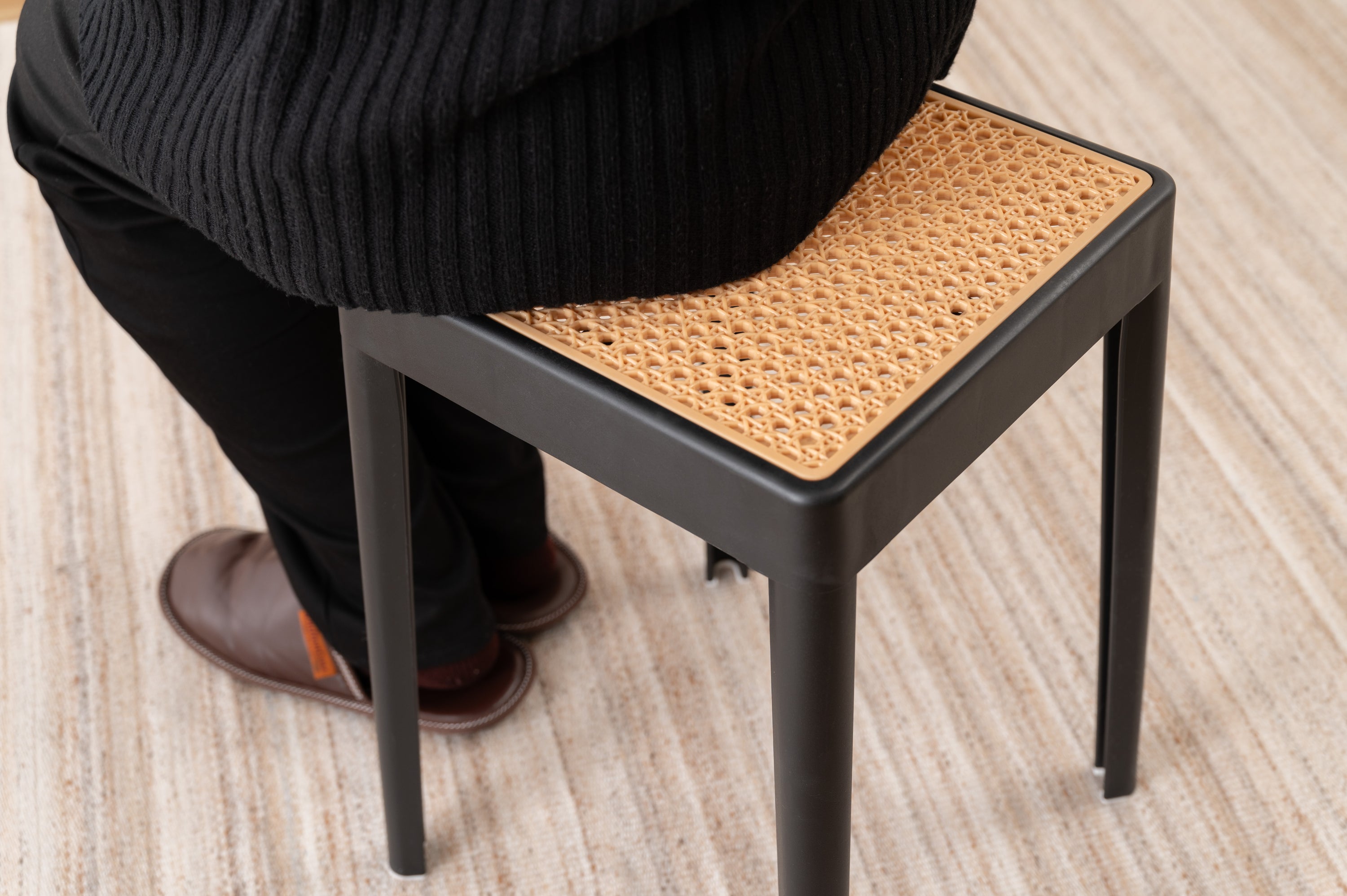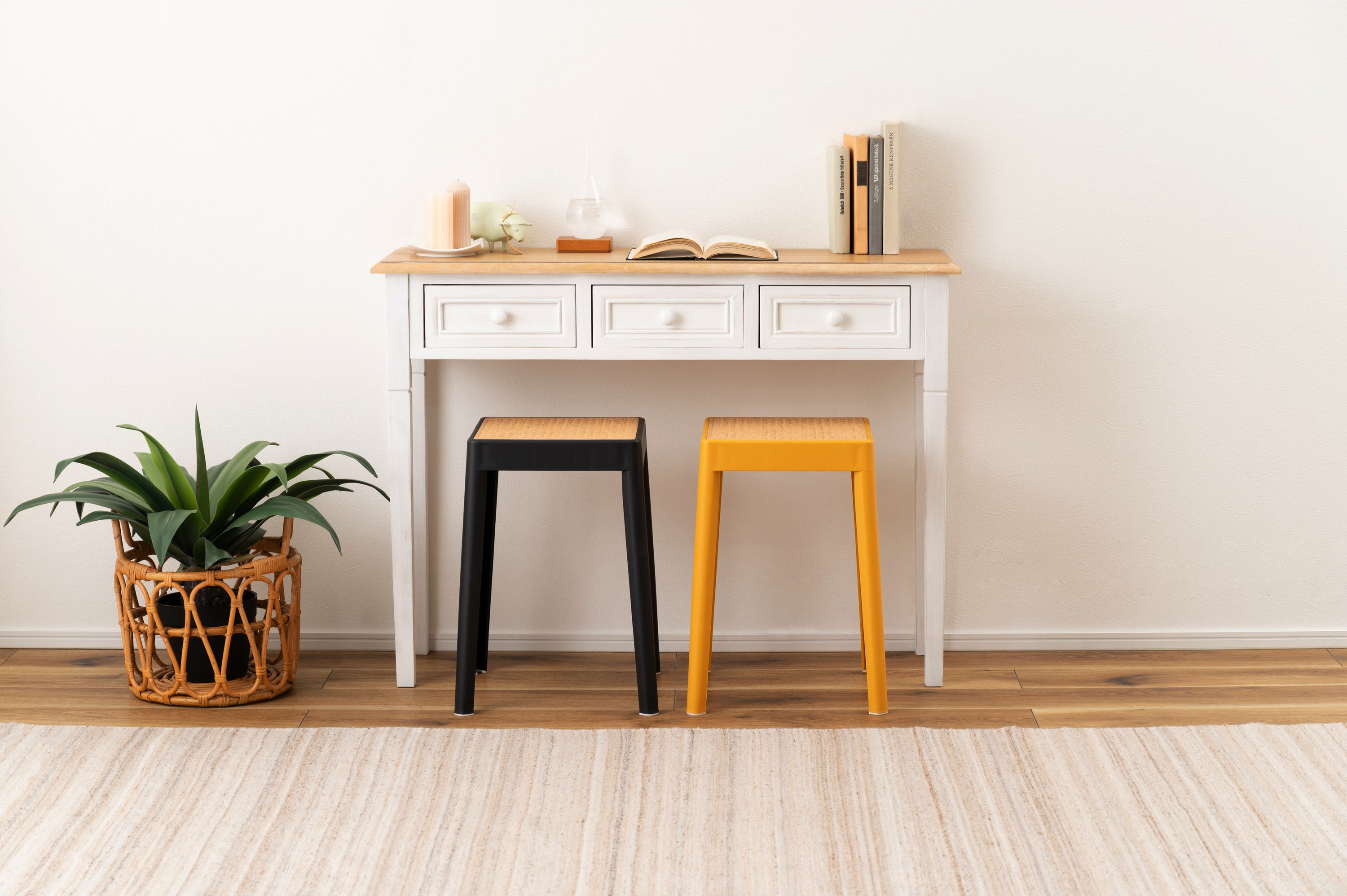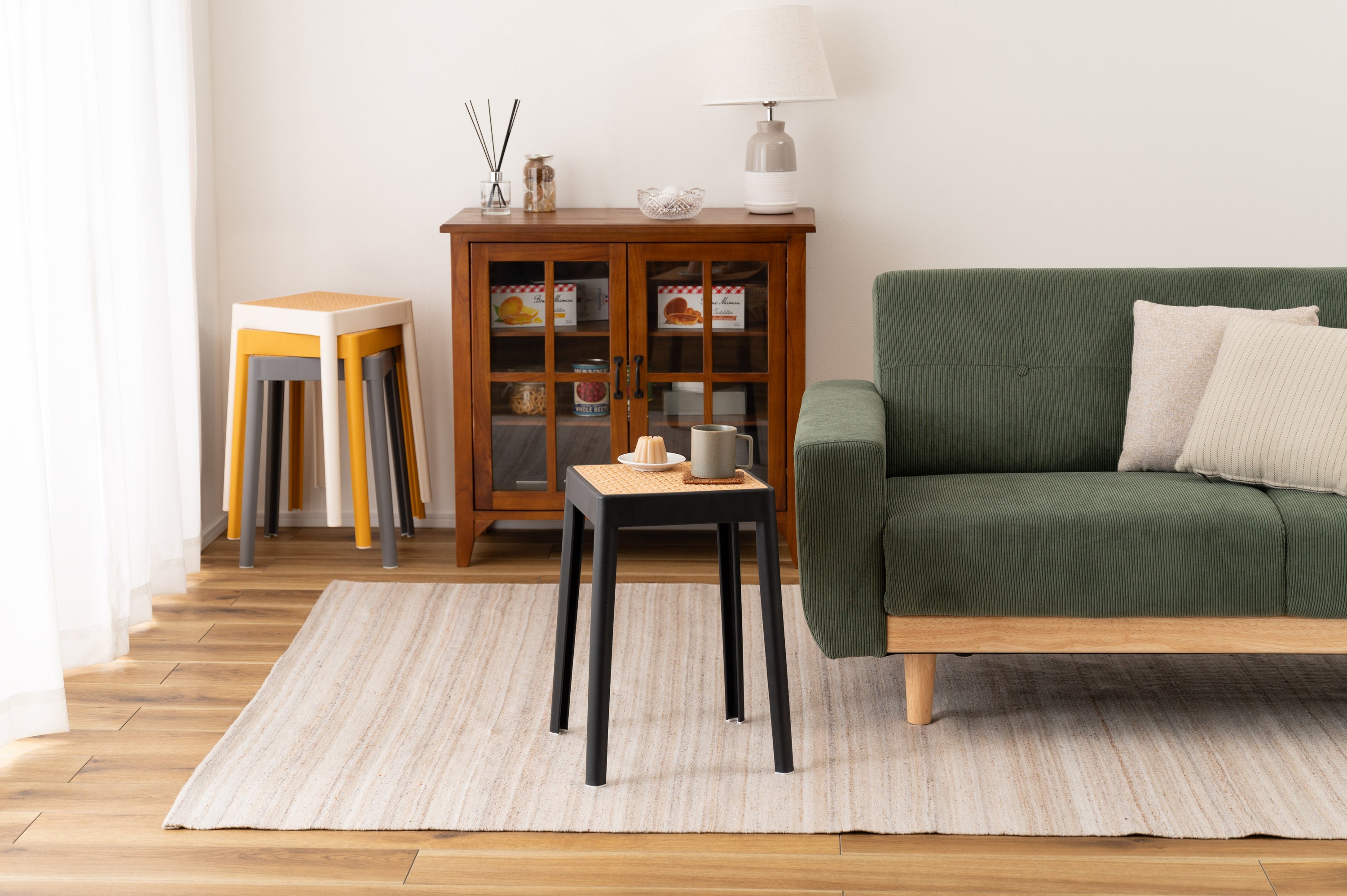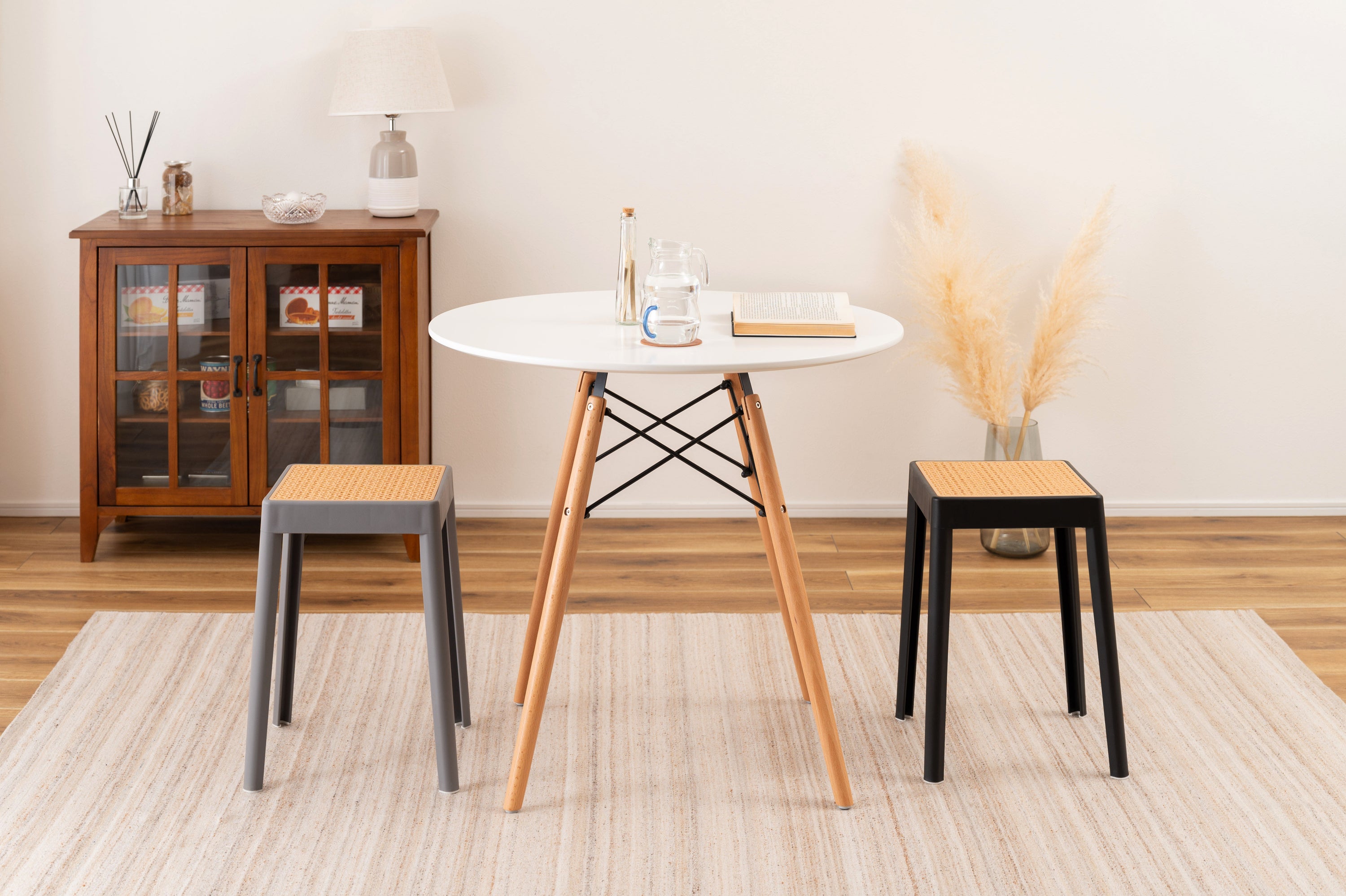 温かみのあるかごめ編み調。シンプルなフォルムの中に装飾されたかごめ編み調の座面が目を引き、お部屋のアクセントになります。ポリプロピレン製なので軽量で、耐久性があり汚れた時にお手入れがしやすいです。スタッキングが可能なので、使わない時は場所を取らずに収納することができます。
