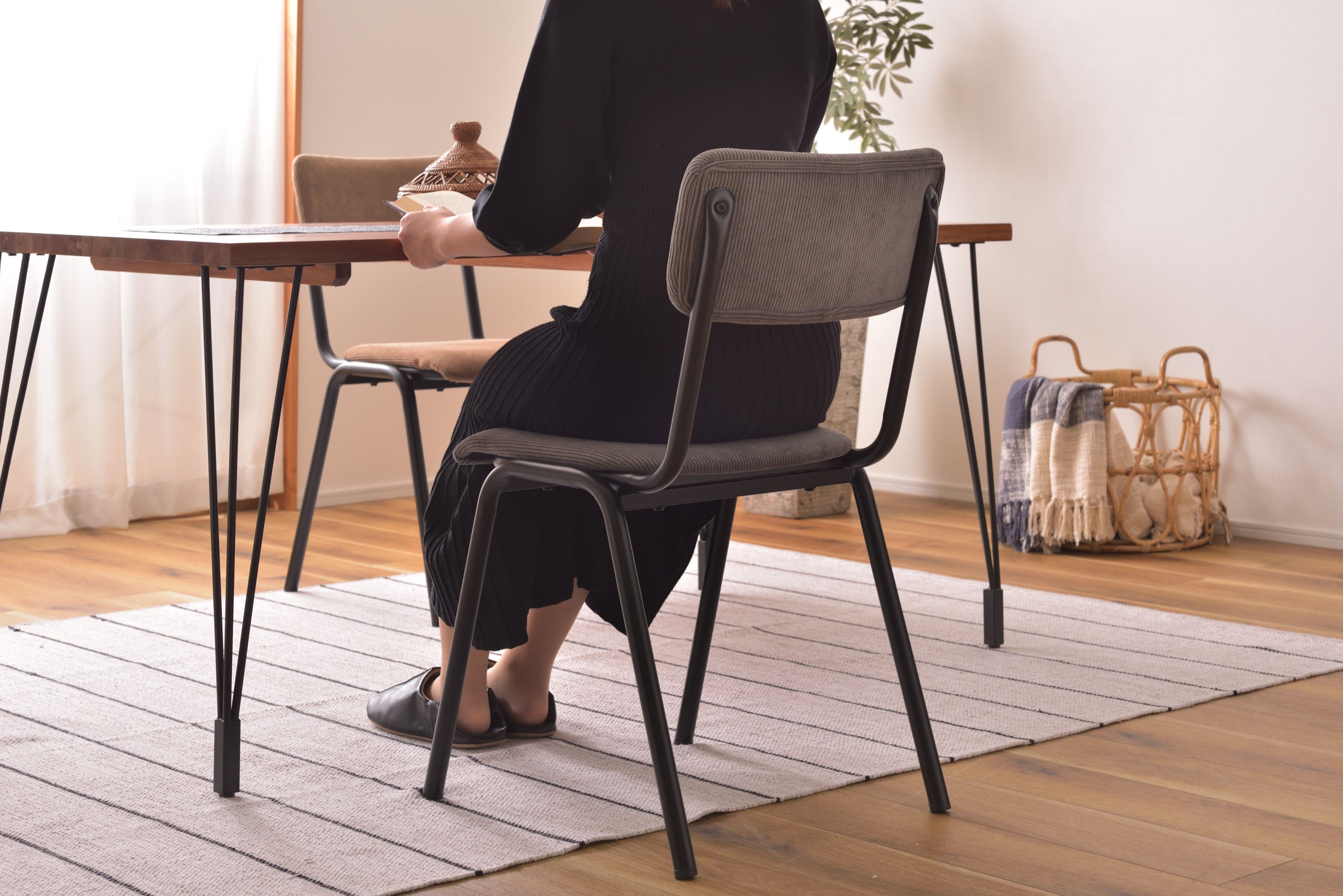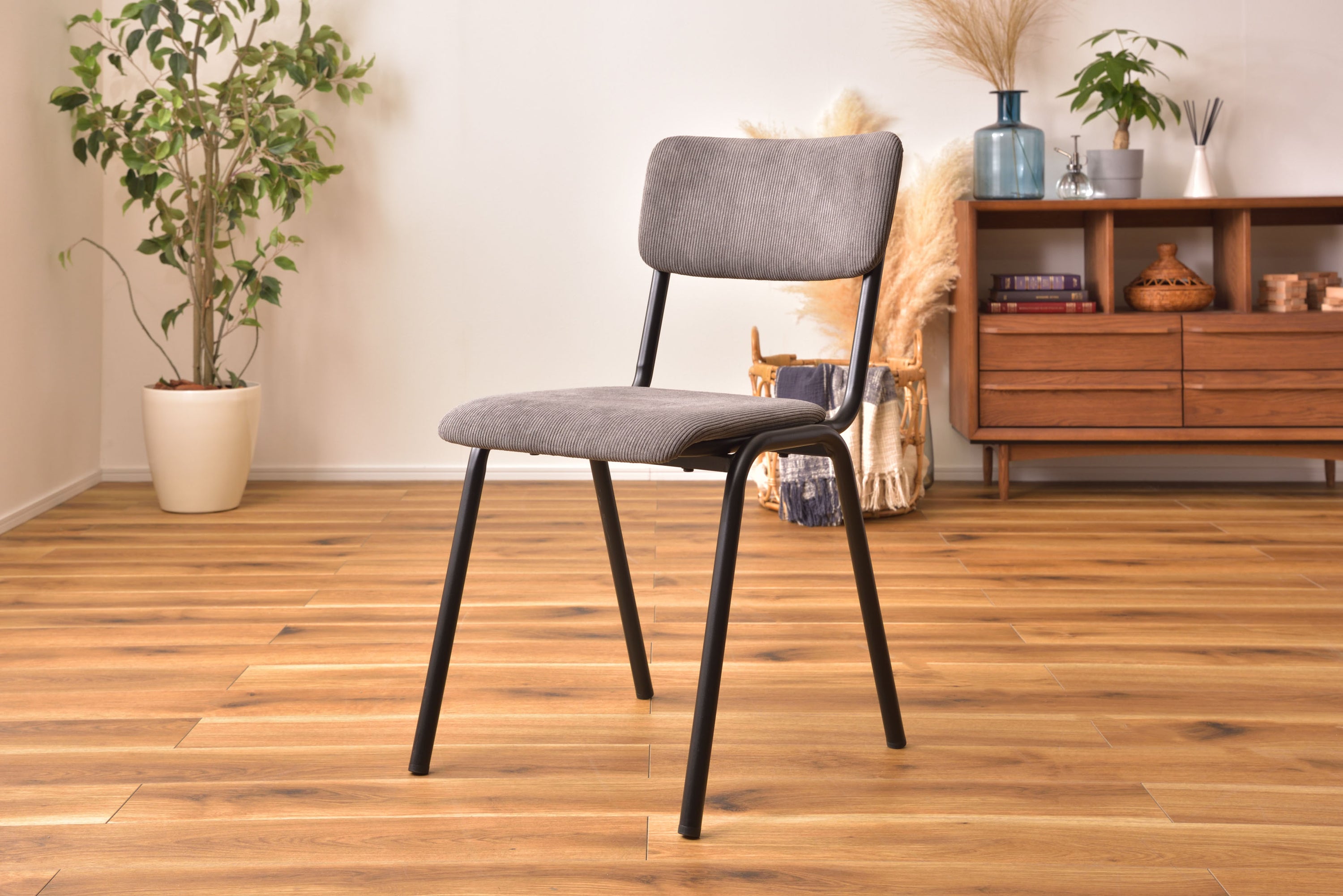 ROOMESSENCEのチェアグレーです。長時間でも快適な座り心地を備え、ダイニングやワークスペースに活躍します。ブランドの美意識を感じる佇まいで、日常づかいから来客時まで幅広く対応。品番:PC-76GY。暮らしに上質なアクセントを添える一品です。