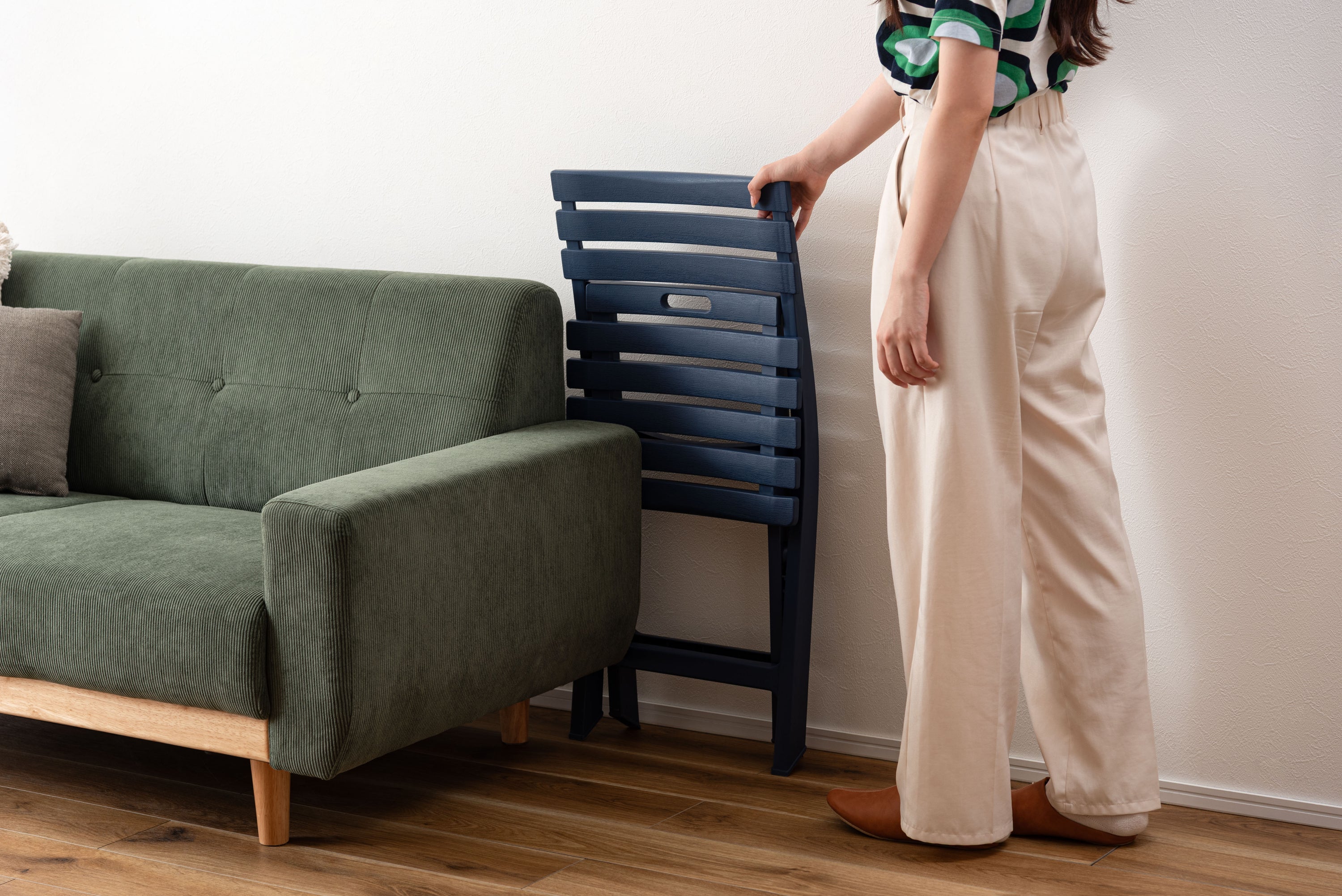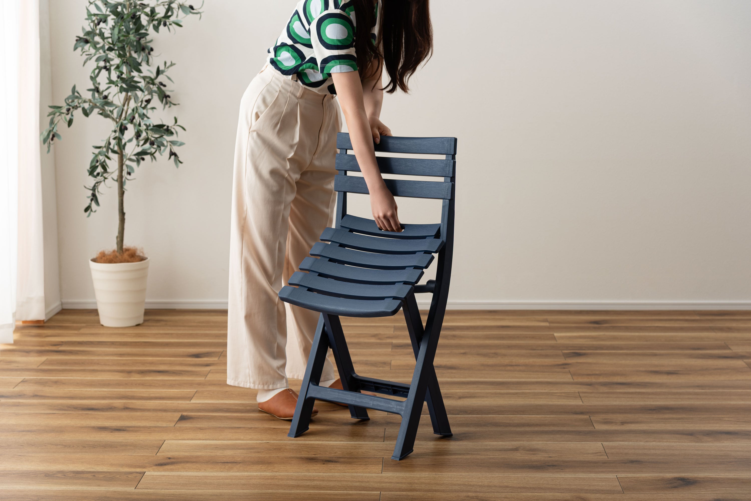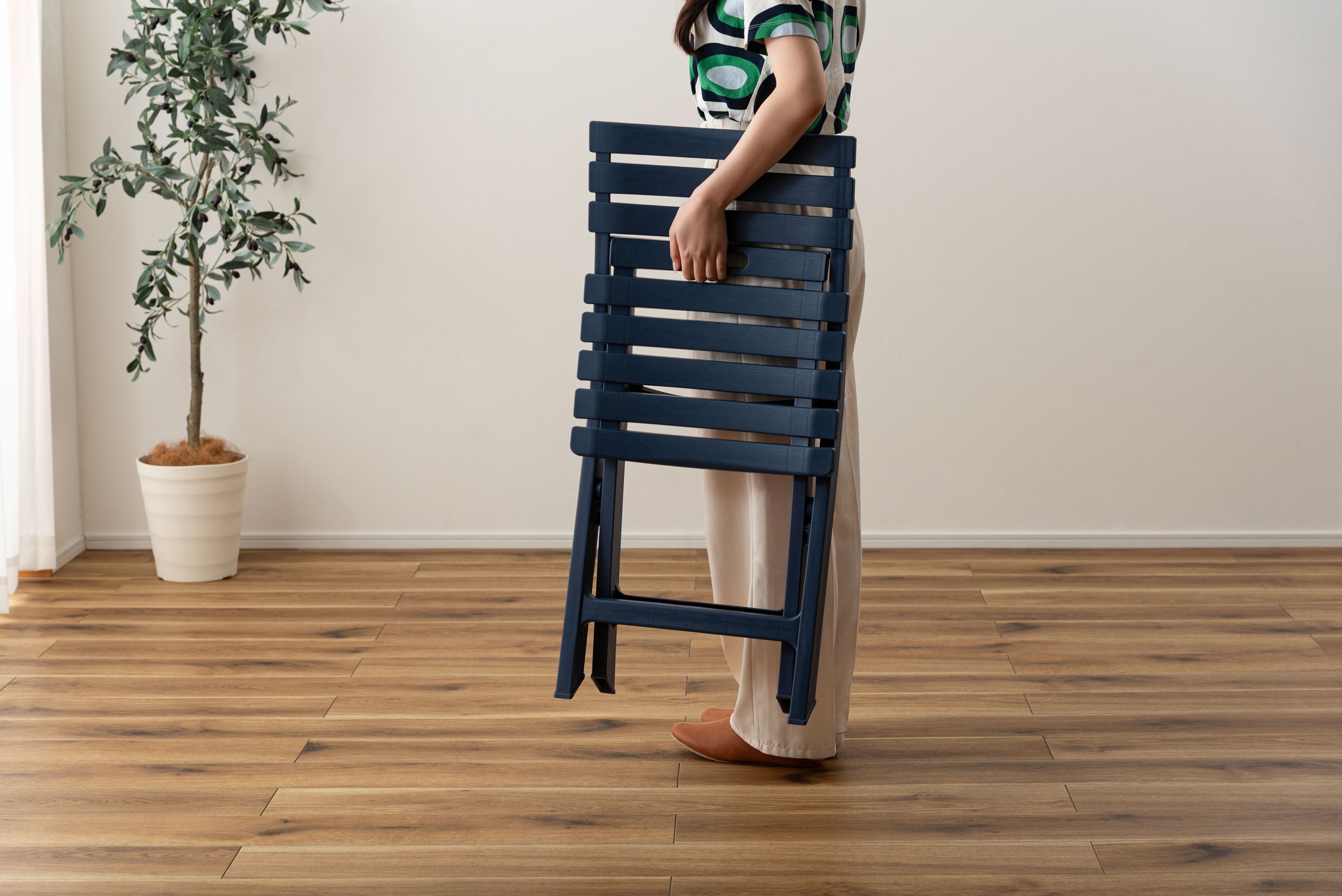 暮らしに寄り添う、省スペースなフォールディングアイテム。シンプルで機能性に優れたフォールディングチェア&フォールディングテーブル。落ち着いたトーンとスタイリッシュなフォルムは、様々な空間になじみます。軽量で持ち運びやすく、ガーデン、アウトドア、キャンプ、海などでも活躍します。折りたたんで省スペース収納。軽量設計。お手入れ簡単。落ち着いたトーンの4色展開