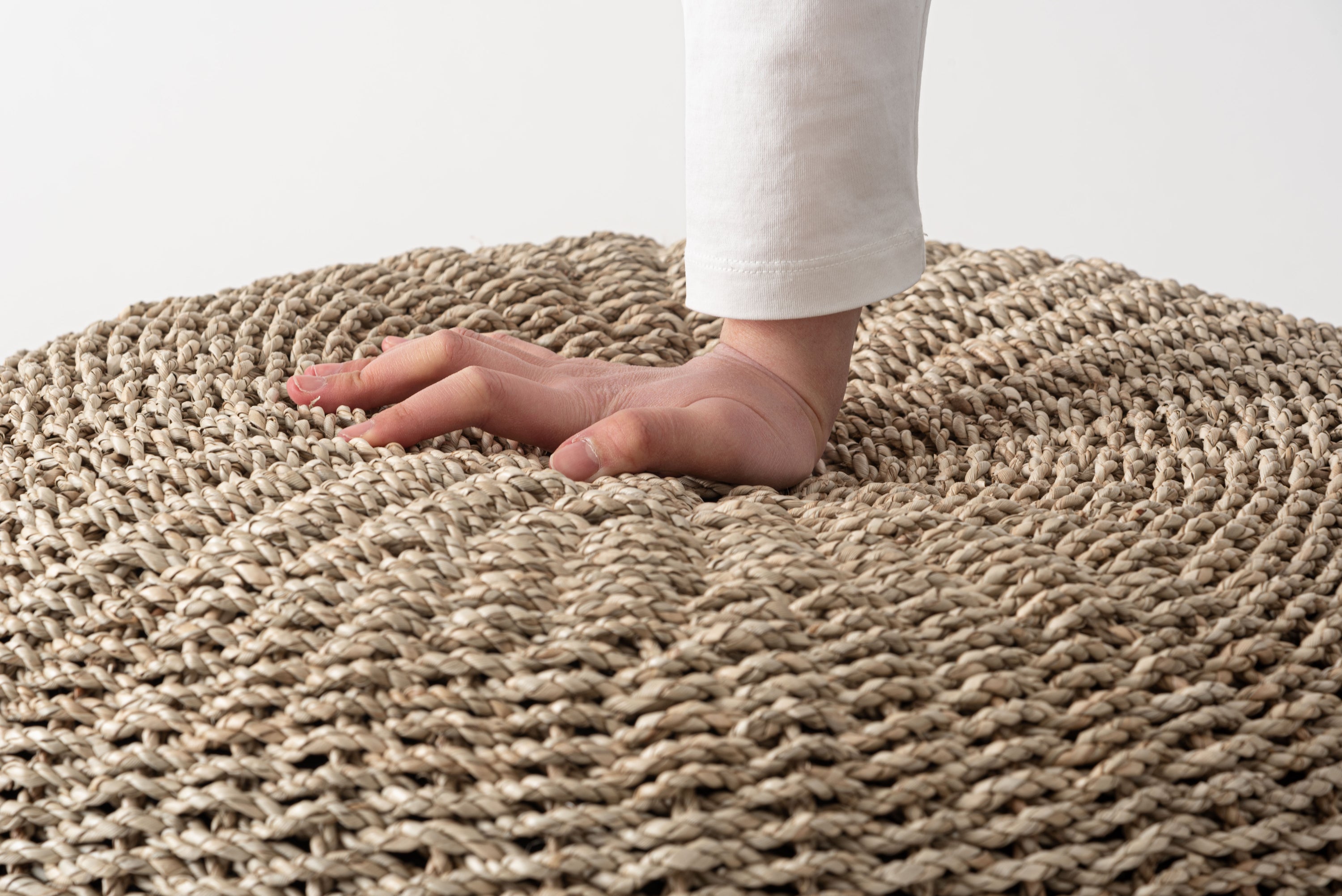 製材、研磨、編み込み、組み立て、塗装などのほぼすべての作業工程を職人の手作業で作られたハンドメイド商品です。色の濃淡や形状、サイズなど同一規格の量産にはない特有の個性が魅力です。ハンドメイドの個性や感触、風合いなどに愛着を持って寄り添い、ご使用いただけると幸いです。天然素材独特の風合いのスツール。一点一点丁寧に職人の手で編み込まれています。