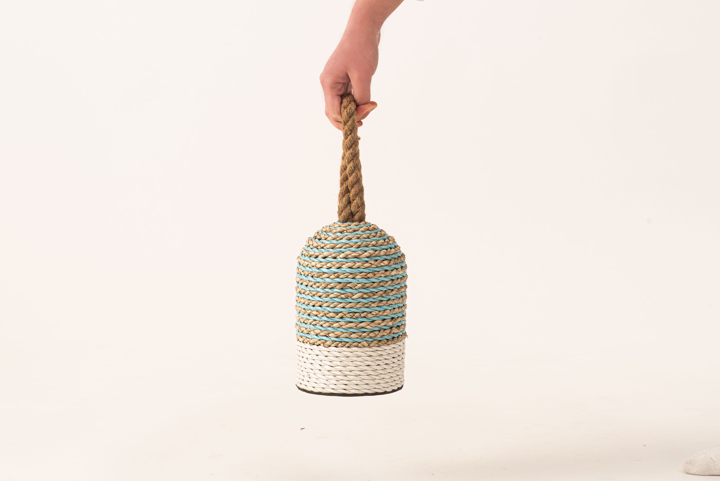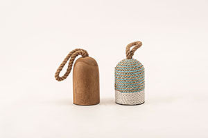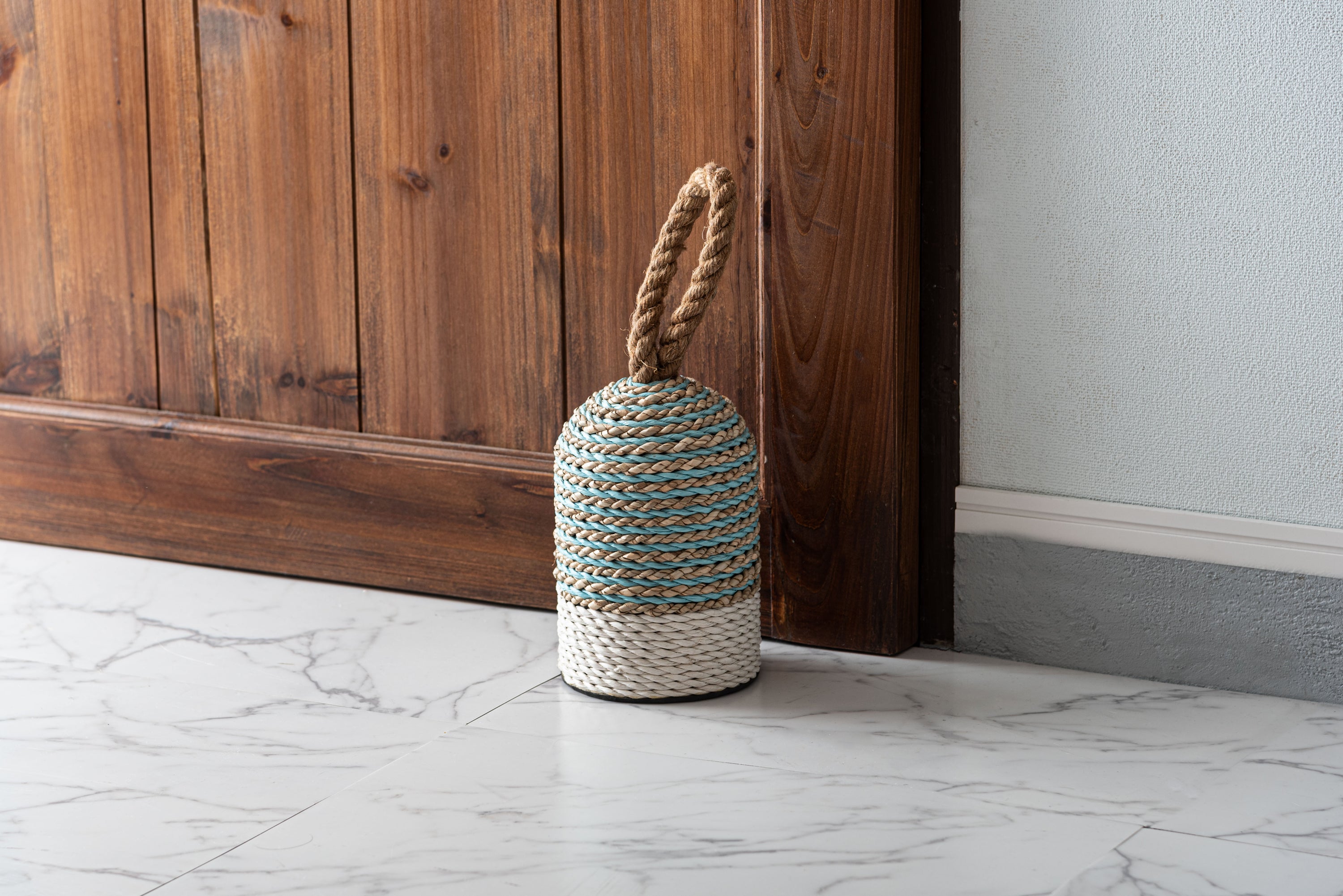 製材、研磨、編み込み、組み立て、塗装などのほぼすべての作業工程を職人の手作業で作られたハンドメイド商品です。色の濃淡や形状、サイズなど同一規格の量産にはない特有の個性が魅力です。ハンドメイドの個性や感触、風合いなどに愛着を持って寄り添い、ご使用いただけると幸いです。一点一点丁寧に編み込まれたドアストッパー。ユニークなデザインがオブジェのような存在感です。