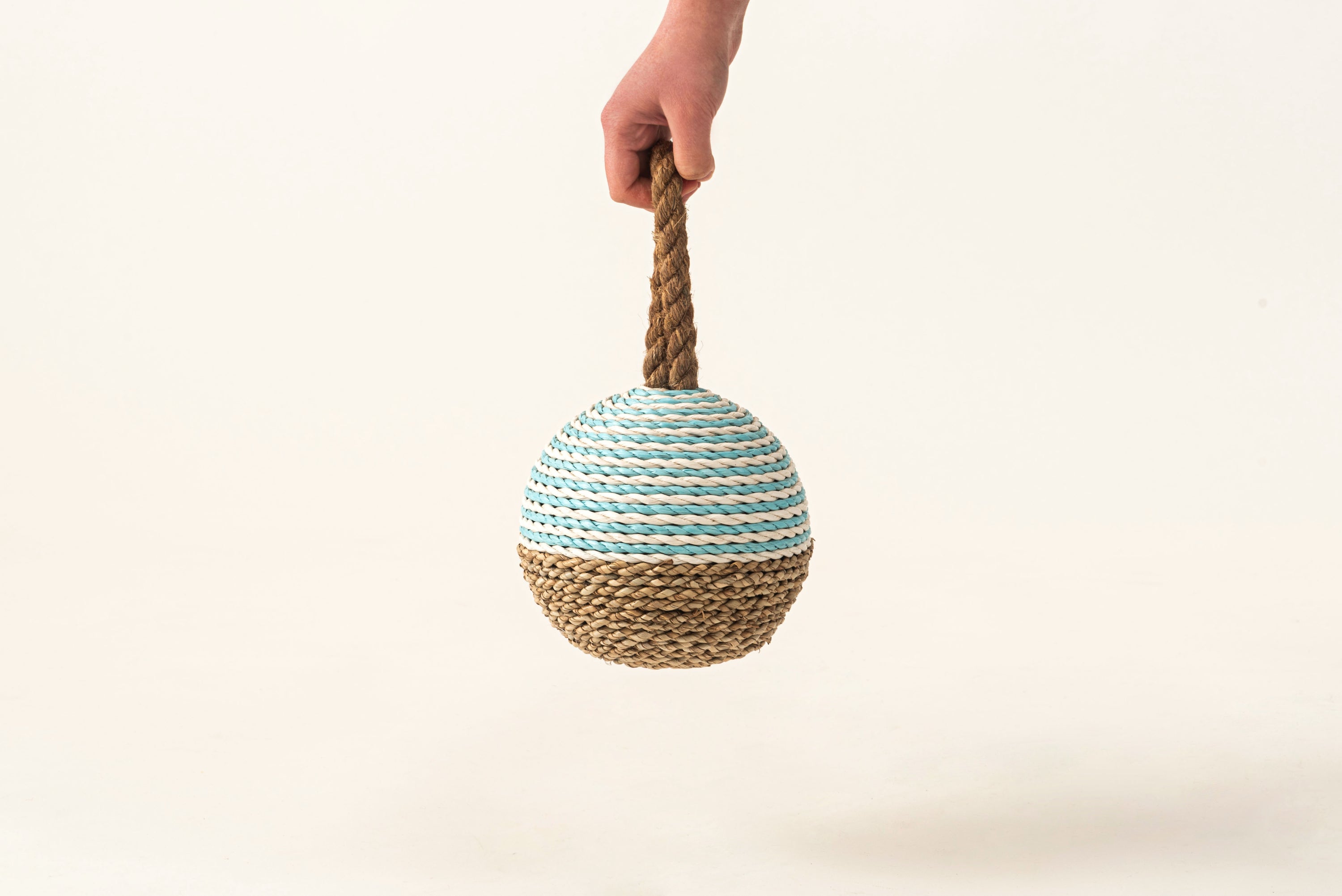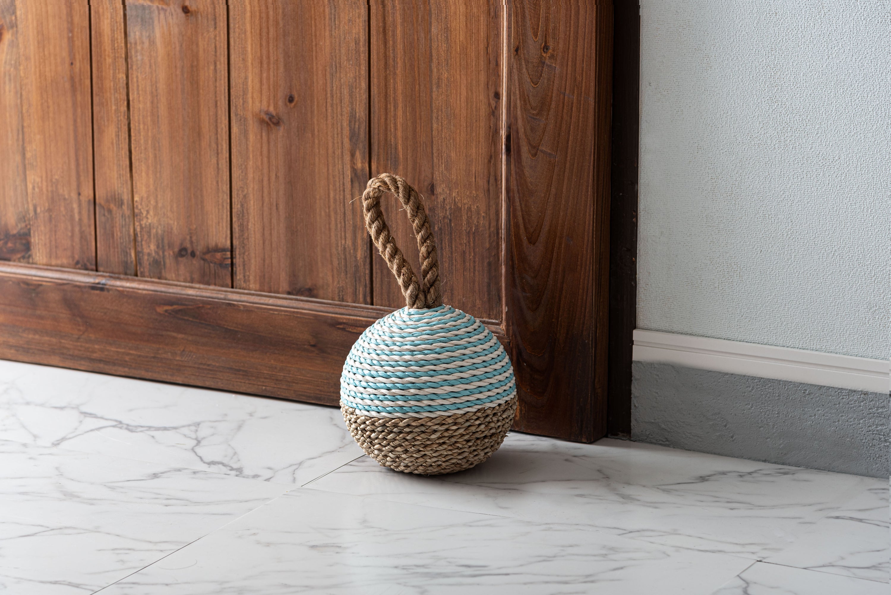 製材、研磨、編み込み、組み立て、塗装などのほぼすべての作業工程を職人の手作業で作られたハンドメイド商品です。色の濃淡や形状、サイズなど同一規格の量産にはない特有の個性が魅力です。ハンドメイドの個性や感触、風合いなどに愛着を持って寄り添い、ご使用いただけると幸いです。一点一点丁寧に編み込まれたドアストッパー。ユニークなデザインがオブジェのような存在感です。