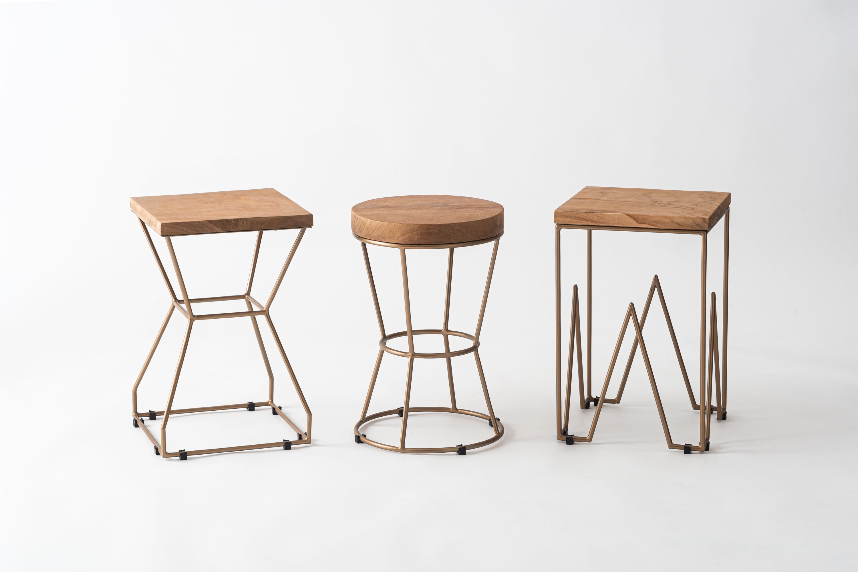 製材、研磨、編み込み、組み立て、塗装などのほぼすべての作業工程を職人の手作業で作られたハンドメイド商品です。色の濃淡や形状、サイズなど同一規格の量産にはない特有の個性が魅力です。ハンドメイドの個性や感触、風合いなどに愛着を持って寄り添い、ご使用いただけると幸いです。ナチュラルチークの風合いとゴールドスチール。異素材の趣ある組み合わせです。