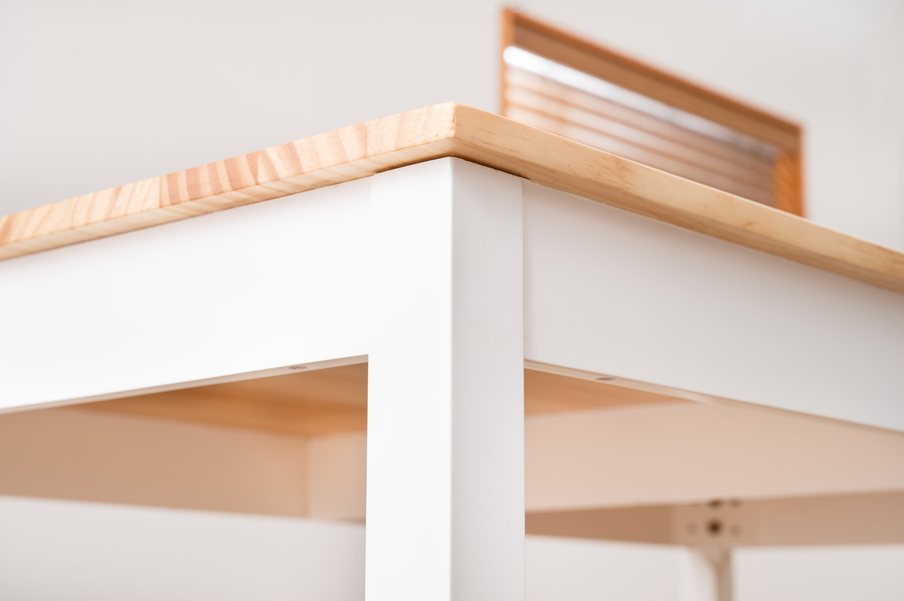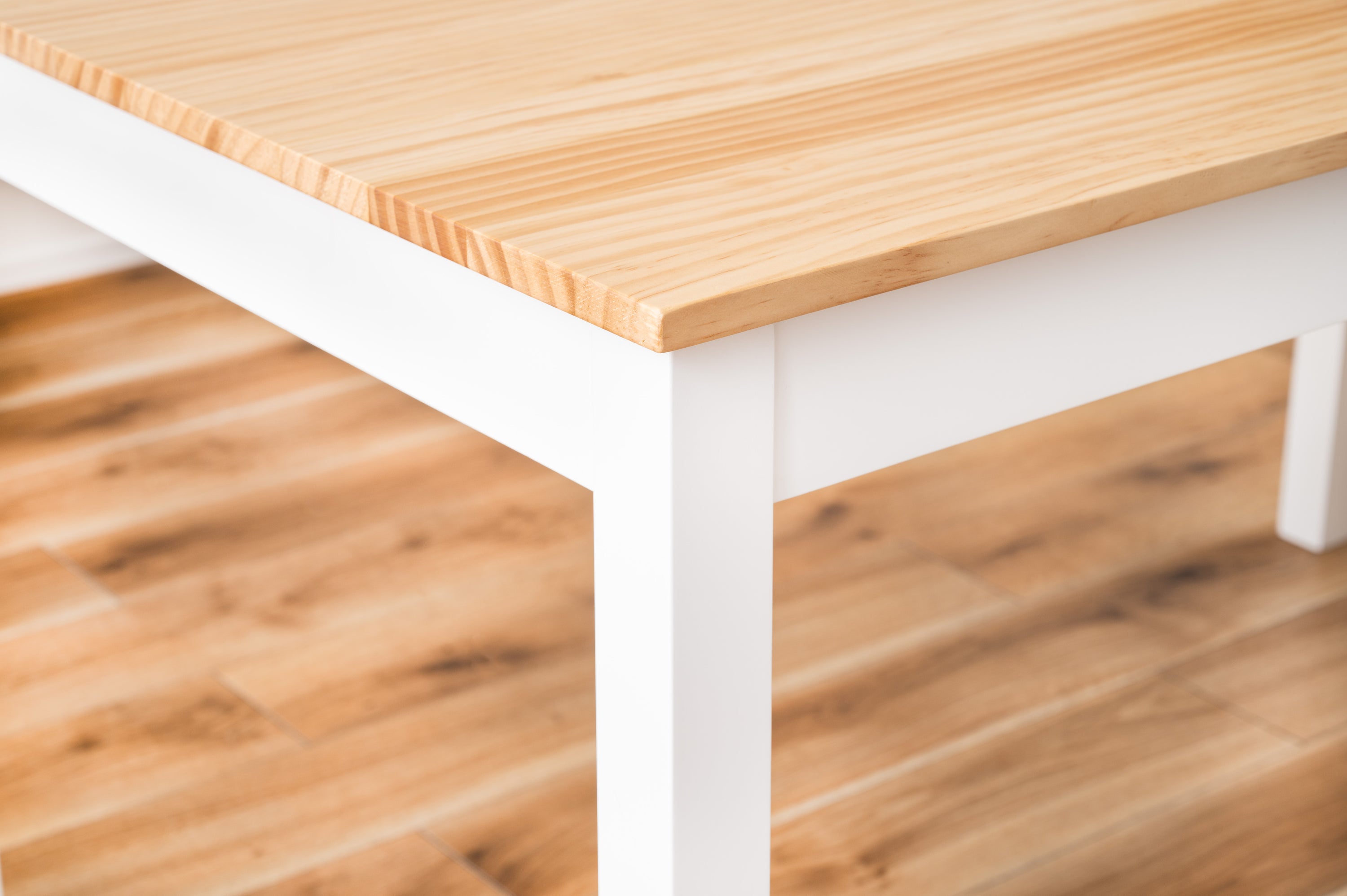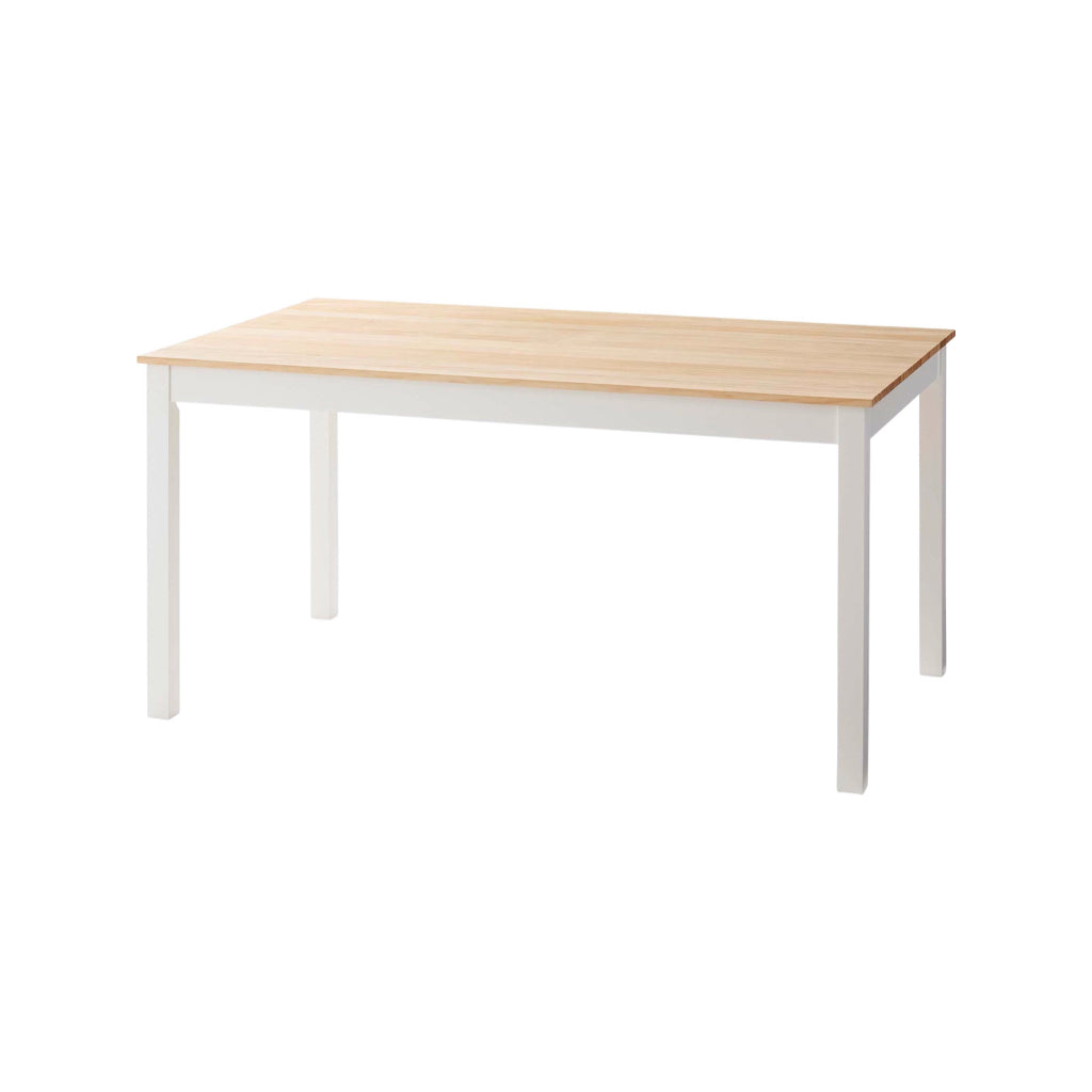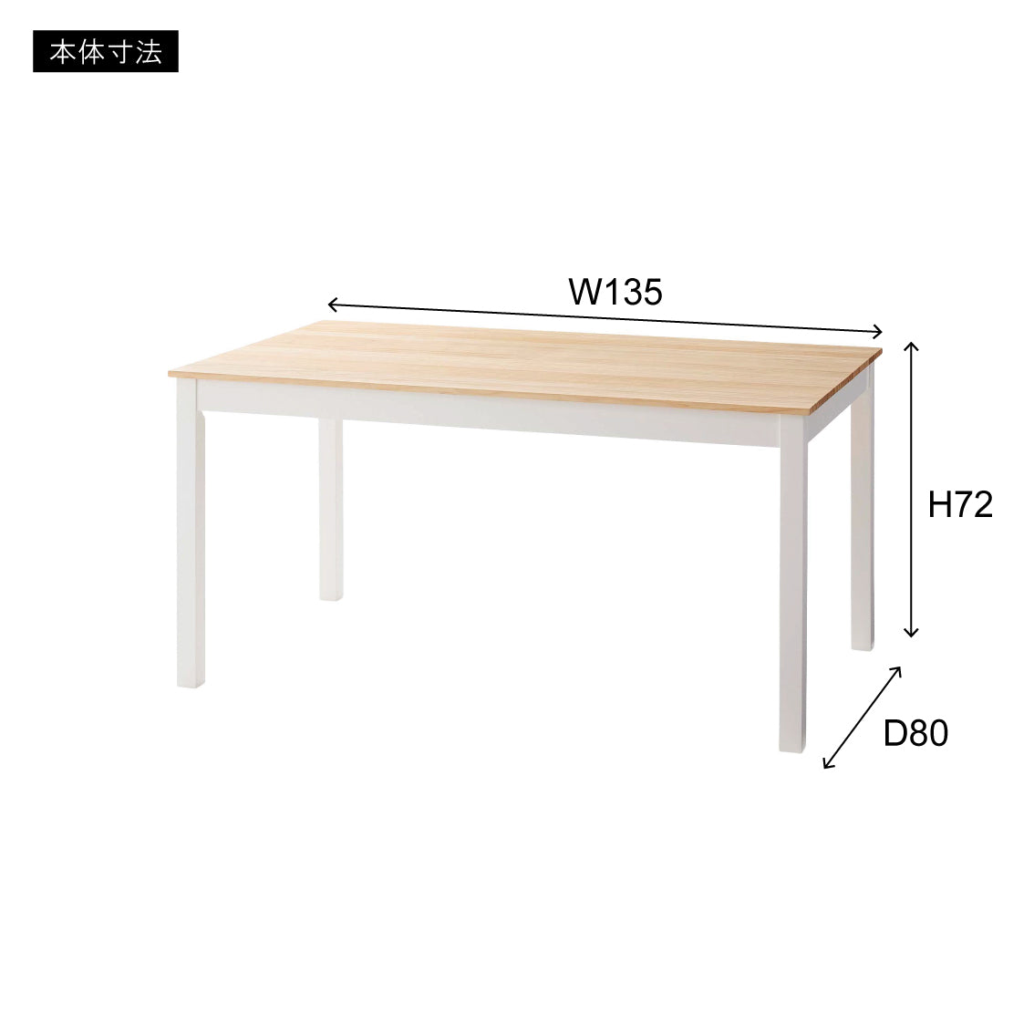 あたたかみのある木目と真っ白な脚が爽やかで美しいナチュラルなダイニングテーブル。天然木を活かした落ち着きのある、上品な印象に仕上げました。シンプルなデザインのため空間に合わせやすく、優しい雰囲気を演出します。