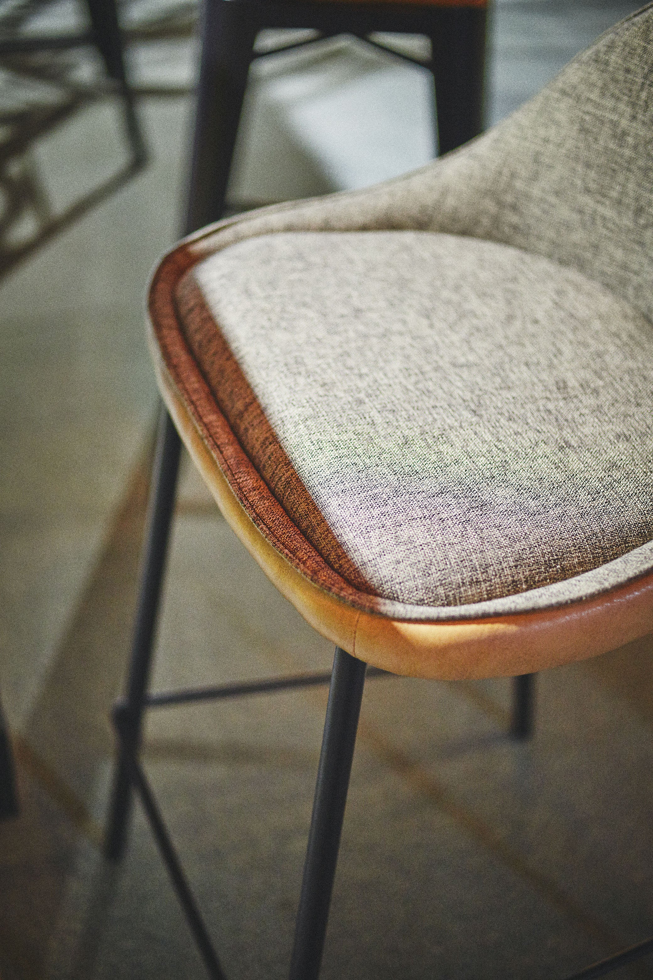 ROOMESSENCEのカウンターチェアベージュです。長時間でも快適な座り心地を備え、ダイニングやワークスペースに活躍します。ブランドの美意識を感じる佇まいで、日常づかいから来客時まで幅広く対応。品番:TEC-42BE。暮らしに上質なアクセントを添える一品です。