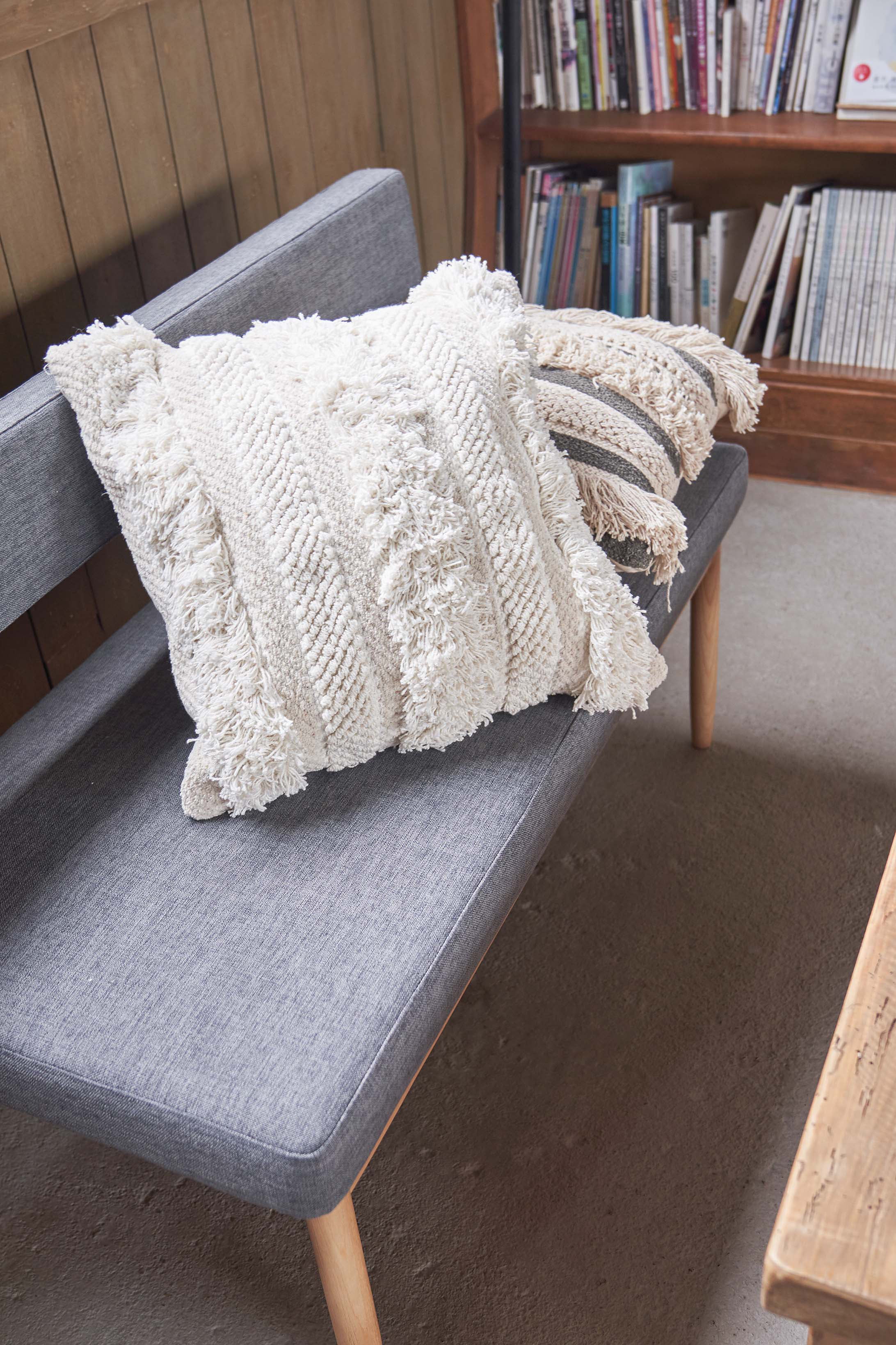 ROOMESSENCEのクッションです。やわらかな触感を備え、ソファやベッドに活躍します。ブランドの美意識を感じる佇まいで、日常づかいから来客時まで幅広く対応。品番:TTC-347A。暮らしに上質なアクセントを添える一品です。