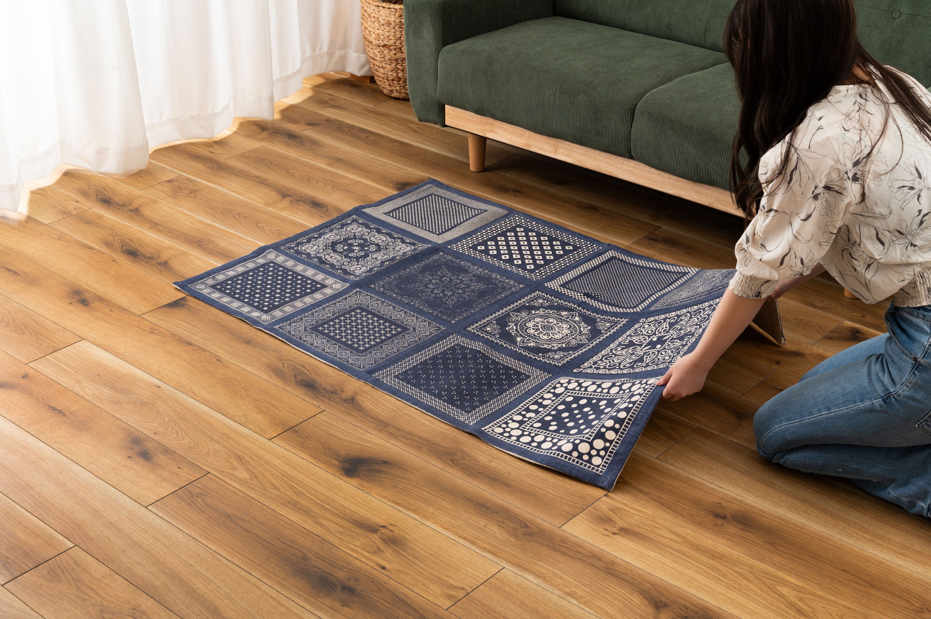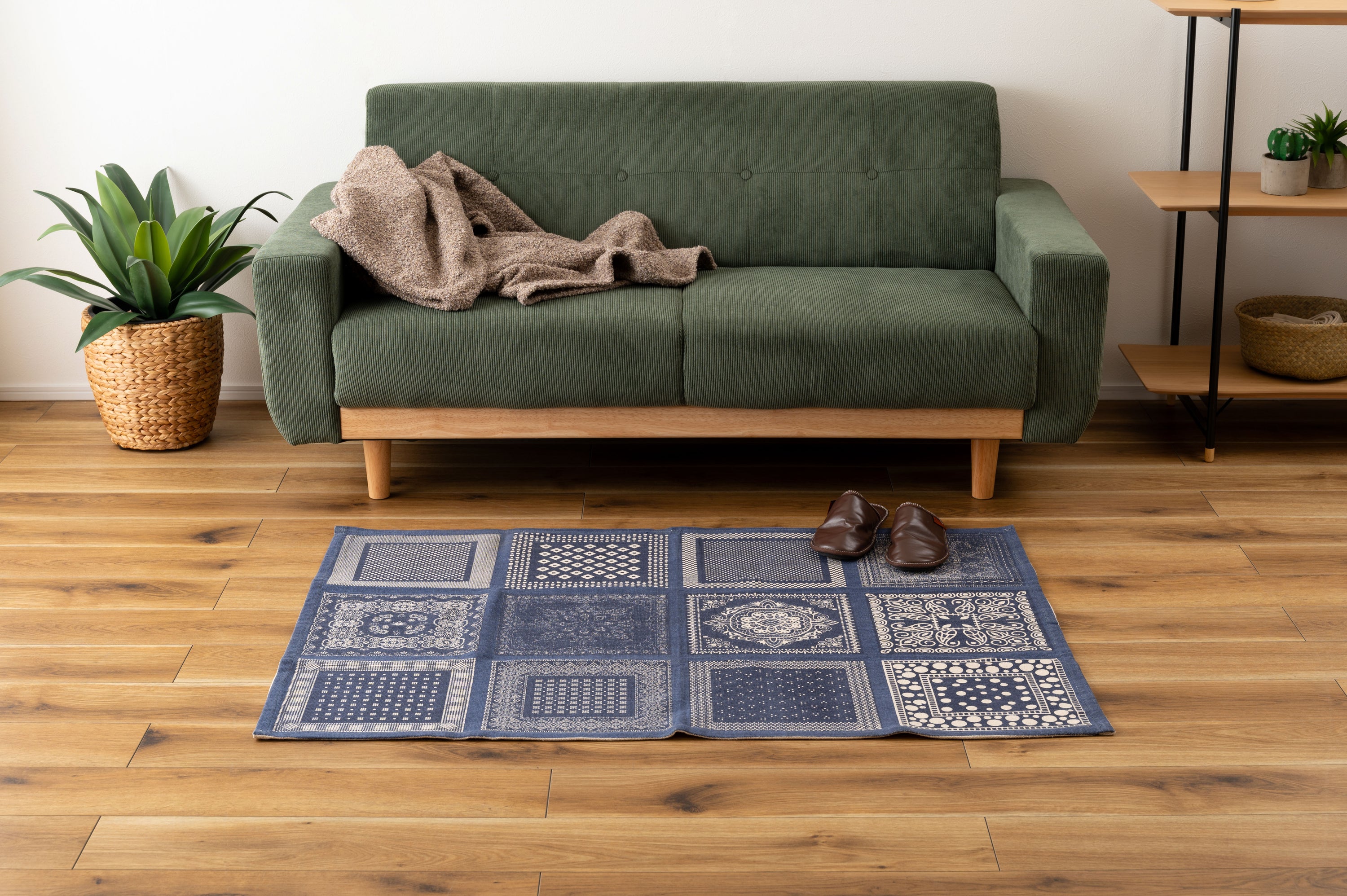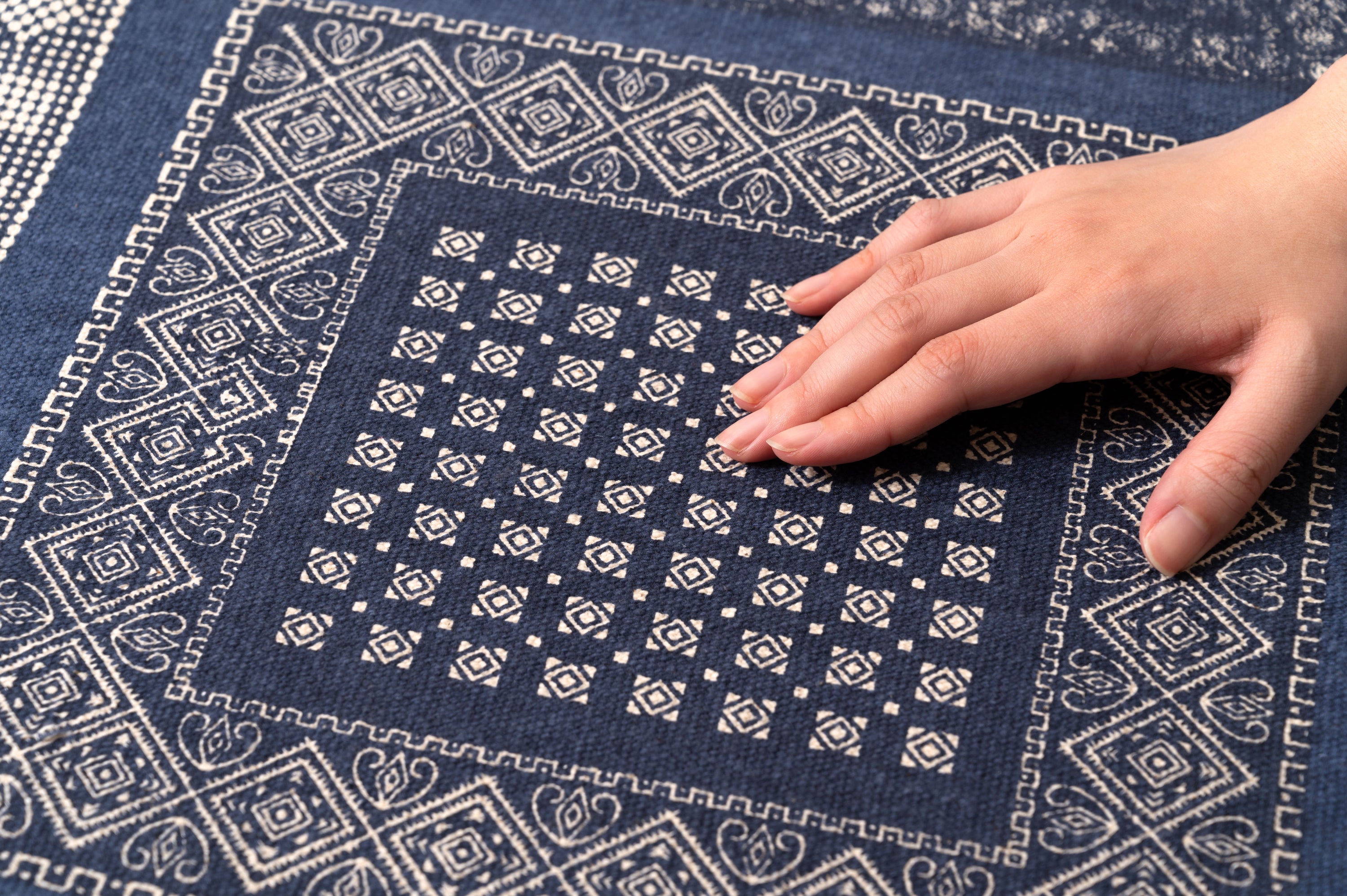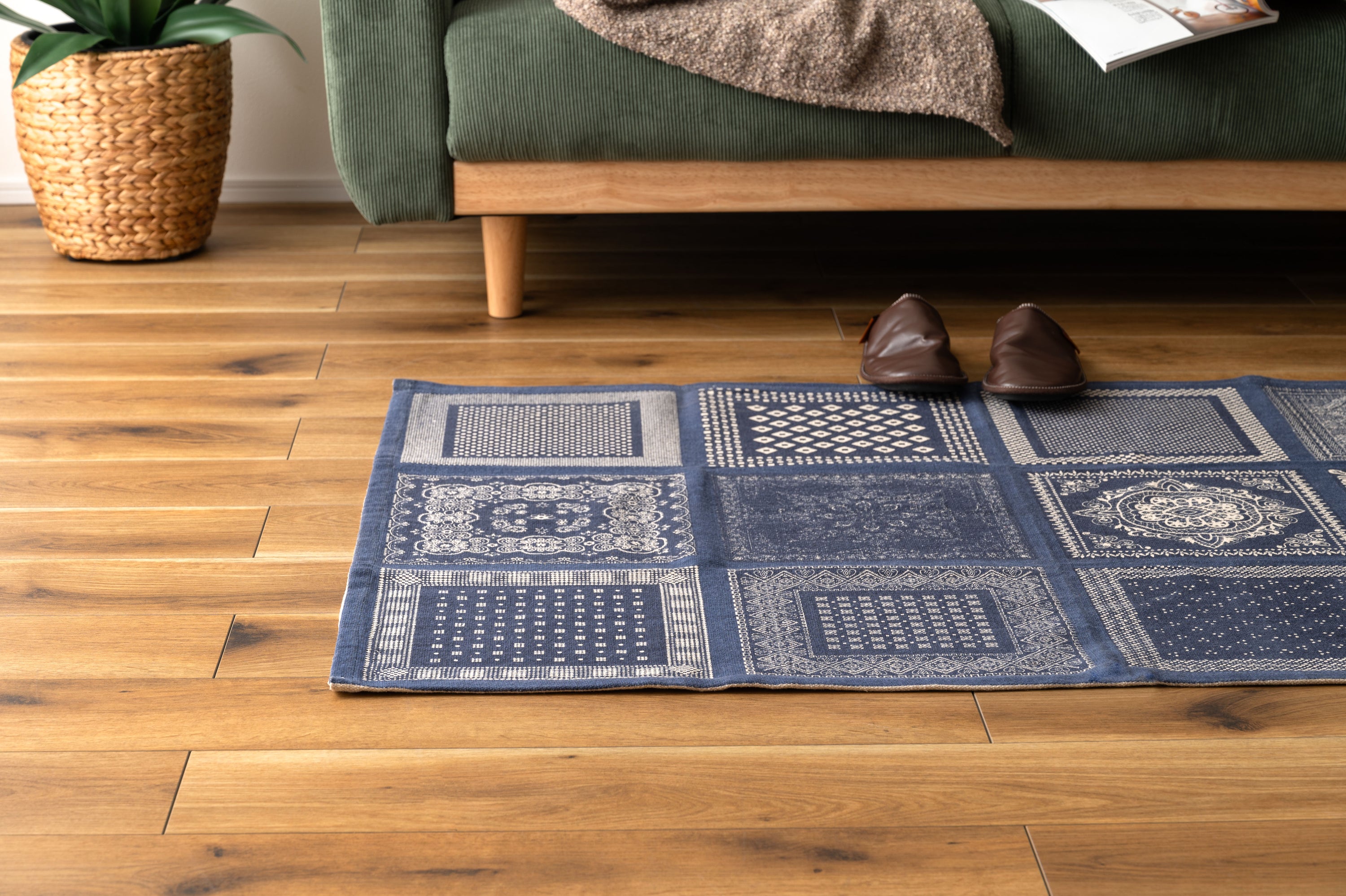 ROOMESSENCEのラグブルーです。踏み心地の良い質感を備え、季節の模様替えにも活躍します。ブランドの美意識を感じる佇まいで、日常づかいから来客時まで幅広く対応。品番:TTR-151BL。暮らしに上質なアクセントを添える一品です。