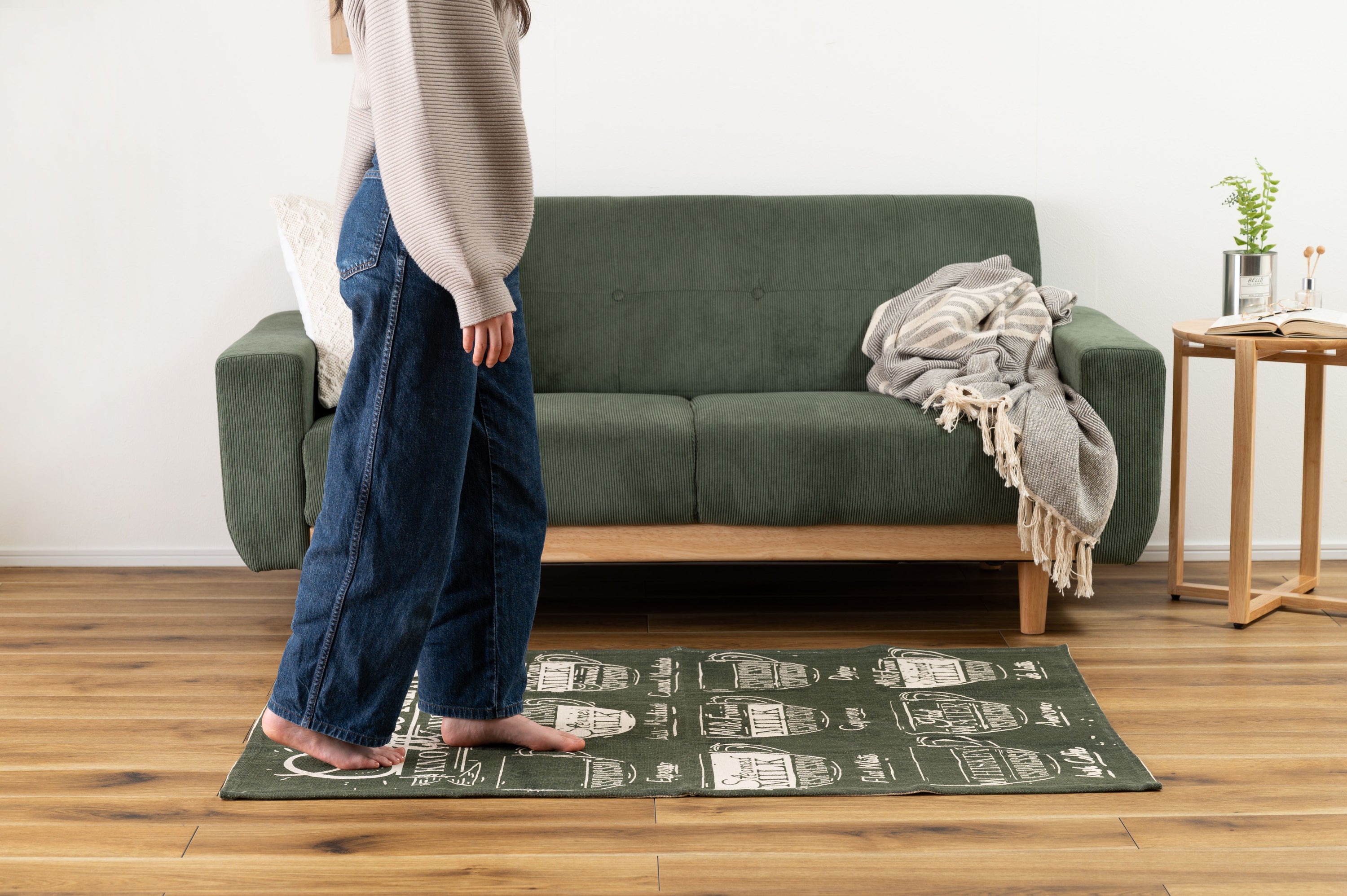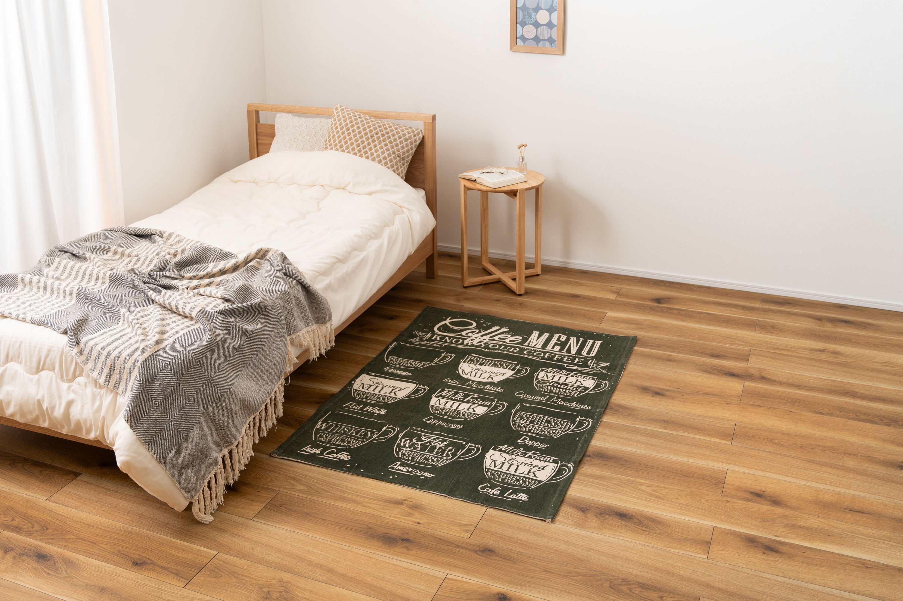 ROOMESSENCEのラググリーンです。踏み心地の良い質感を備え、季節の模様替えにも活躍します。ブランドの美意識を感じる佇まいで、日常づかいから来客時まで幅広く対応。品番:TTR-154GR。暮らしに上質なアクセントを添える一品です。