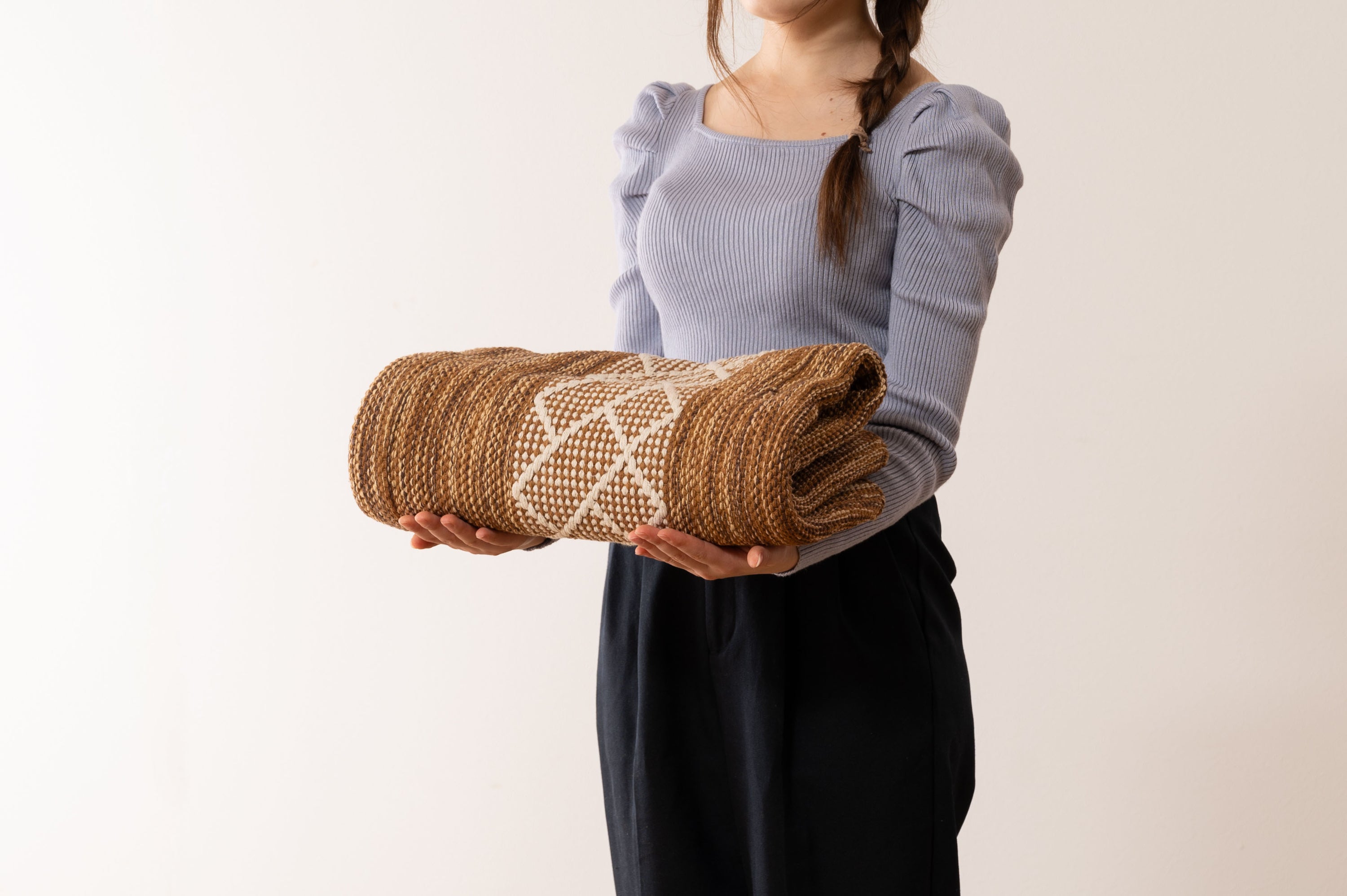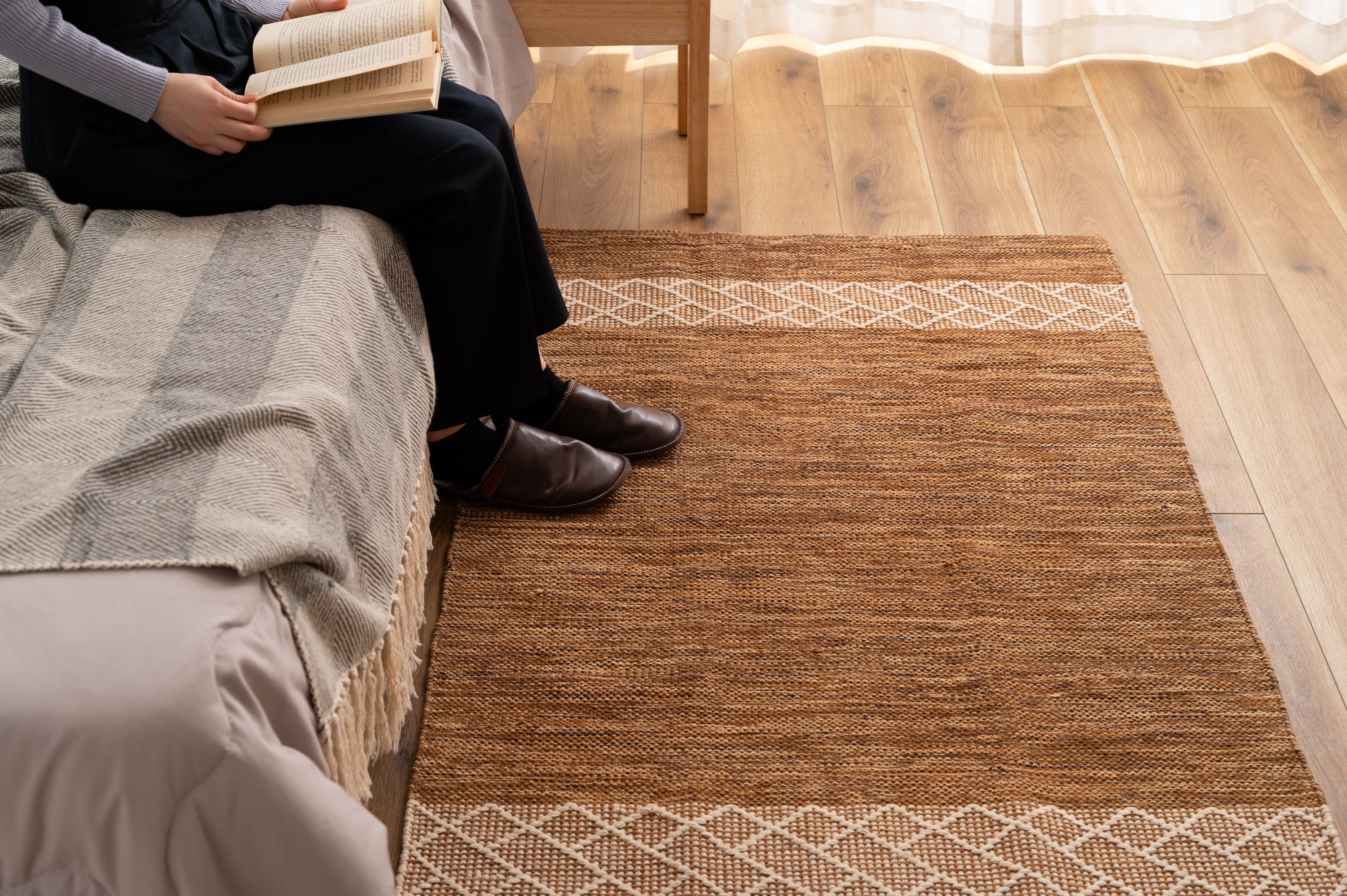 ROOMESSENCEのラグブラウンです。踏み心地の良い質感を備え、季節の模様替えにも活躍します。ブランドの美意識を感じる佇まいで、日常づかいから来客時まで幅広く対応。品番:TTR-156BR。暮らしに上質なアクセントを添える一品です。
