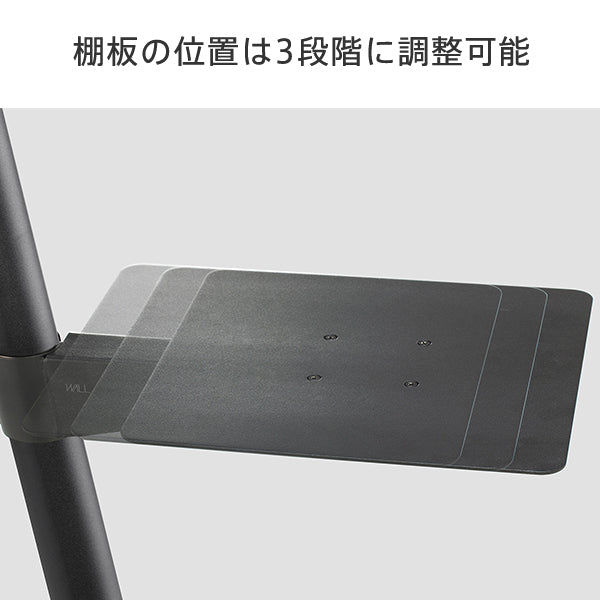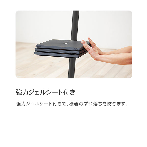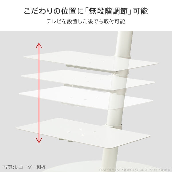 スッキリ感を損なわないシンプルデザインのテレビスタンド専用棚板です。こだわりの位置に無段階で調整が可能で、テレビ直下にオーディオ機器がまるで浮いているように設置することができます。