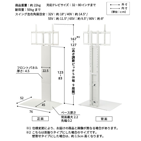 幅 76×奥行 52×高さ 127-167cm