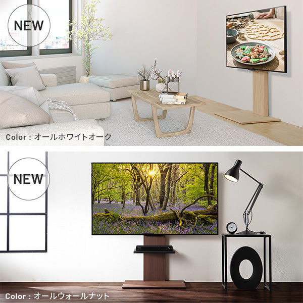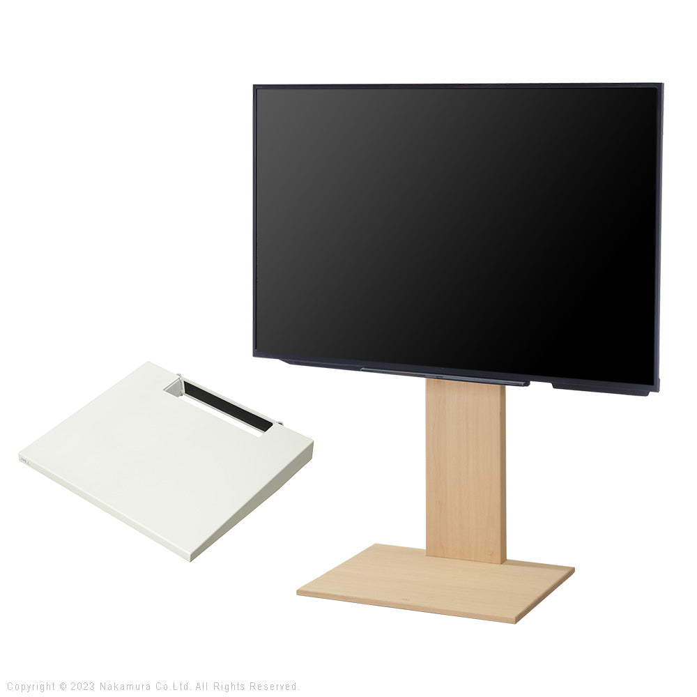 余分なものを見せない美しい存在感のテレビスタンドと専用棚板のセットです。床の色に合わせてベースを選ぶと白い壁にフロントパネルが溶け込みお部屋の一体感が生まれます。