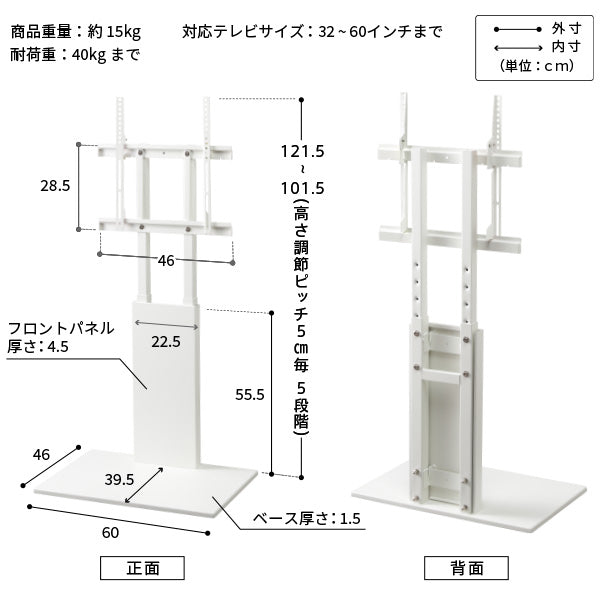 幅 60×奥行 46×高さ 101.5-121.5cm