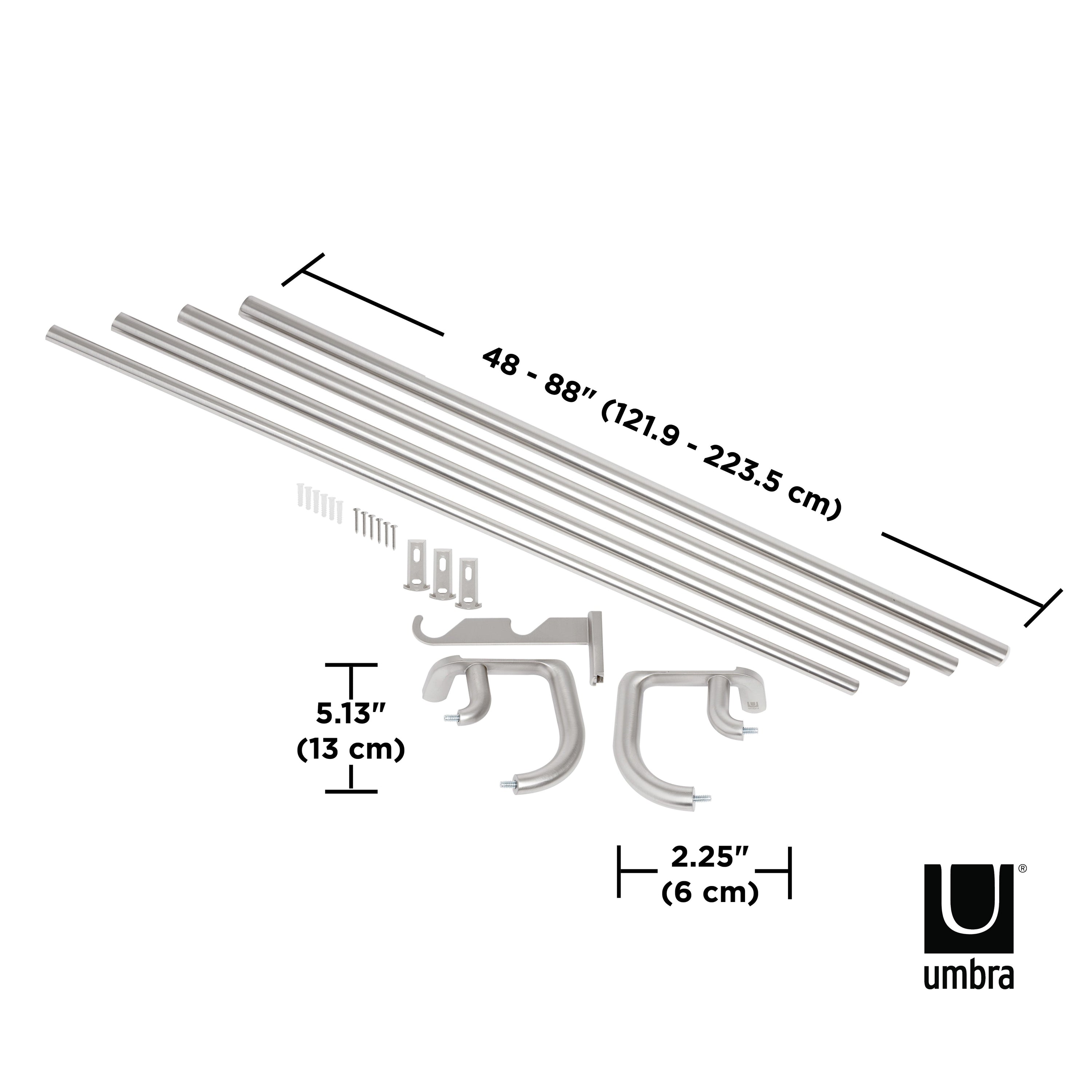 トワイライト ダブル カーテンロッド 121.9-223.5cm ニッケル