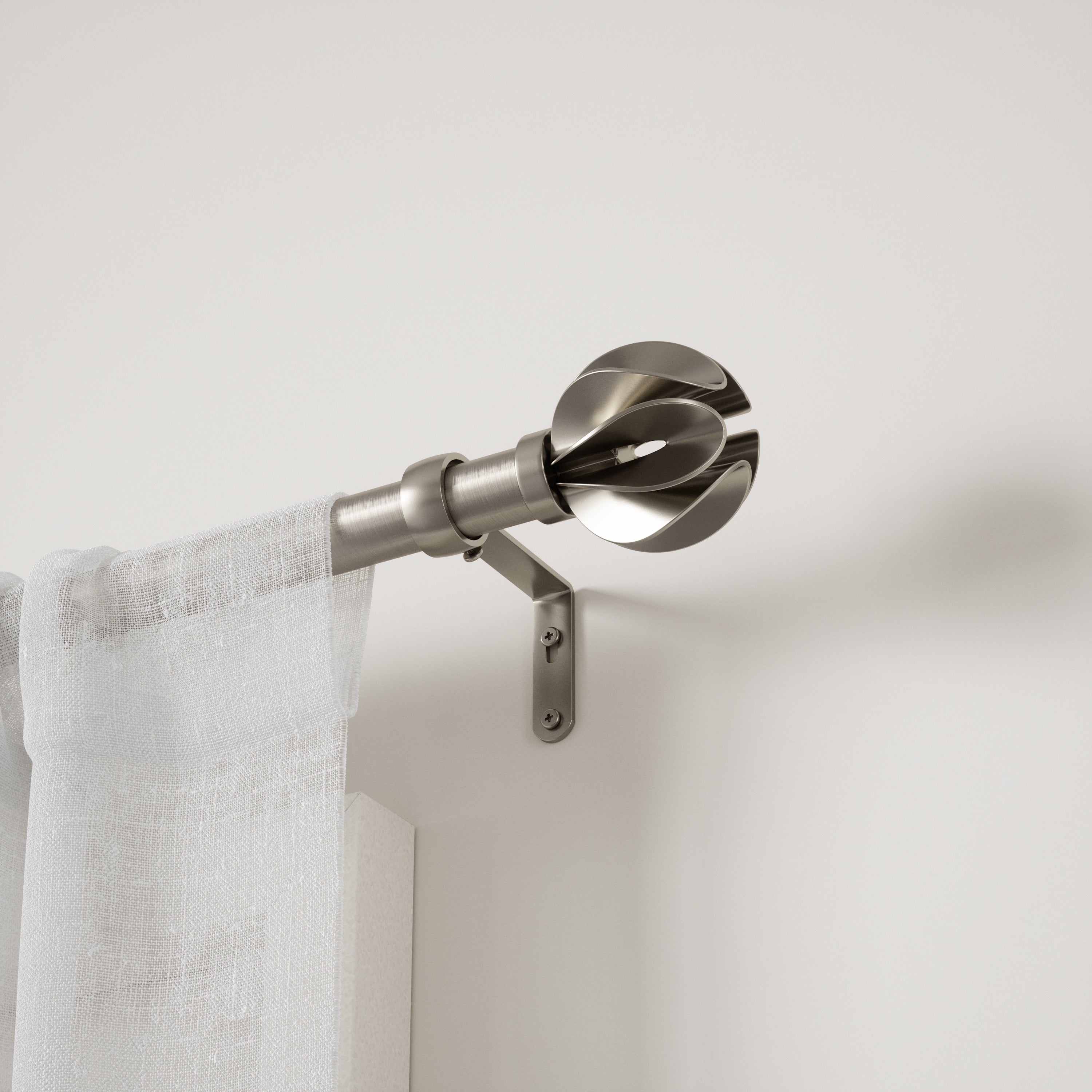花のような柔らかい印象のフィニアルが特徴のカーテンロッド ブロッサム。この調節可能なカーテン ロッドは、さまざまな窓にフィットし、取り付けに必要な部品が全て付属しています。ブロッサムは、カーテンを引き離すことなく、さりげない装飾的なタッチを加えます。ブロッサム カーテン(直径2.5cm) のロッドは、重さ10kgまでのカーテンセットをサポートします。