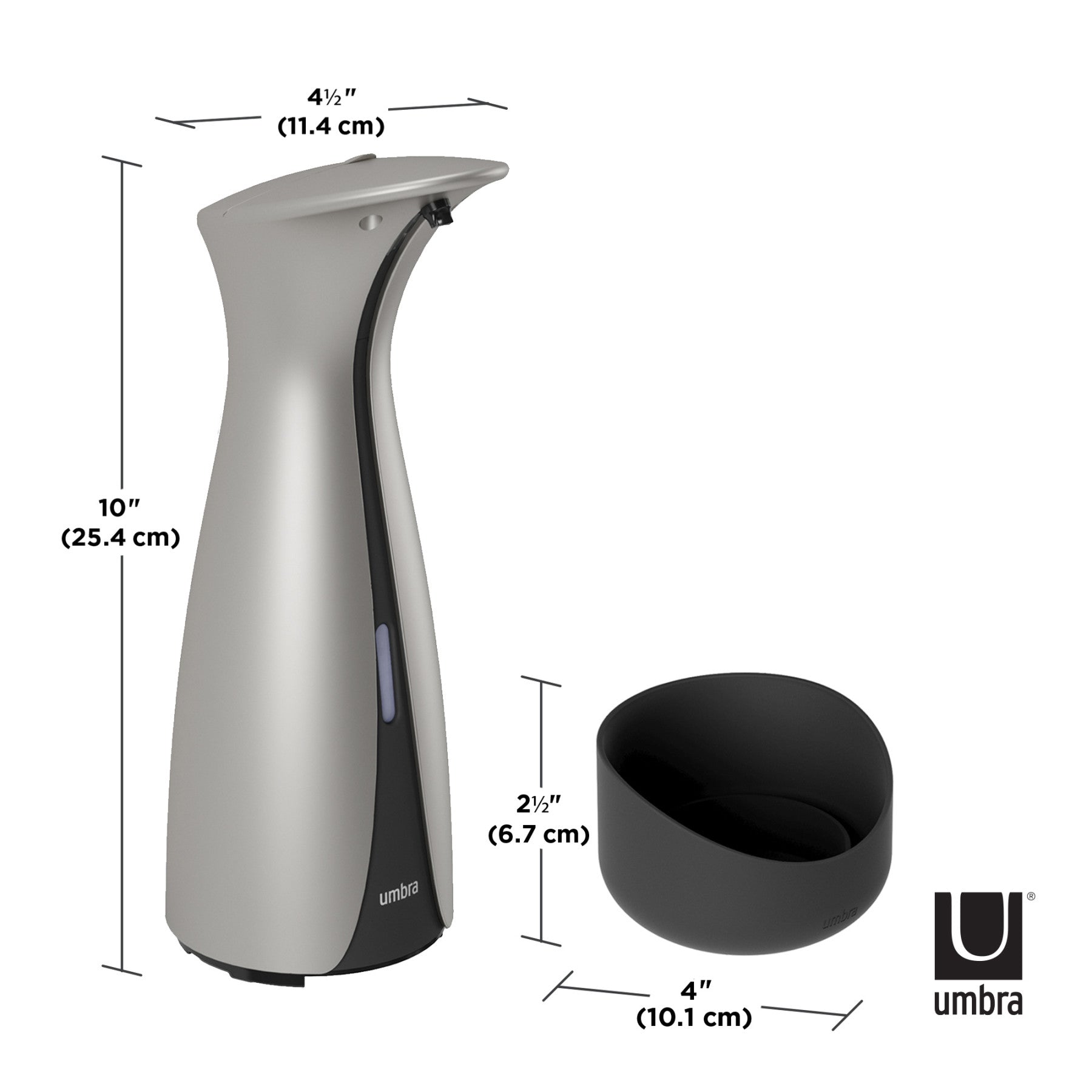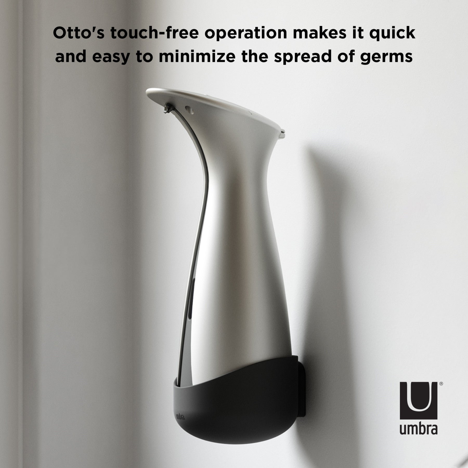 ハンドソープ、食器用洗剤、除菌ジェルに使用できる人気のオートディスペンサーと壁掛け用のパーツが付属されたセットです。洗練されたフォルム、高級感のあるマット仕上げ、クロムラインのアクセントが、キッチンやバスルームのデコレーションを引き立てます。食品を調理している時でも、オートセンサーでポンプに直接触れる事なく、ハンドソープや食器用洗剤が一定量でますので衛生的です。オットLは既存のオット(177ml)より大きな容量(250ml)になっており、モーターも改善され、洗剤の出る時間が短く、センサーの反応が早くなりました。電池残量が少なくなるとセンサーが赤くなり、お知らせしてくれます。液の残量も正面についた窓から容易に確認ができ、補充口が広く設計されているので液剤を簡単に補充することができます。