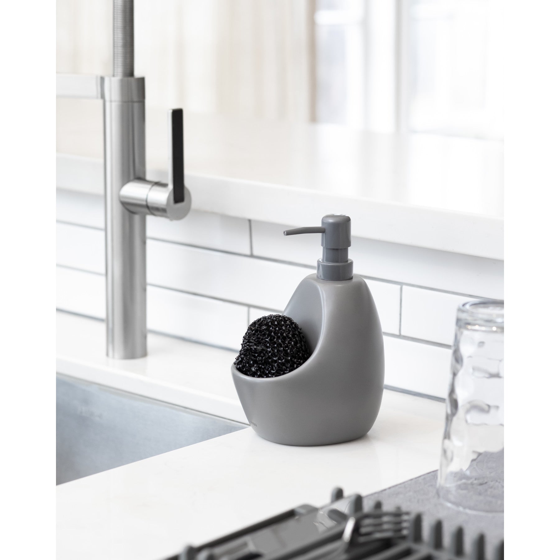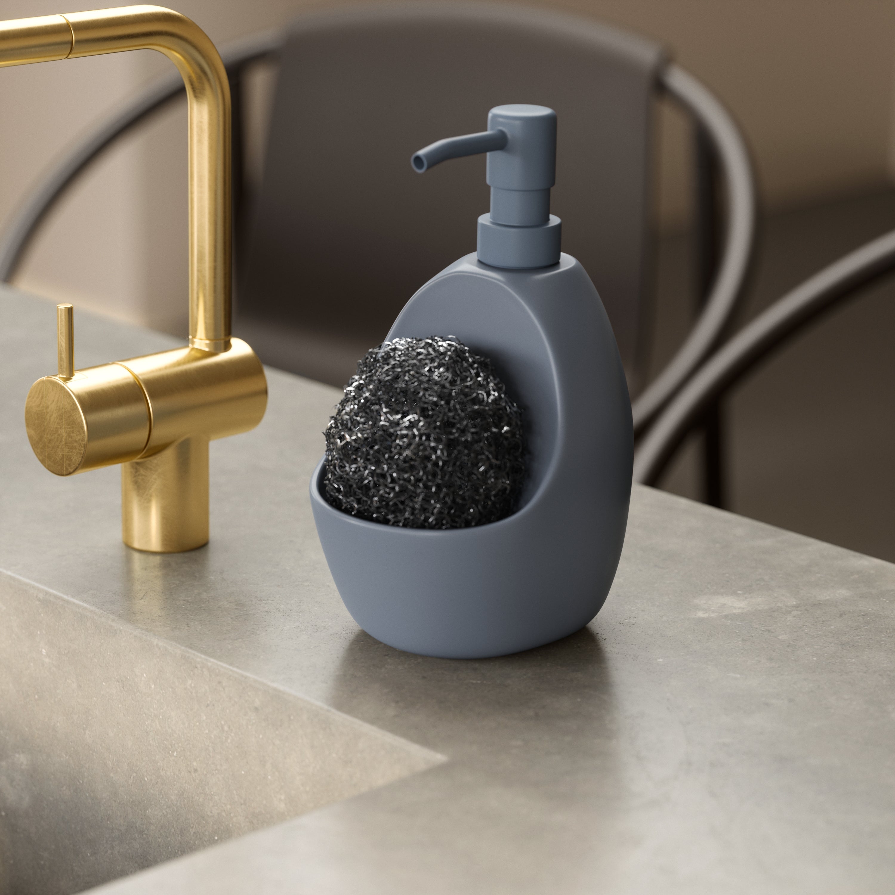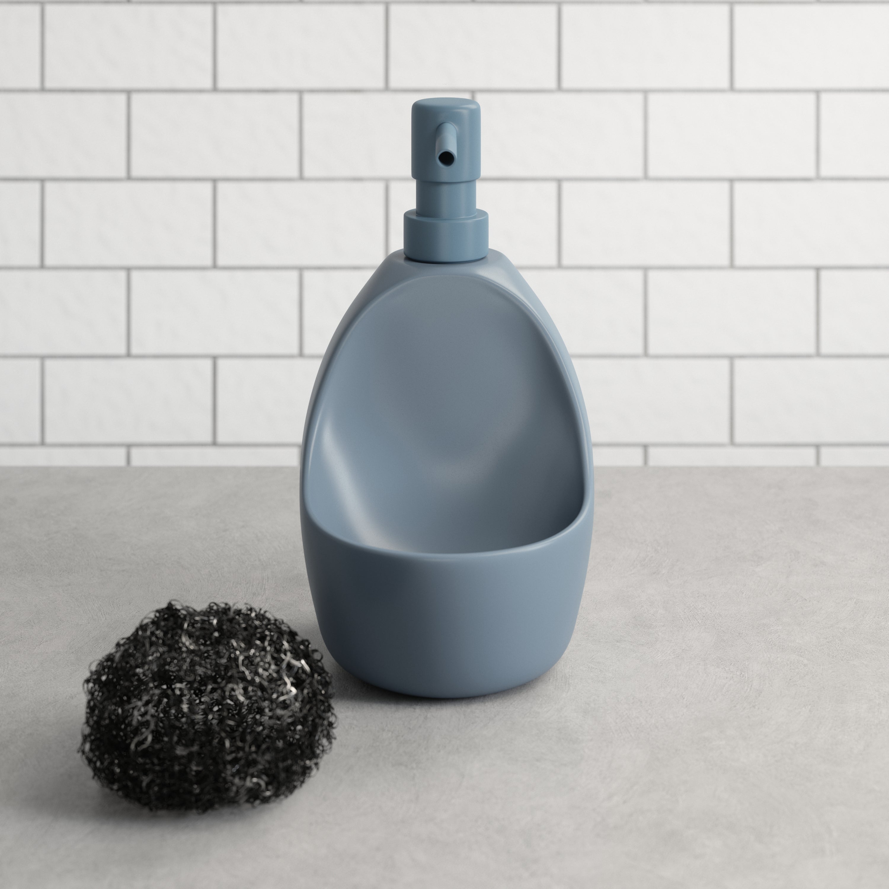 SATIVA TURNERデザインです。スクラビーホルダーの付いた陶器製のソープポンプ。ソープのすぐ近くにスクラビーを置いておけるので便利です。スクラビー付き。