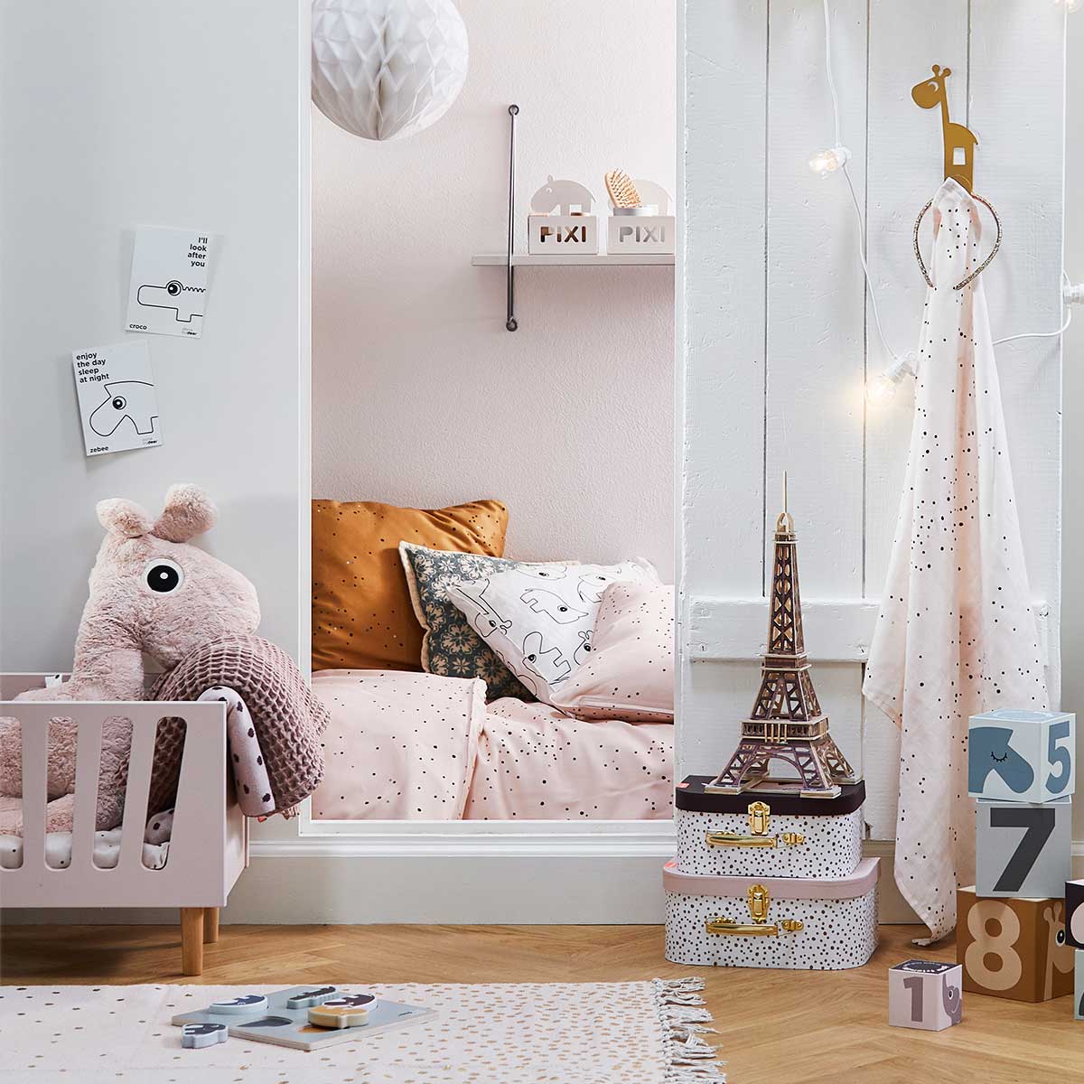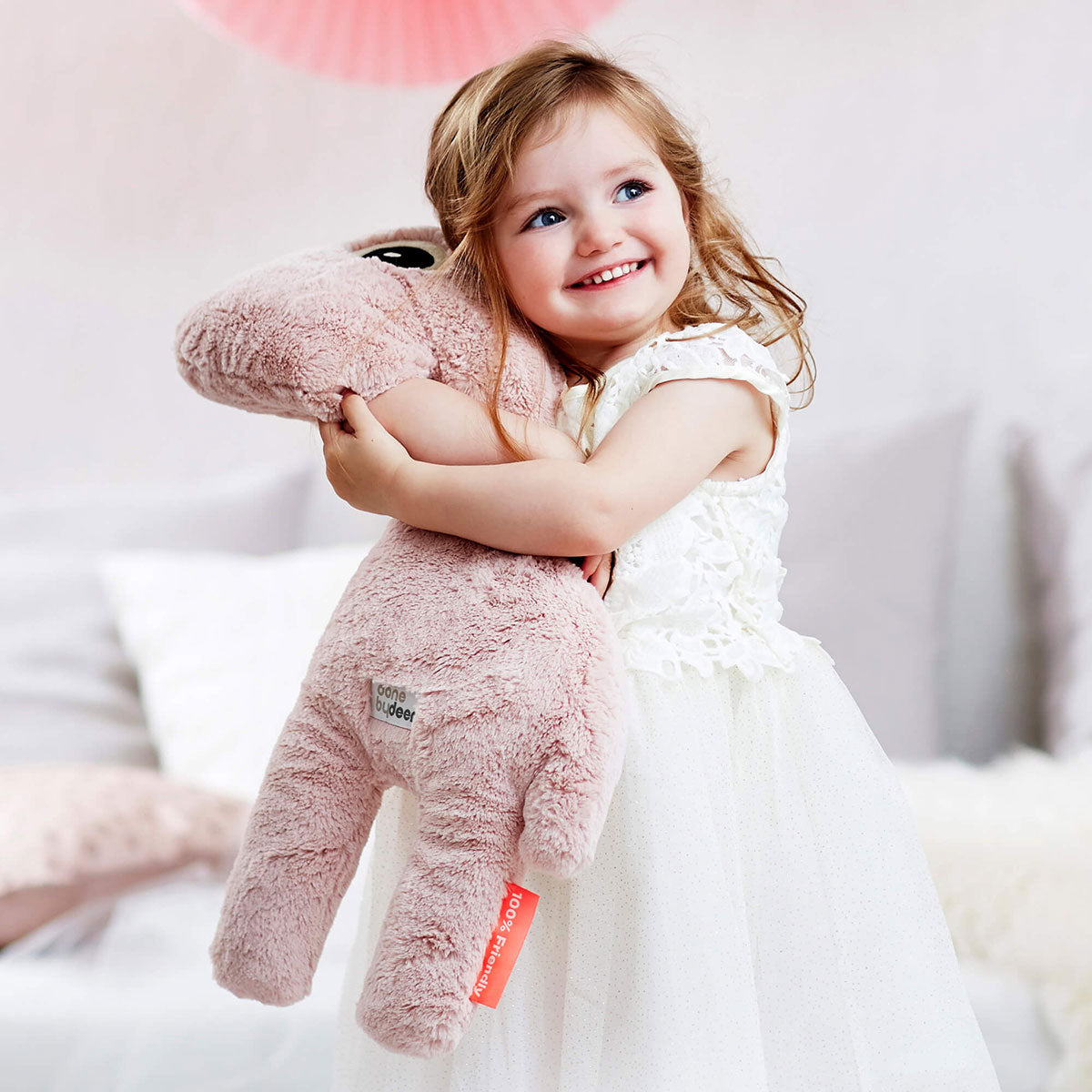 優しいピンクカラーの“Raffi”のぬいぐるみ。赤ちゃんもキッズも、ひとたび彼らを抱きしめれば、その手触りのよい柔らかな感触に病みつきになってしまうはず。ご自宅用はもちろん、ご出産祝いなどのギフトにもおすすめです。