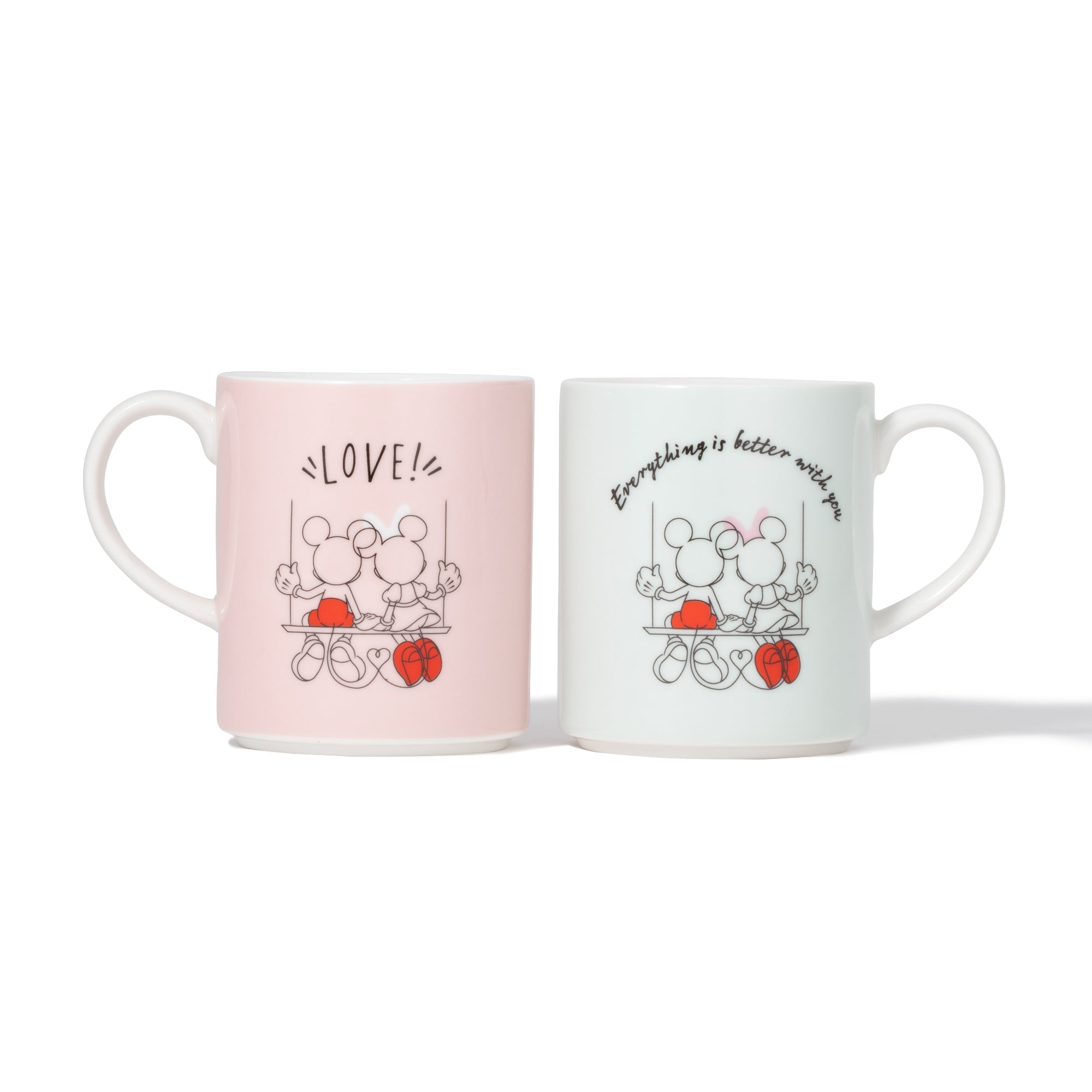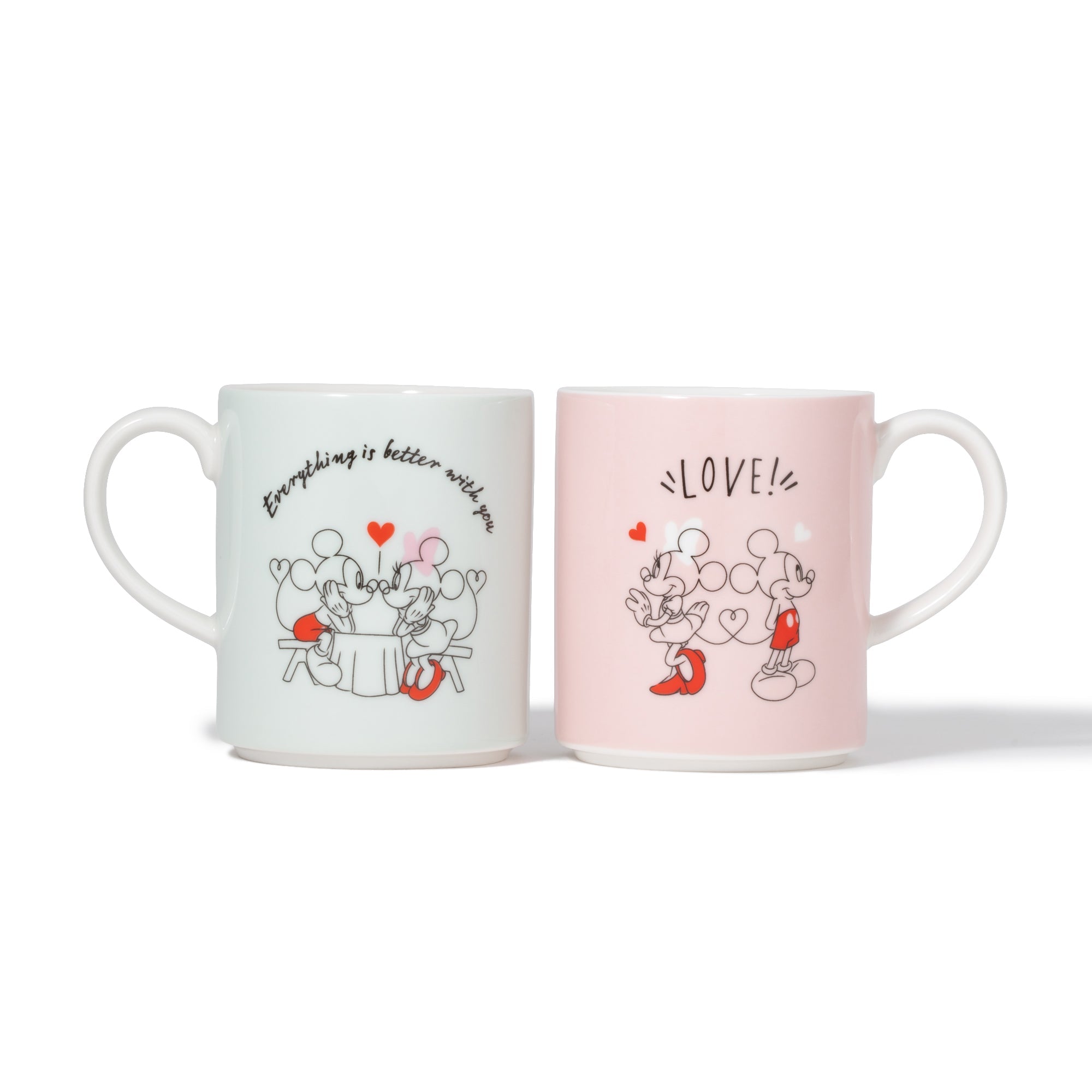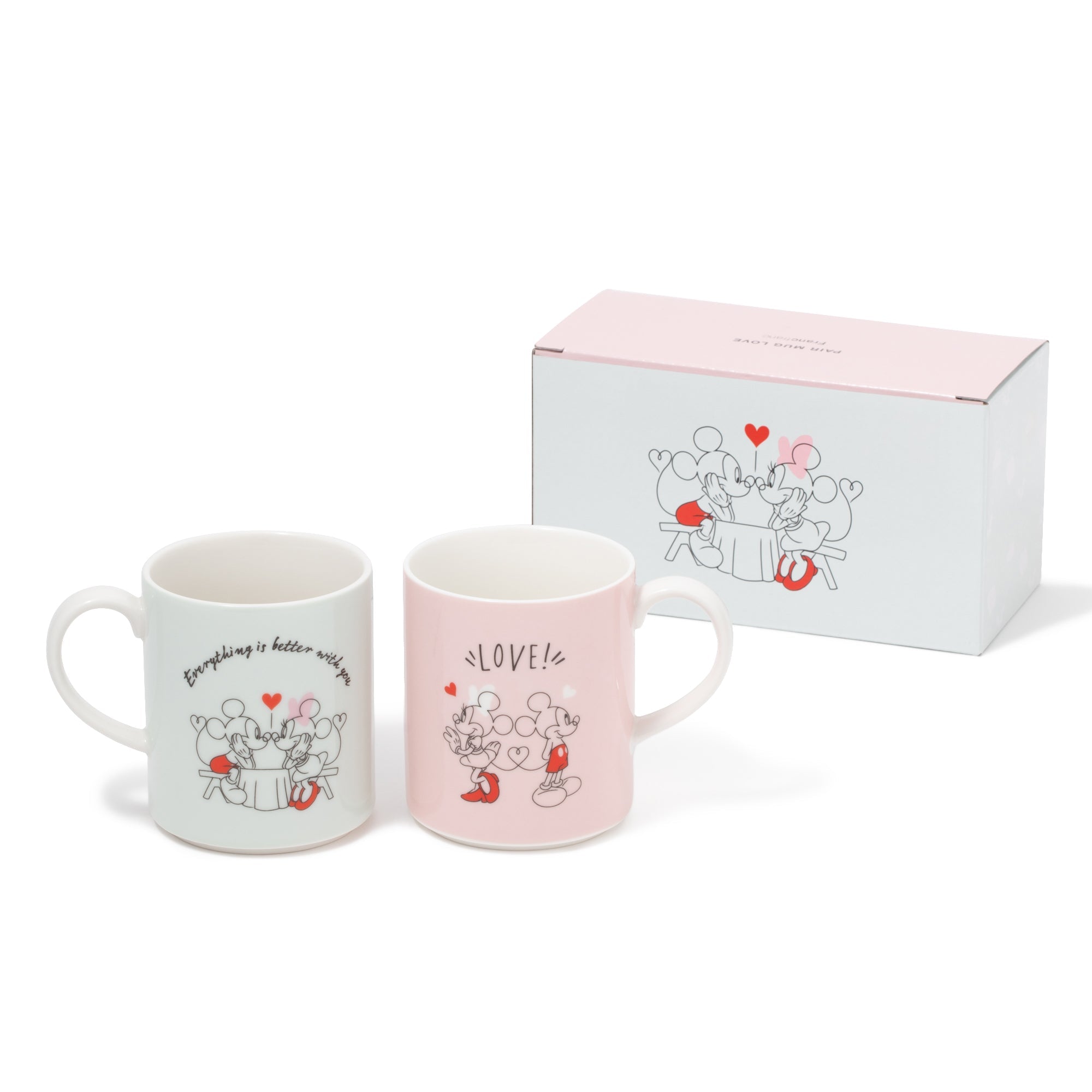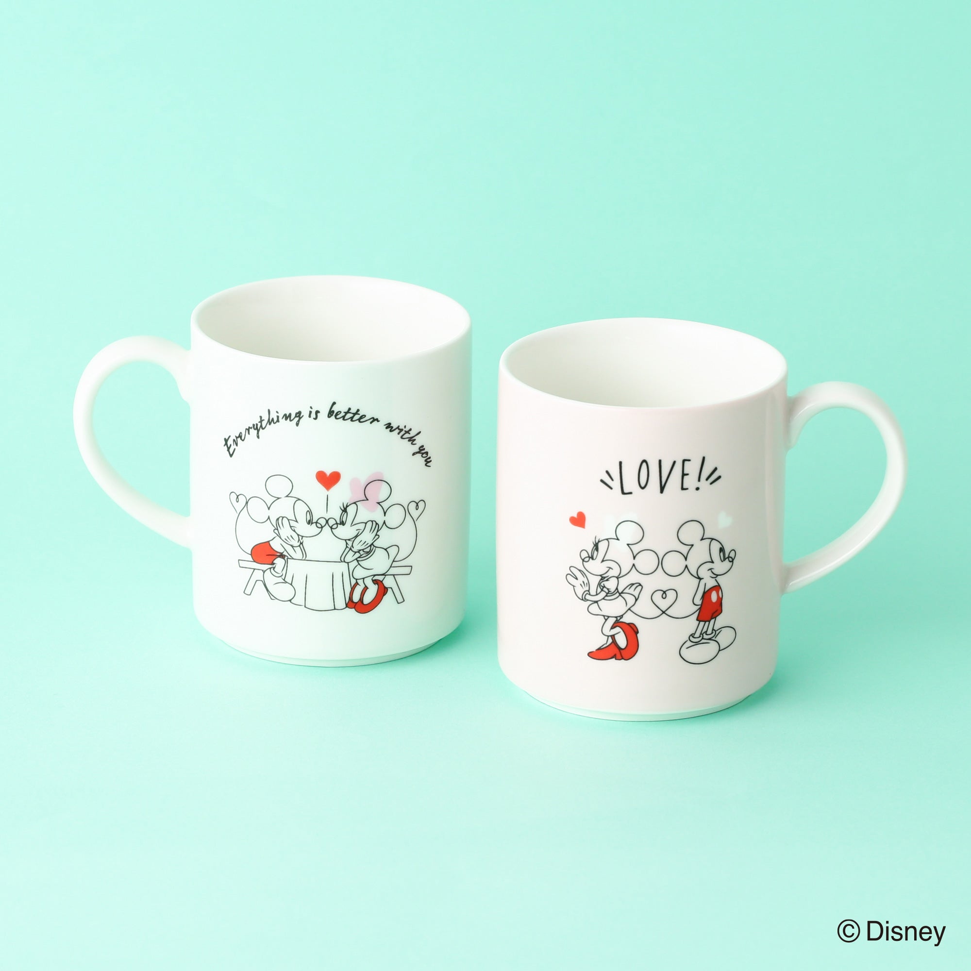 こだわりのパステルカラーにおしゃれなタッチのミッキーとミニーが大人かわいいペアマグです。さりげないペア感が、ご結婚のお祝いなどのギフトにも最適です。