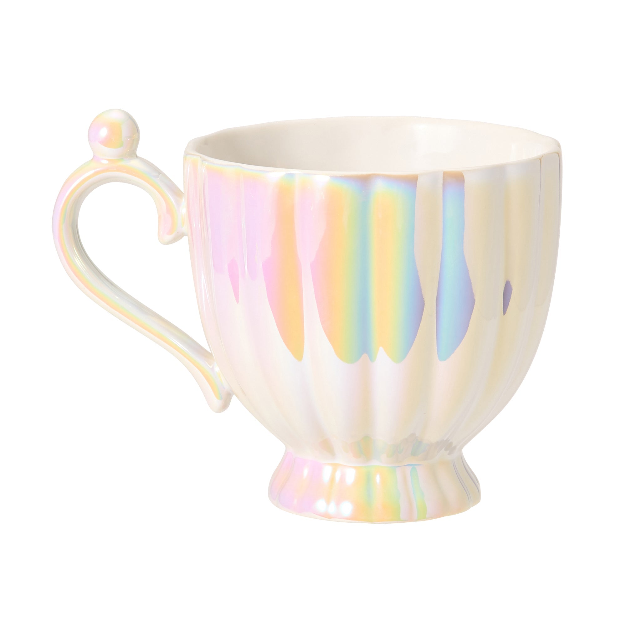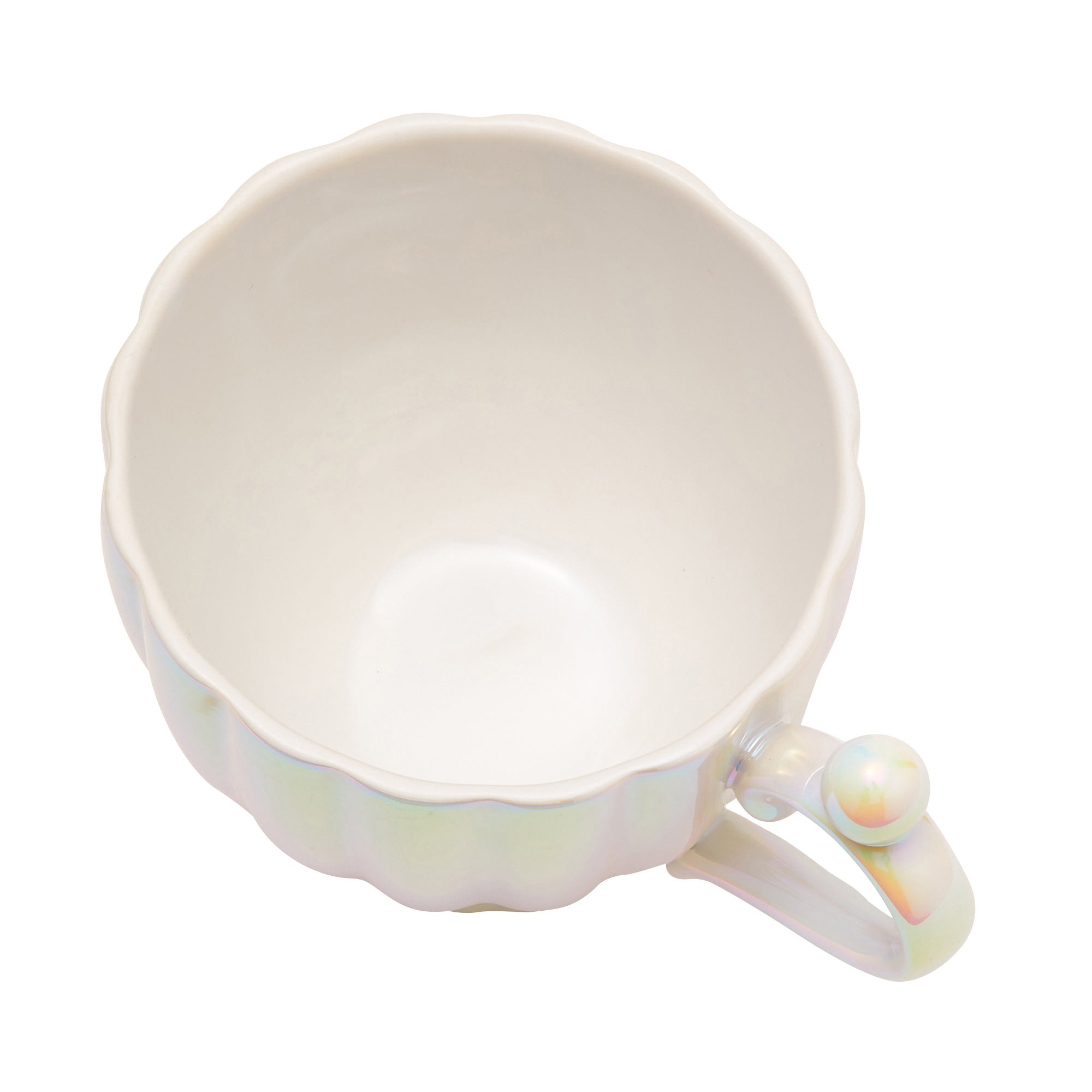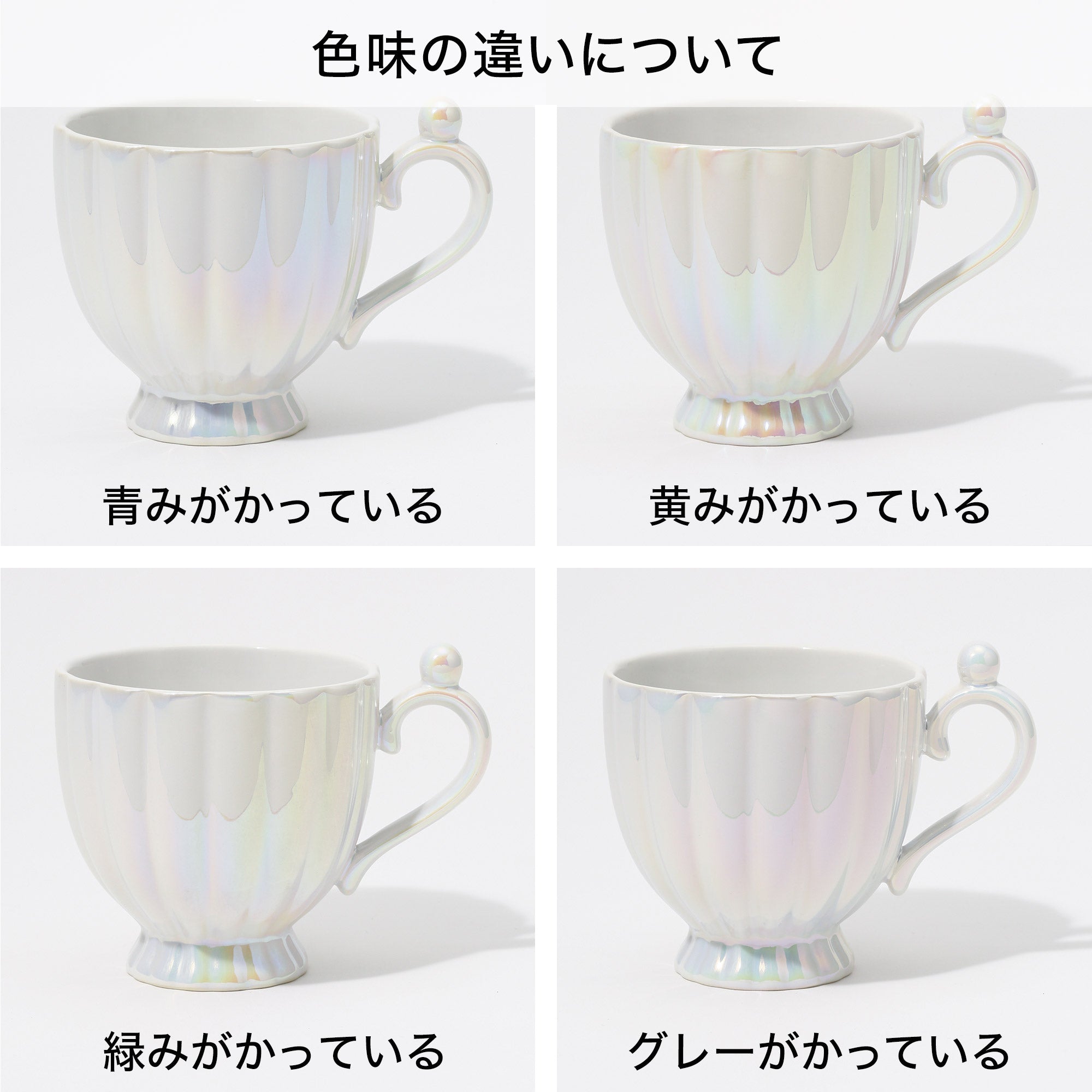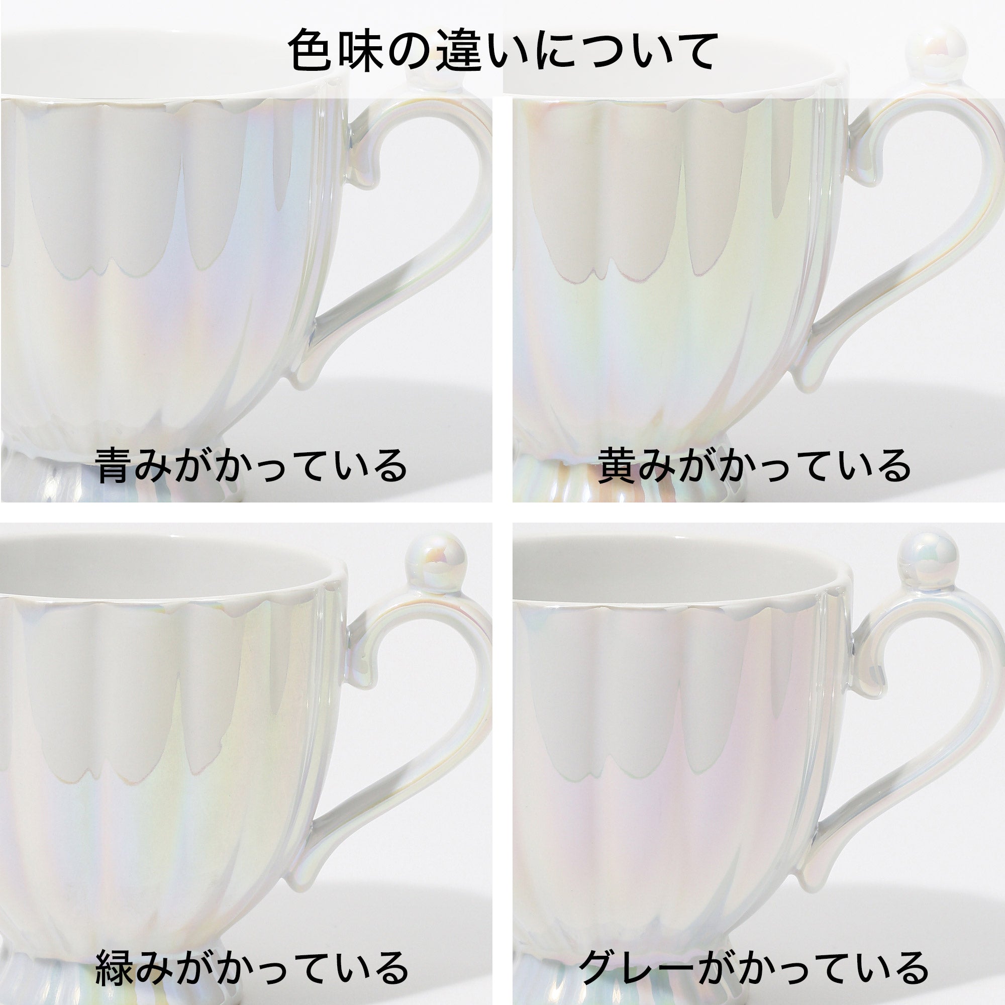 シェルモチーフ×オパール加工でかわいいがぎゅっと詰まったマグです。ハンドルにあしらわれたパールモチーフがキュートなアクセントに。コロンとした丸いフォルムで使うたび癒されます。同じシリーズで揃えておうちカフェがおすすめ。華やかなテーブルコーディネートが叶います。