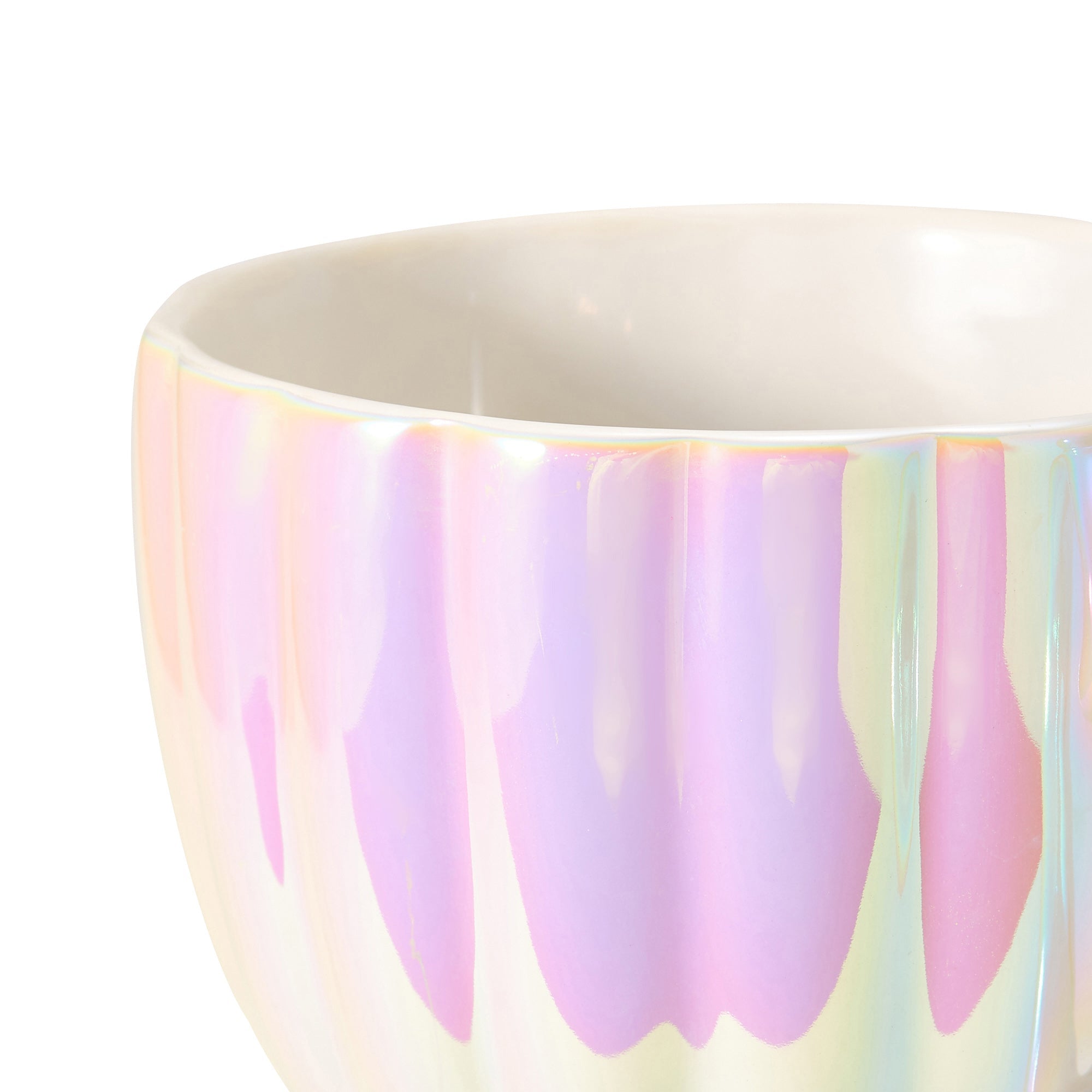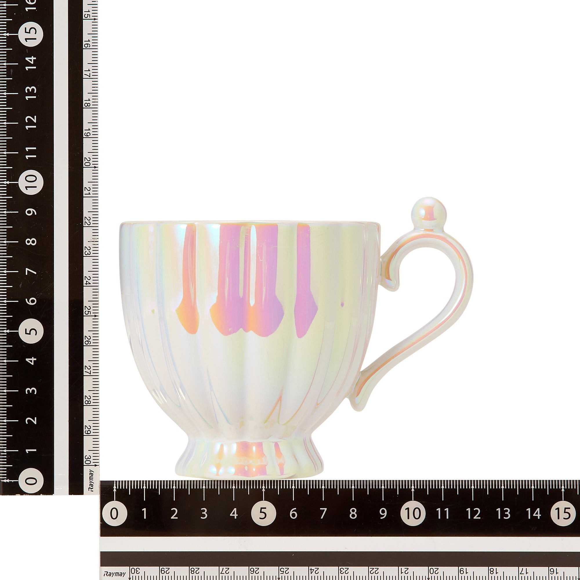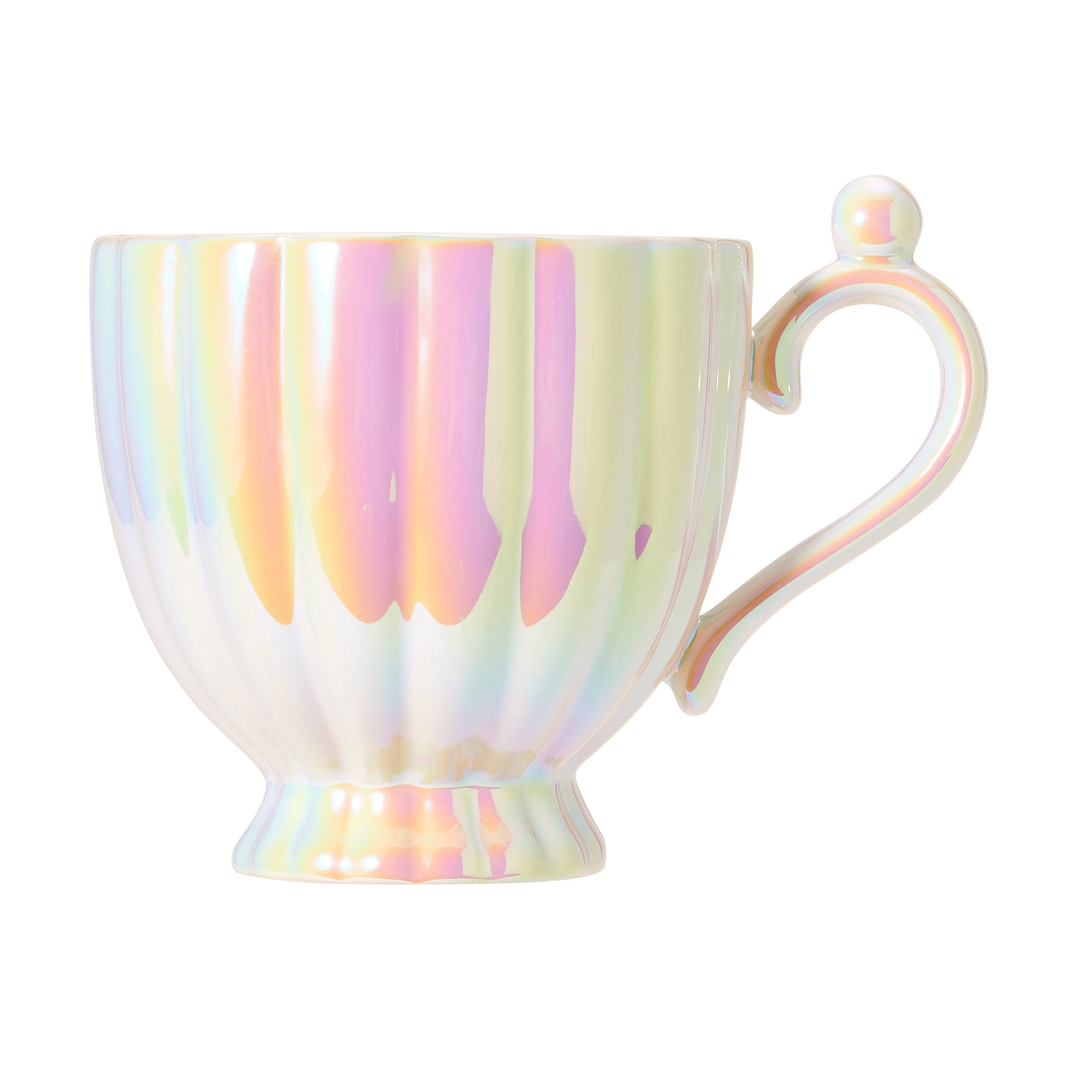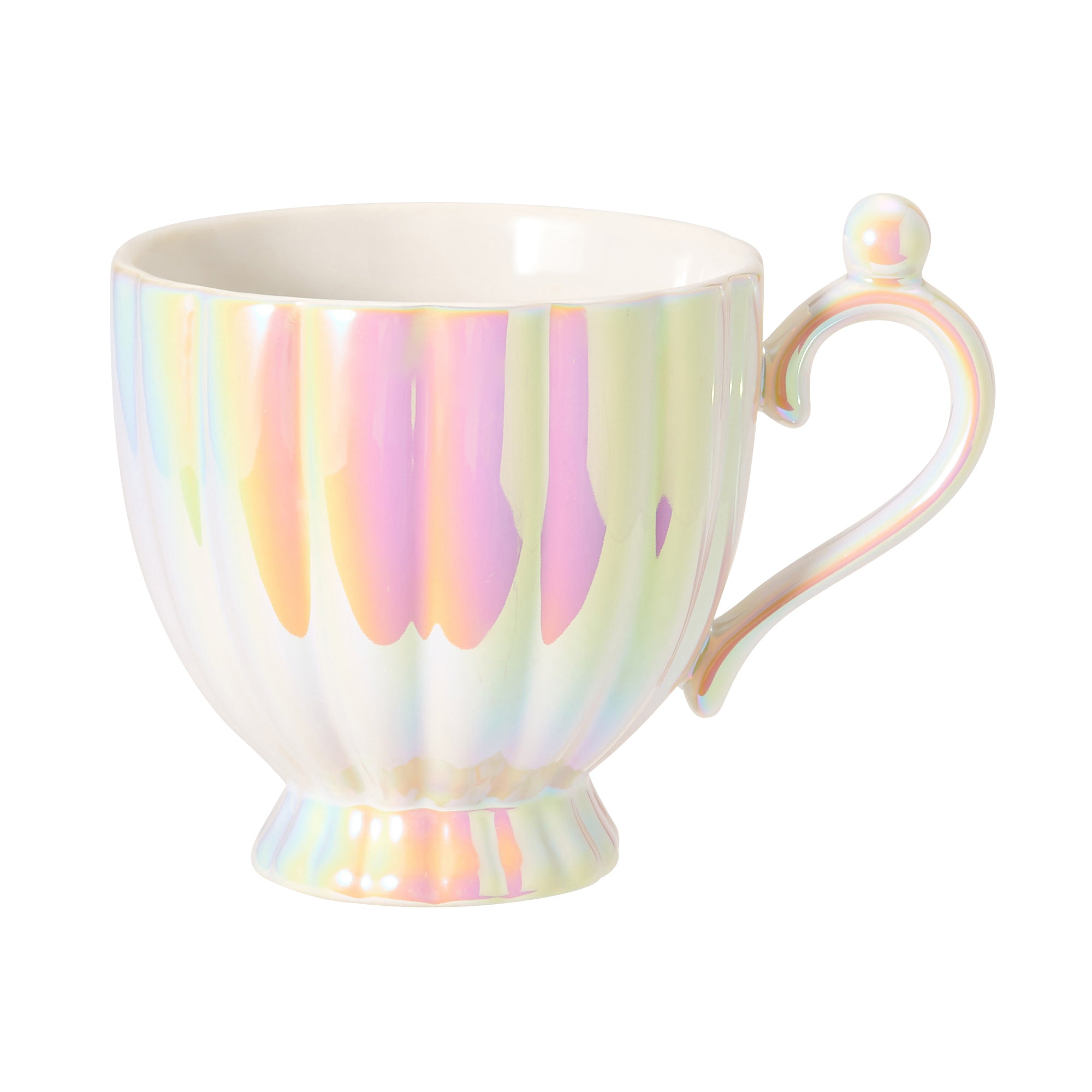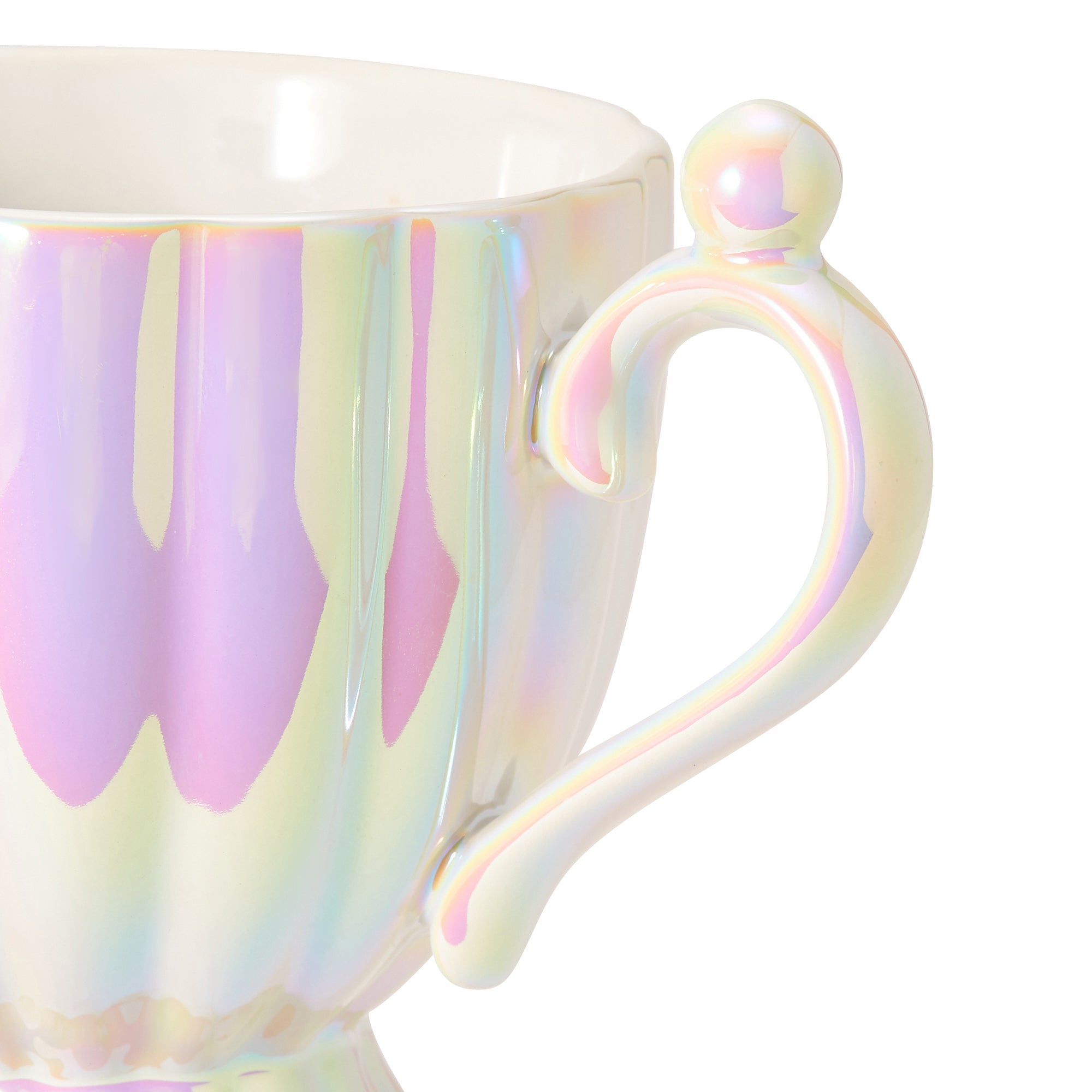 シェルモチーフ×オパール加工でかわいいがぎゅっと詰まったマグです。ハンドルにあしらわれたパールモチーフがキュートなアクセントに。コロンとした丸いフォルムで使うたび癒されます。同じシリーズで揃えておうちカフェがおすすめ。華やかなテーブルコーディネートが叶います。