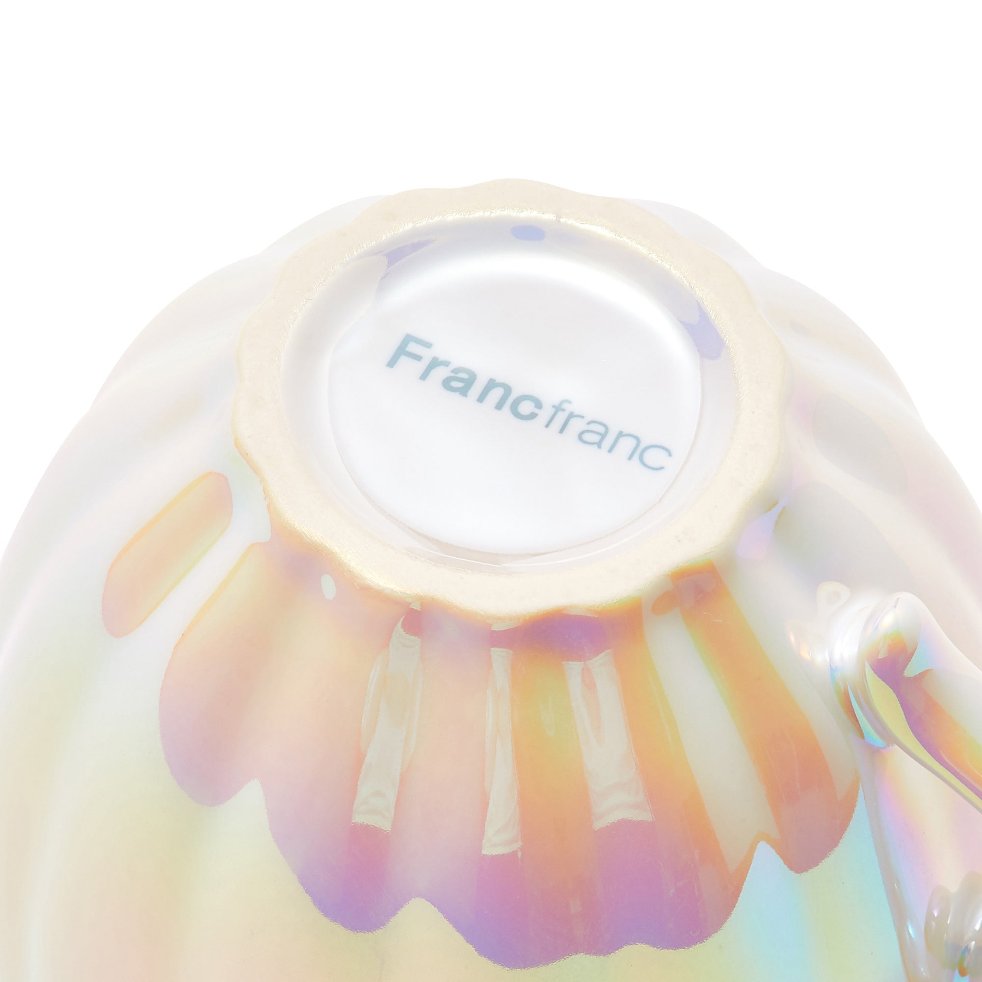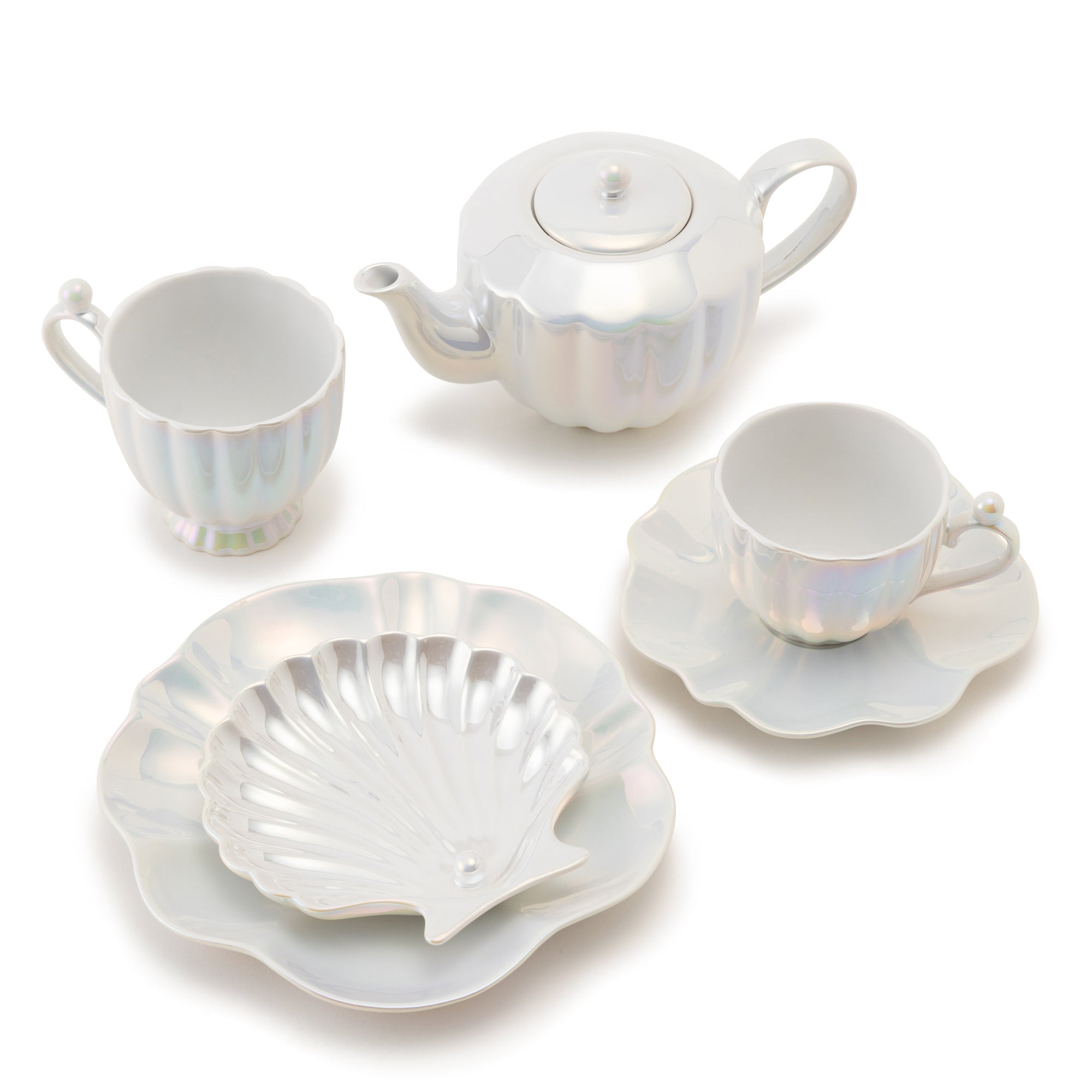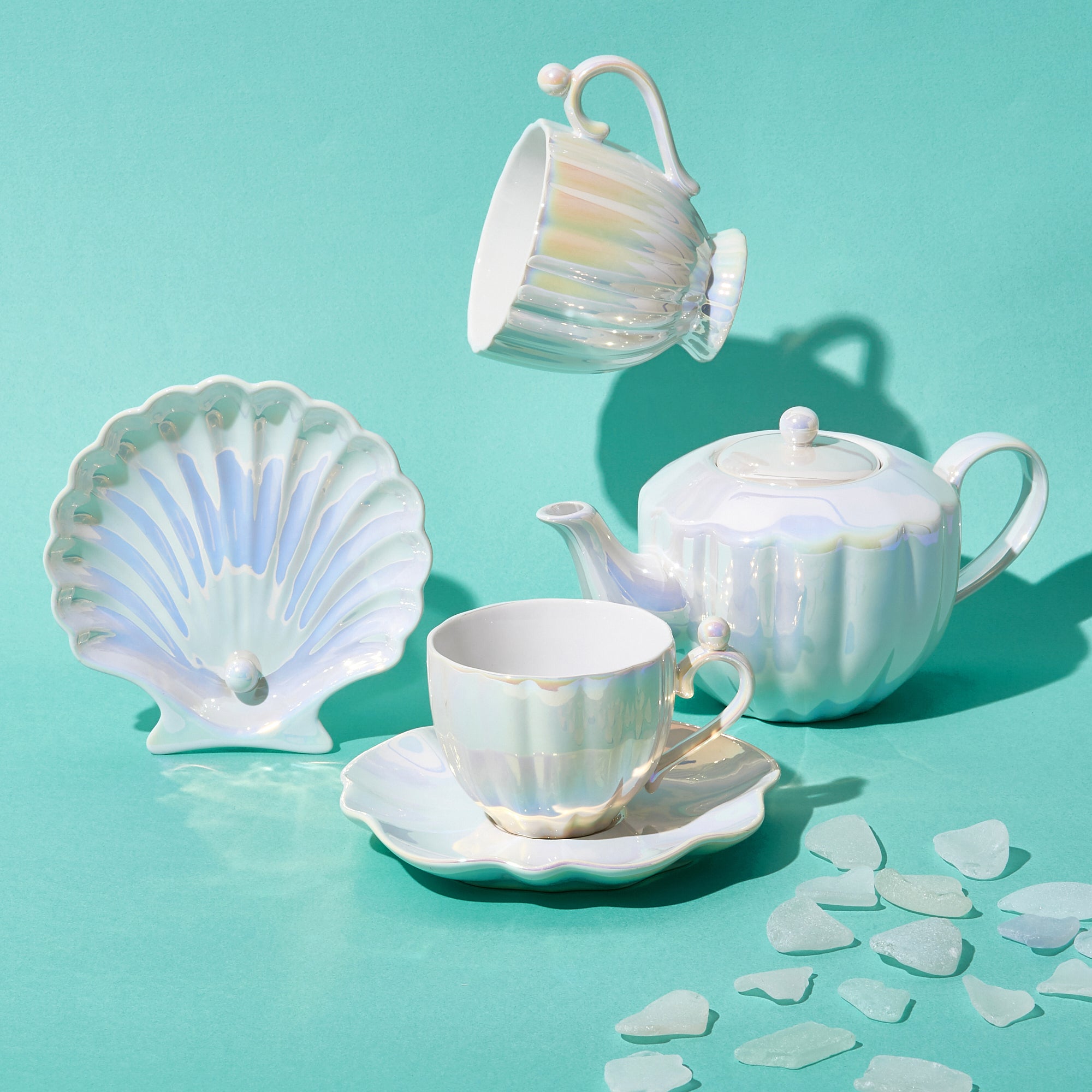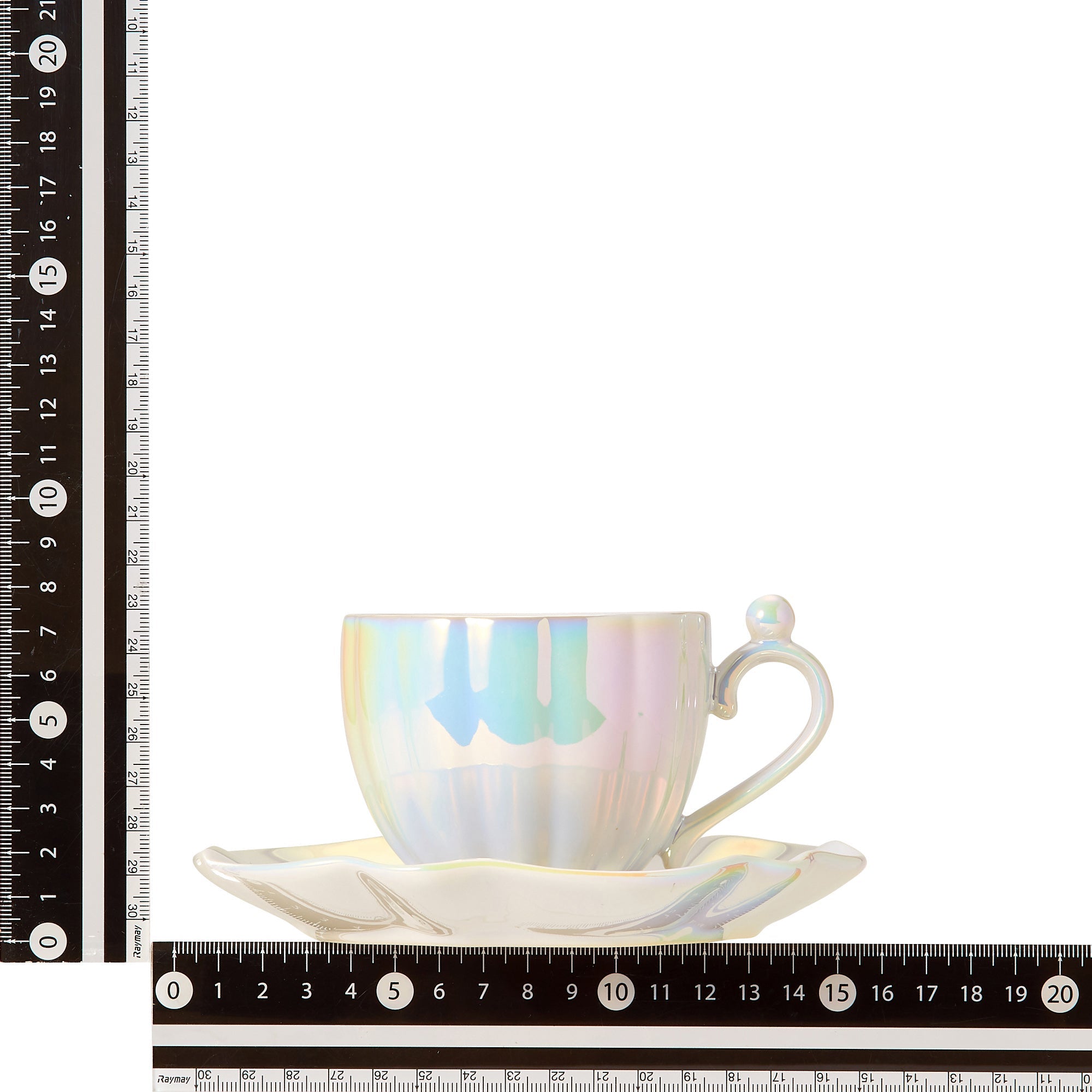 シェルモチーフ×オパール加工でかわいいがぎゅっと詰まったカップ&ソーサーです。ハンドルにあしらわれたパールモチーフがキュートなアクセントに。波をイメージさせるソーサーのカーブは七色に光って目を惹きます。おもてなしの気持ちが伝わるこだわりのカップ&ソーサーは、ホームパーティーでも大活躍。おうち時間を鮮やかに彩るアイテムで、素敵なひと時をお過ごしください。
