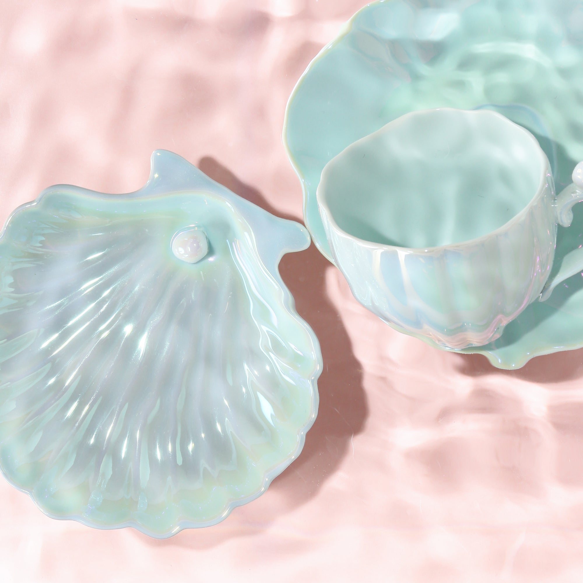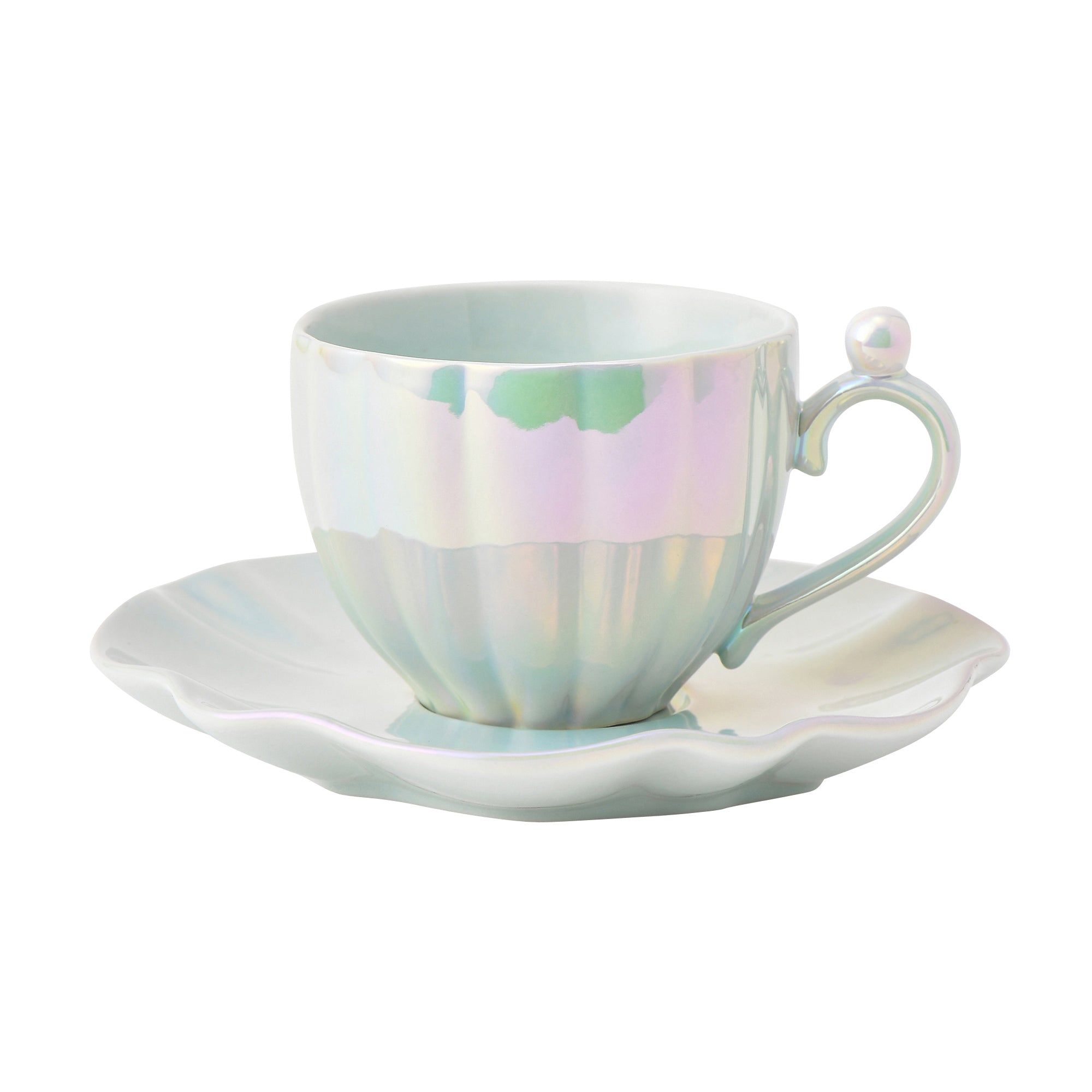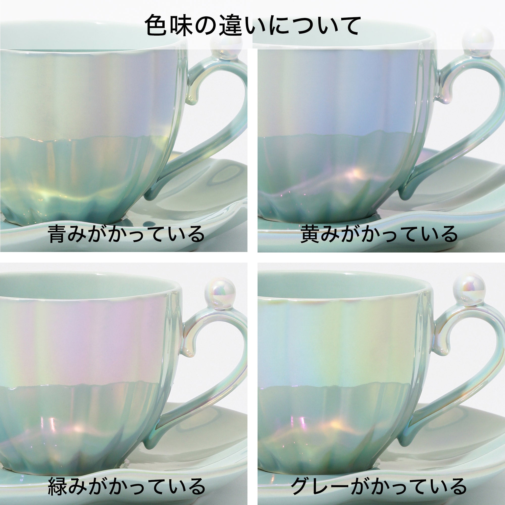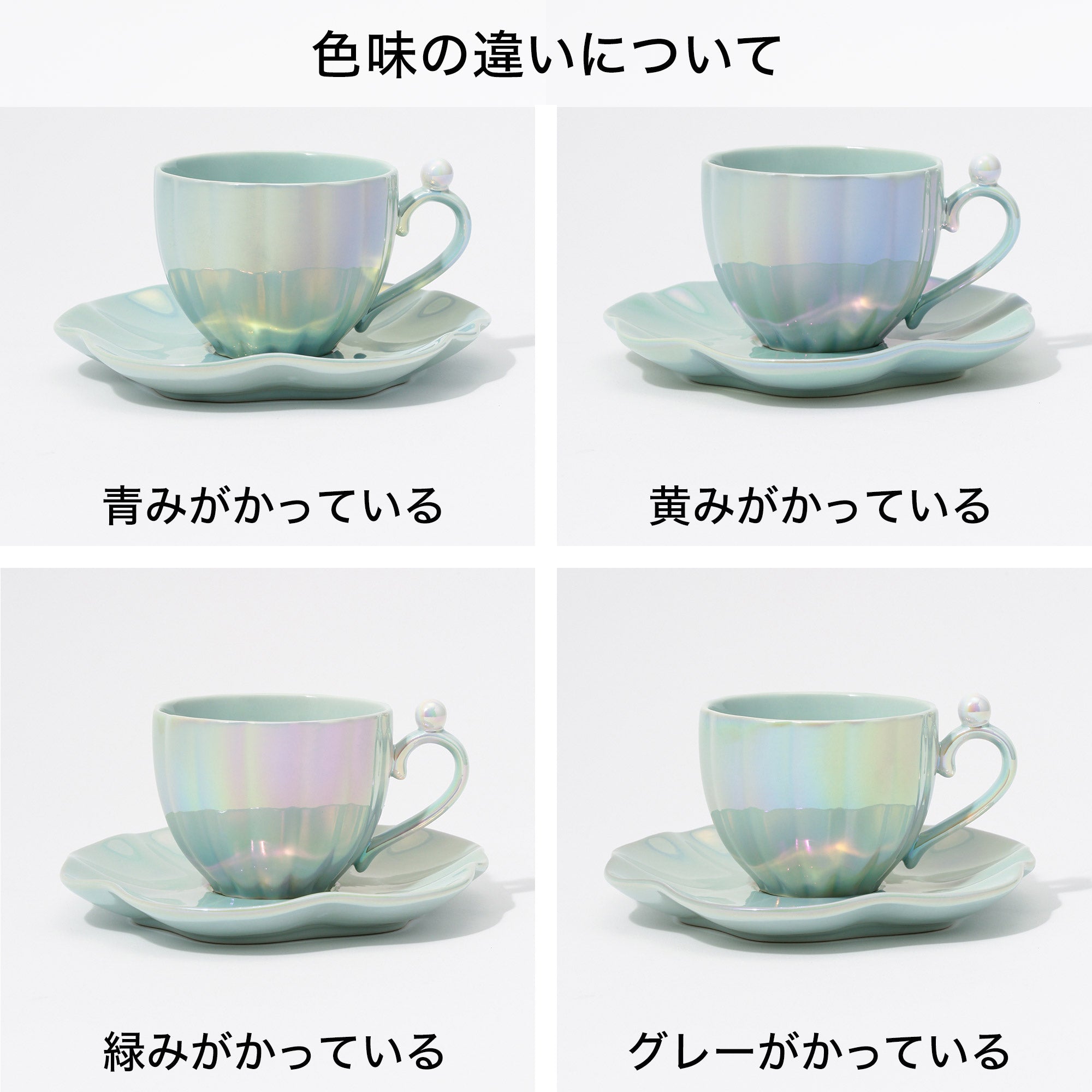 人気のオパールシェルシリーズにさわやかなミントが仲間入り。シェルモチーフ×オパール加工でかわいいがぎゅっと詰まったカップ&ソーサーです。ハンドルにあしらわれたパールモチーフがキュートなアクセントに。波をイメージさせるソーサーのカーブは七色に光って目をひきます。おもてなしの気持ちが伝わるこだわりのカップ&ソーサーは、ホームパーティーでも大活躍。おうち時間を鮮やかに彩るアイテムで、素敵な時間をお過ごしください。