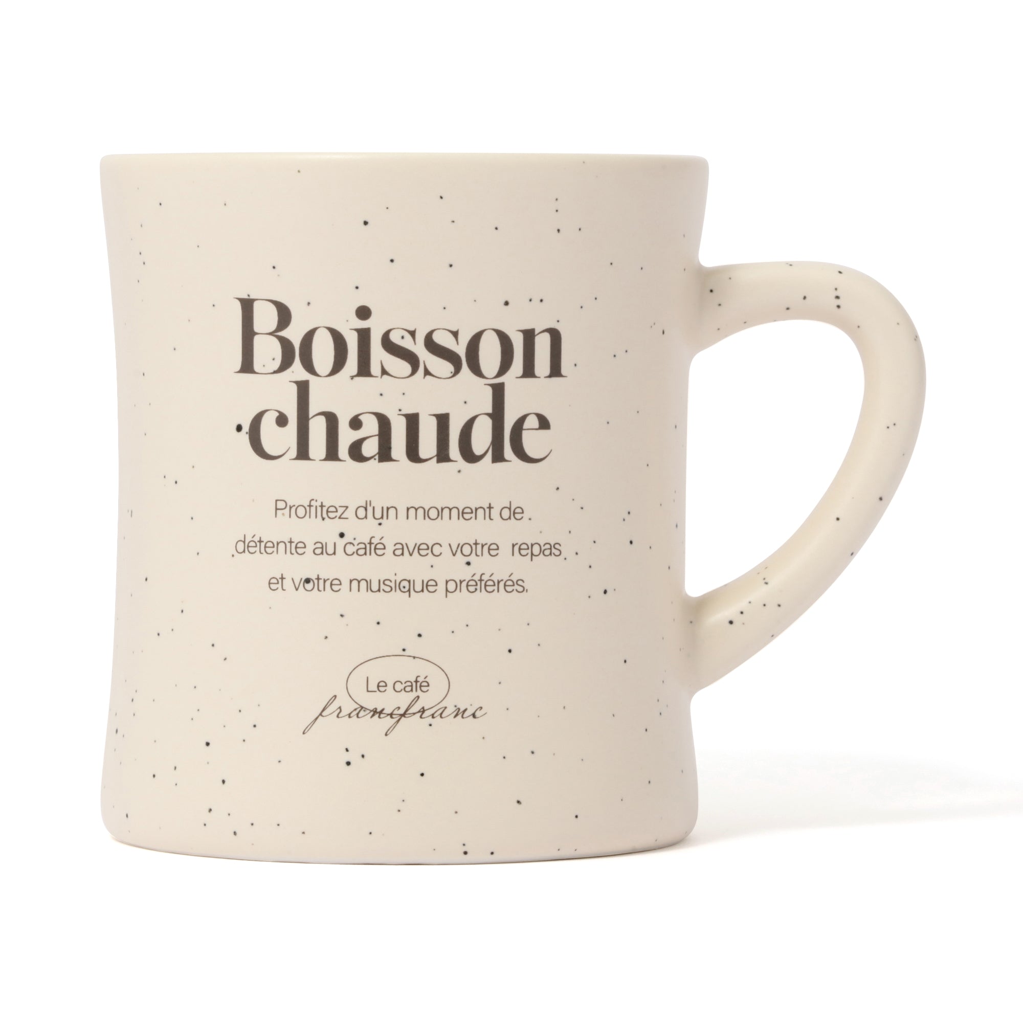 おしゃれなカフェでティータイムを過ごしているような気分になれるマグカップです。 エレガントさがある華奢なフォントを使用し、少し丸みのあるふっくらした形がおしゃれ。 同じシリーズのプレートやグラスと一緒に素敵なティータイムをお過ごしください。