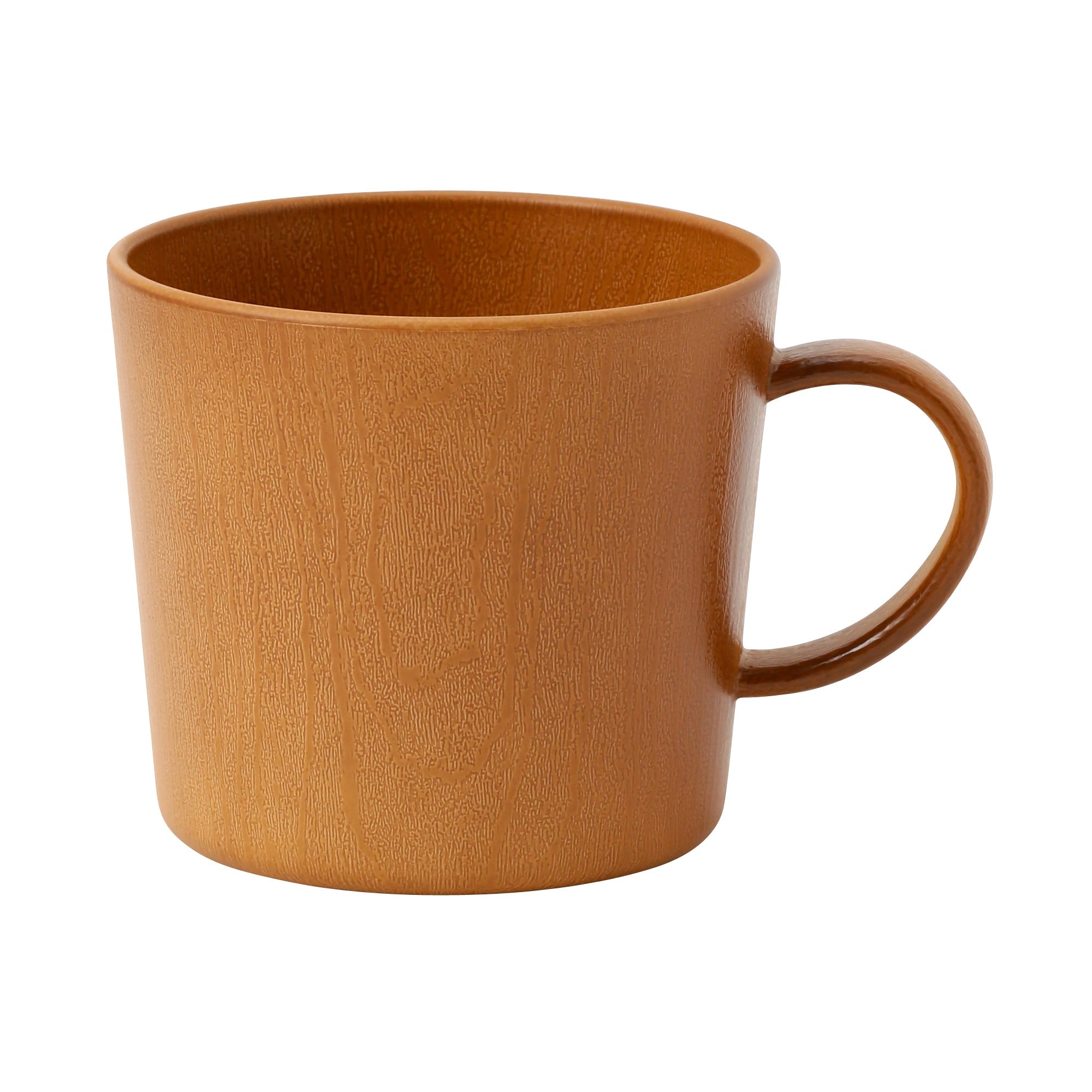 ナチュラルで使いやすい木目風のテーブルウェアです。家庭用電子レンジ・食器洗い乾燥機対応。軽くて割れにくいマグカップです。