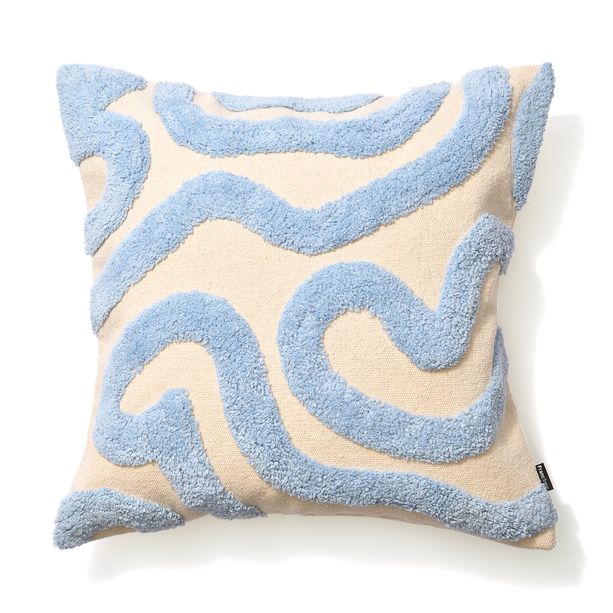 キャンバス地にタフトで曲線模様を施したクッションカバーです。遊び心のあるデザインでお部屋をおしゃれに格上げしてくれます。