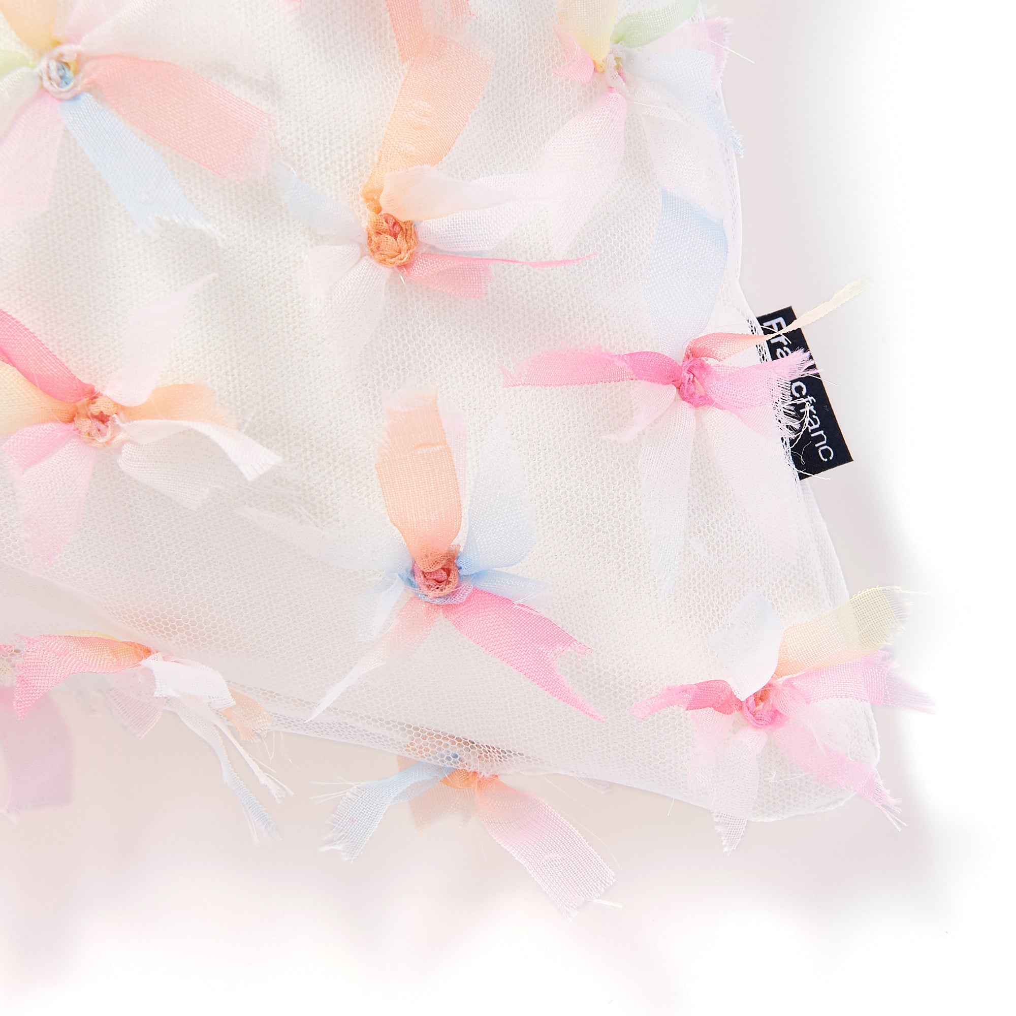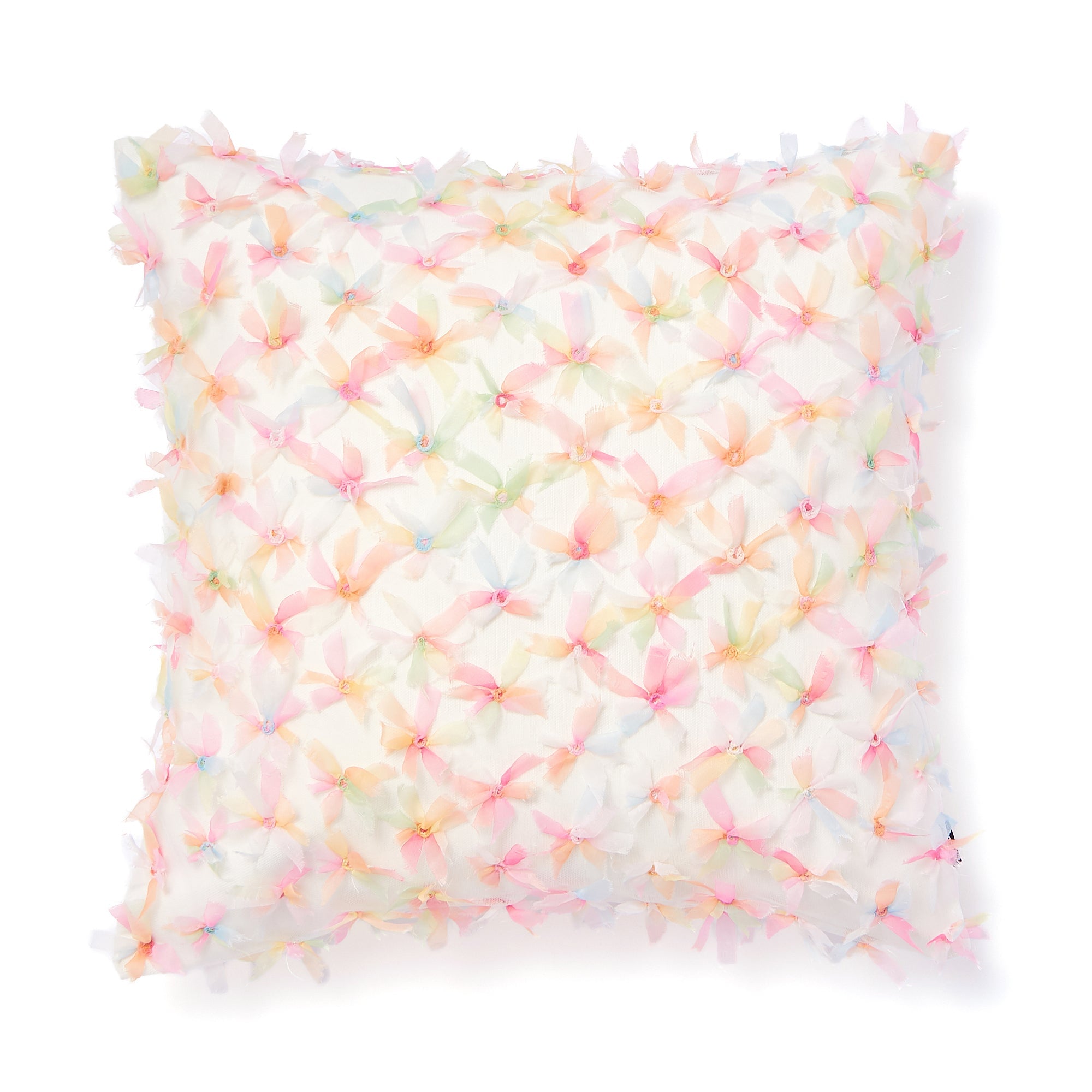オーガンジー素材のカラフルなリボンを全面に施した華やかなデザインのクッションカバーです。薄手の素材のリボンが、派手になりすぎずカラフルで取り入れやすい仕上がりとなっています。▼クッションカバーの中材(別売り)はこちらクッションヌード一覧サイズW450×D450mm素材表側:基布ポリエステル100%、 表側装飾花:ポリエステル100%、裏側:コットン100%重量0.135 kgカラーMULTI品番 1102010044537 全国一律550円(税込)です。雑貨の商品金額合計が5,000円(税込)以上の場合、送料無料で配送いたします。※手数料、ラッピング料、付帯サービス料は含みません。※新生活期・年末年始は出荷や配送の繁忙期となるため、日時指定をいただいてもご希望日時通りお届け出来ないことがございます。●洗濯:ドライ可■水洗いにより色落ちしたり、縮んだり、外観が変化することがありますので、お手入れはネットを使用したドライクリーニングをお願いします。■素材の特性上、摩擦やドライクリーニングにより、毛羽立ち・毛羽抜け・毛玉が発生することがあります。■装飾のリボンは切りっ放しのの為、使用中にほつれが発生する可能性があります。■肌への強い摩擦にご注意下さい。■原産国:中国