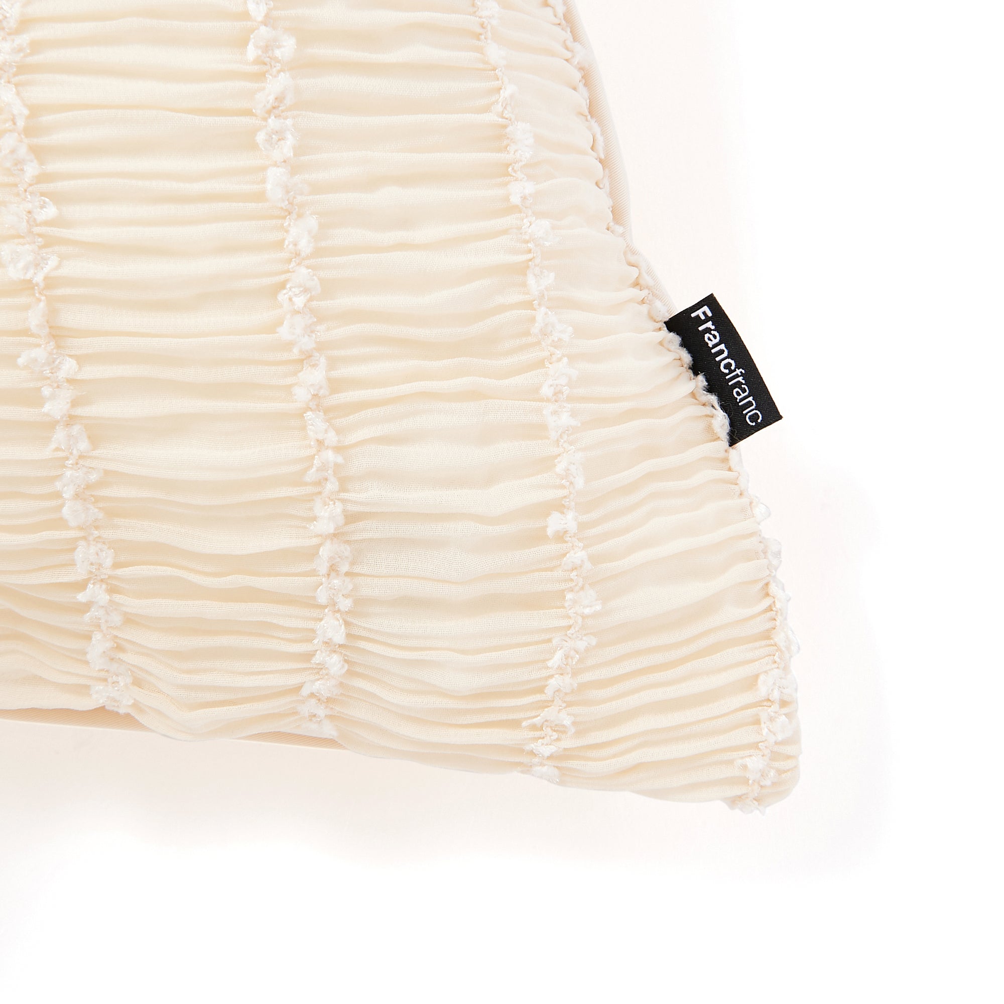 柔らかなシフォン生地を使用し、ギャザーを施すことで生まれた立体感が軽やかな印象のクッションカバーです。上品なデザインでお部屋を優しい印象にしてくれます。▼クッションカバーの中材(別売り)はこちらクッションヌード一覧サイズW450×D450×H10mm素材表側:地組織・装飾糸 ポリエステル100%、装飾糸・とめ糸 ポリエステル80%・ポリウレタン20%、裏側:ポリエステル100%重量0.17 kgカラーIV品番 1102010044711 全国一律550円(税込)です。雑貨の商品金額合計が5,000円(税込)以上の場合、送料無料で配送いたします。※手数料、ラッピング料、付帯サービス料は含みません。※新生活期・年末年始は出荷や配送の繁忙期となるため、日時指定をいただいてもご希望日時通りお届け出来ないことがございます。●洗濯機:不可●ドライクリーニング:可●タンブル乾燥:不可●アイロン:可■水洗いにより、縮んだり、色落ちや外観変化が生じる場合がありますので、お手入れの際はネットを使用したドライクリーニングをお願いします。■表側のアイロンはお避けください。■多少色落ちしたり、他に色移りする場合があります。特に濡れた状態での摩擦にご注意ください。■表側はデリケートなため、装着の際は強い力で引っ張らないでください。■装飾部分は引っ掛かり易いため、お取扱いには十分ご注意ください。■装飾糸の端が飛び出している場合がありますが、引っ張らないでください。