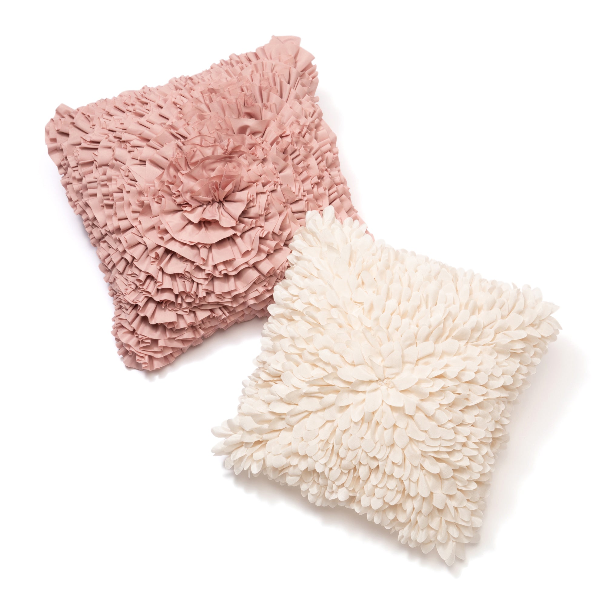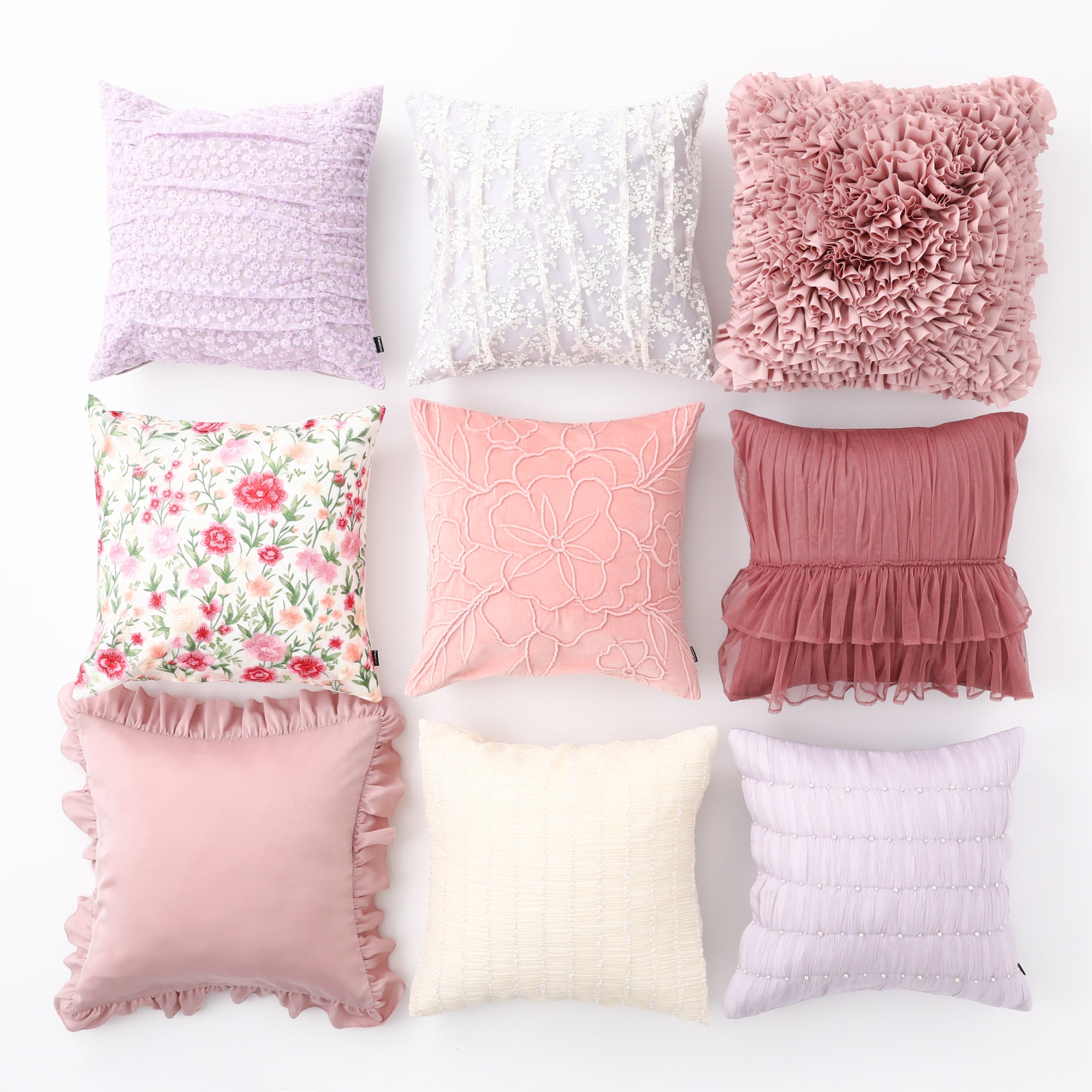 フリルアップリケ クッションカバー 450×450 ピンク(052)