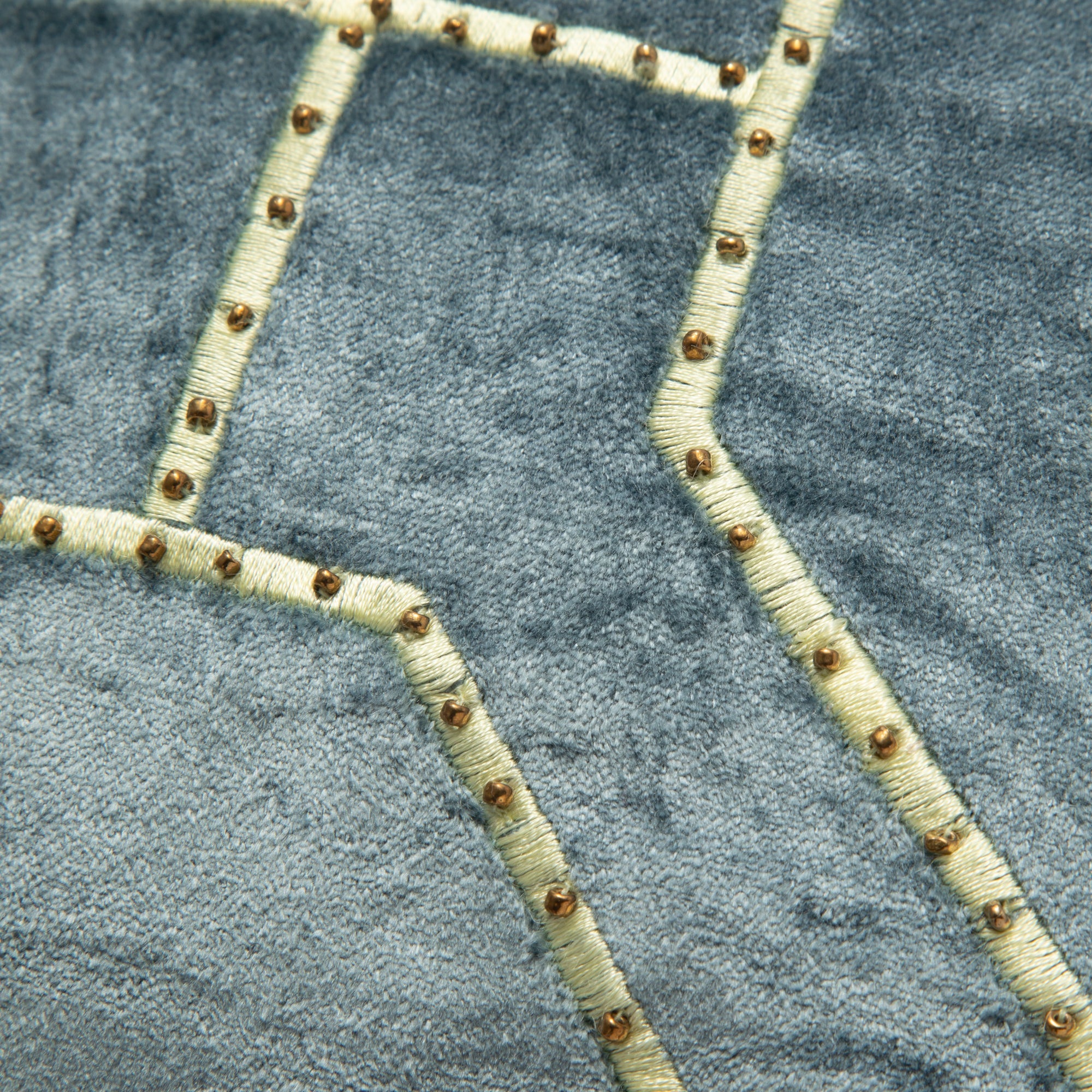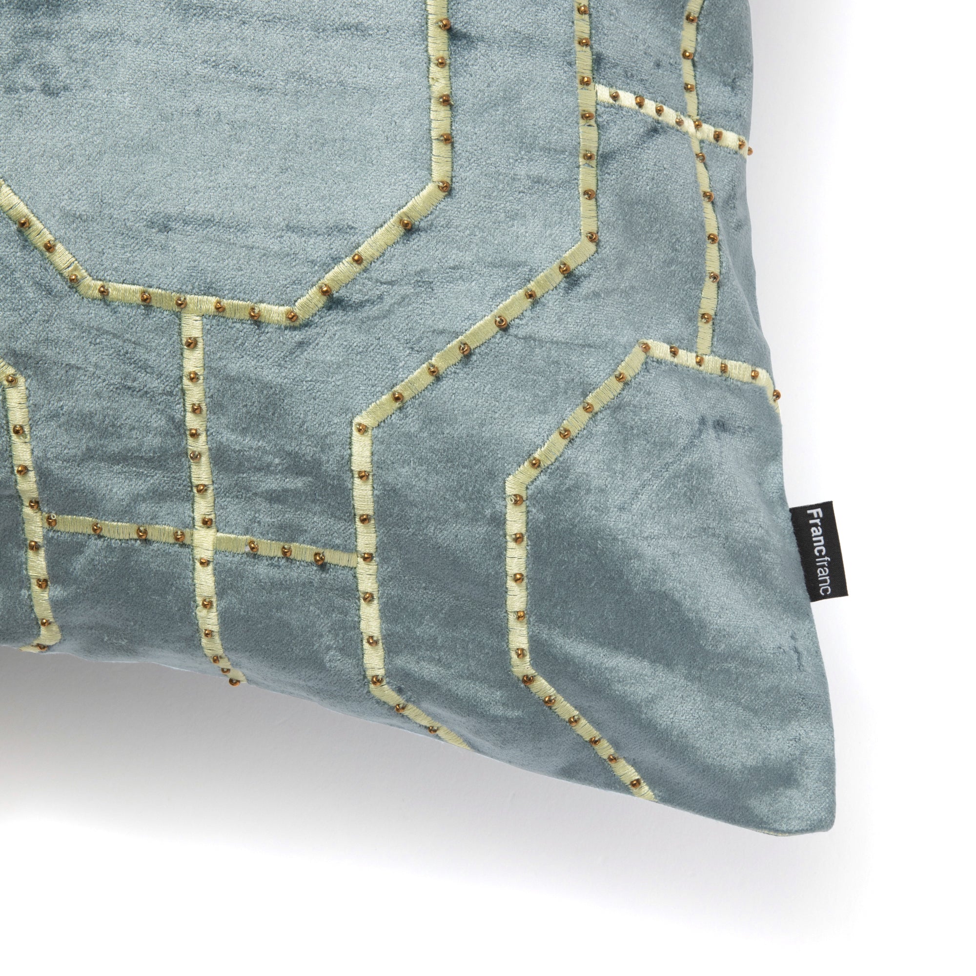 艶感のあるベルベット生地に幾何柄にビーズを刺繍したクッションカバーです。▼クッションカバーの中材(別売り)はこちらクッションヌード一覧サイズW450×D450mm素材表側:地組織コットン100%、パイル:レーヨン100%、刺繍:レーヨン100%、裏側:コットン100%、ガラスビーズ使用重量3.3 kgカラーBL品番 1102010047859 全国一律550円(税込)です。雑貨の商品金額合計が5,000円(税込)以上の場合、送料無料で配送いたします。※手数料、ラッピング料、付帯サービス料は含みません。※新生活期・年末年始は出荷や配送の繁忙期となるため、日時指定をいただいてもご希望日時通りお届け出来ないことがございます。■洗濯:不可■洗濯機:不可■ドライクリーニング:不可■タンブル乾燥:不可■アイロン:不可■はっ水加工:無■本製品はビーズを多く使用しています。衝撃を加えると、ビーズが割れたり、外れたりする場合があります。■衣服や家財等に引っ掛からないよう十分ご注意ください。■怪我の恐れがある為、肌への強い摩擦にご注意ください。■製品の特性上、水洗い・ドライクリーニングはできません。■汚れた場合は固く絞った布等で軽く拭き取ってください。■使用や摩擦により、毛羽立ち・毛羽抜け・毛玉が発生します。