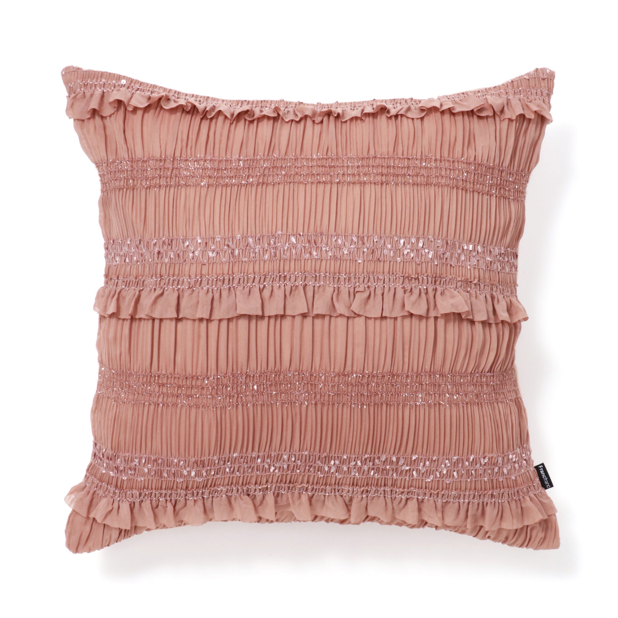 プリーツ状にギャザーを施した立体感のある華やかなクッションカバーです。ギャザー部分のキラッと光る糸が上品です。▼クッションカバーの中材(別売り)はこちらクッションヌード一覧サイズW450×D450mm素材表側・装飾糸:ポリエステル99%・ポリウレタン1%、裏側:コットン100%重量0.16 kgカラーPK品番 1102010049648 全国一律550円(税込)です。雑貨の商品金額合計が5,000円(税込)以上の場合、送料無料で配送いたします。※手数料、ラッピング料、付帯サービス料は含みません。※新生活期・年末年始は出荷や配送の繁忙期となるため、日時指定をいただいてもご希望日時通りお届け出来ないことがございます。■洗濯機:不可■ドライクリーニング:可■タンブル乾燥:不可■アイロン:不可■はっ水加工:無■水洗いにより縮んだり、外観が変化することがありますので、お手入れはネットを使用したドライクリーニングをお願いします。■デリケートな商品です。装着の際は強い力で引っ張らないでください。■ギャザー部分の装飾糸は引き出されると戻りにくいため、引き出さないようご注意ください。また、引っ掛かりにご注意ください。■原産国:中国