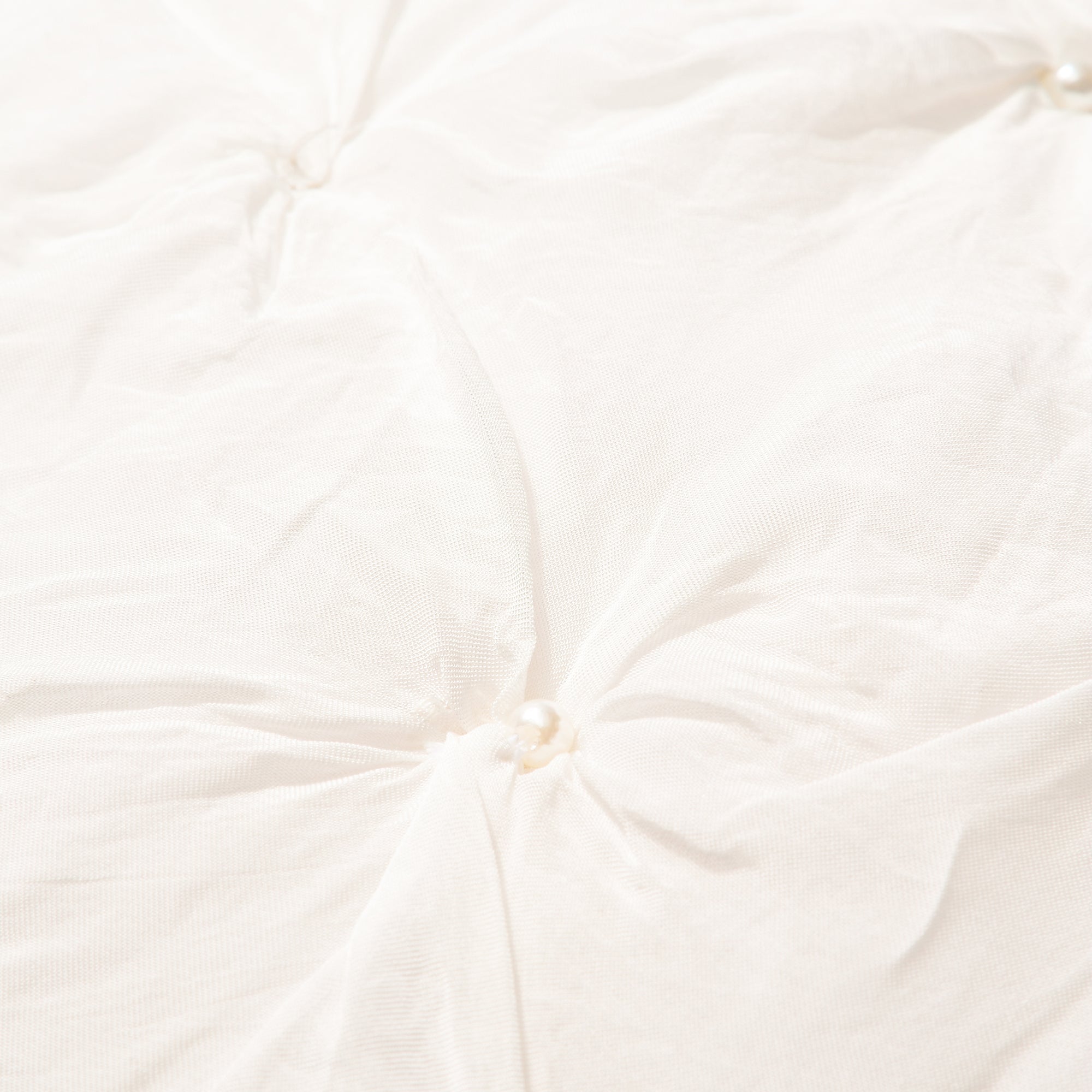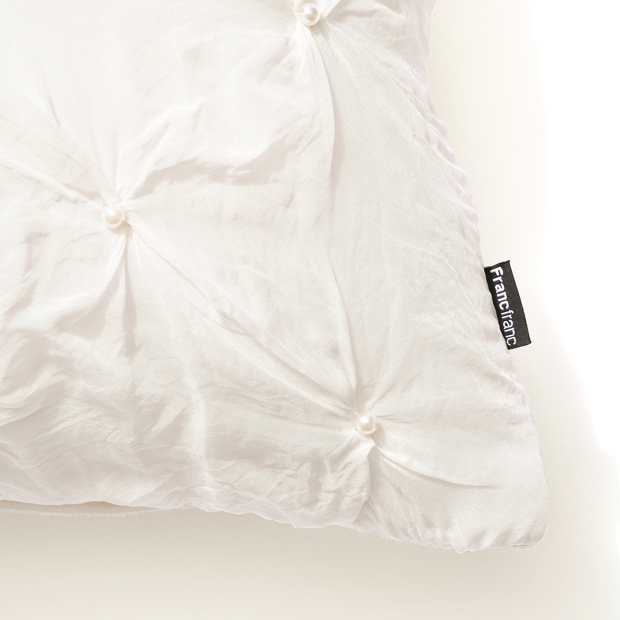 上品で光沢のあるビスコースオーガンジー生地をスモッキングし、パールビーズで飾り留めしたクッションカバーです。 ▼クッションカバーの中材(別売り)はこちら クッションヌード一覧