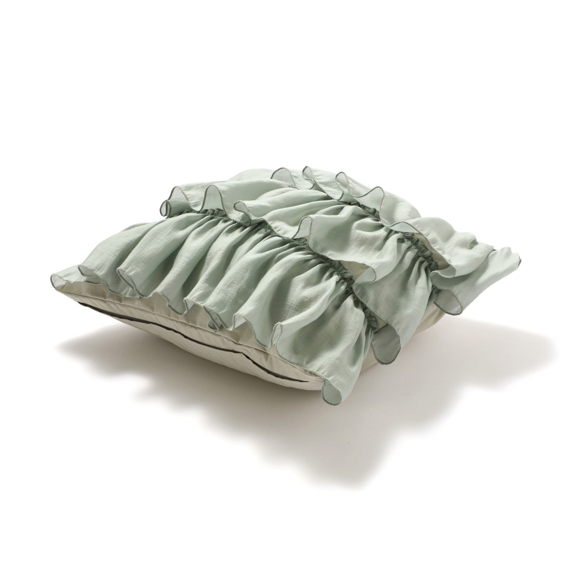シフォン生地のフリルを3段に重ねた、柔らかな印象のクッションカバーです。 ▼クッションカバーの中材(別売り)はこちら クッションヌード一覧