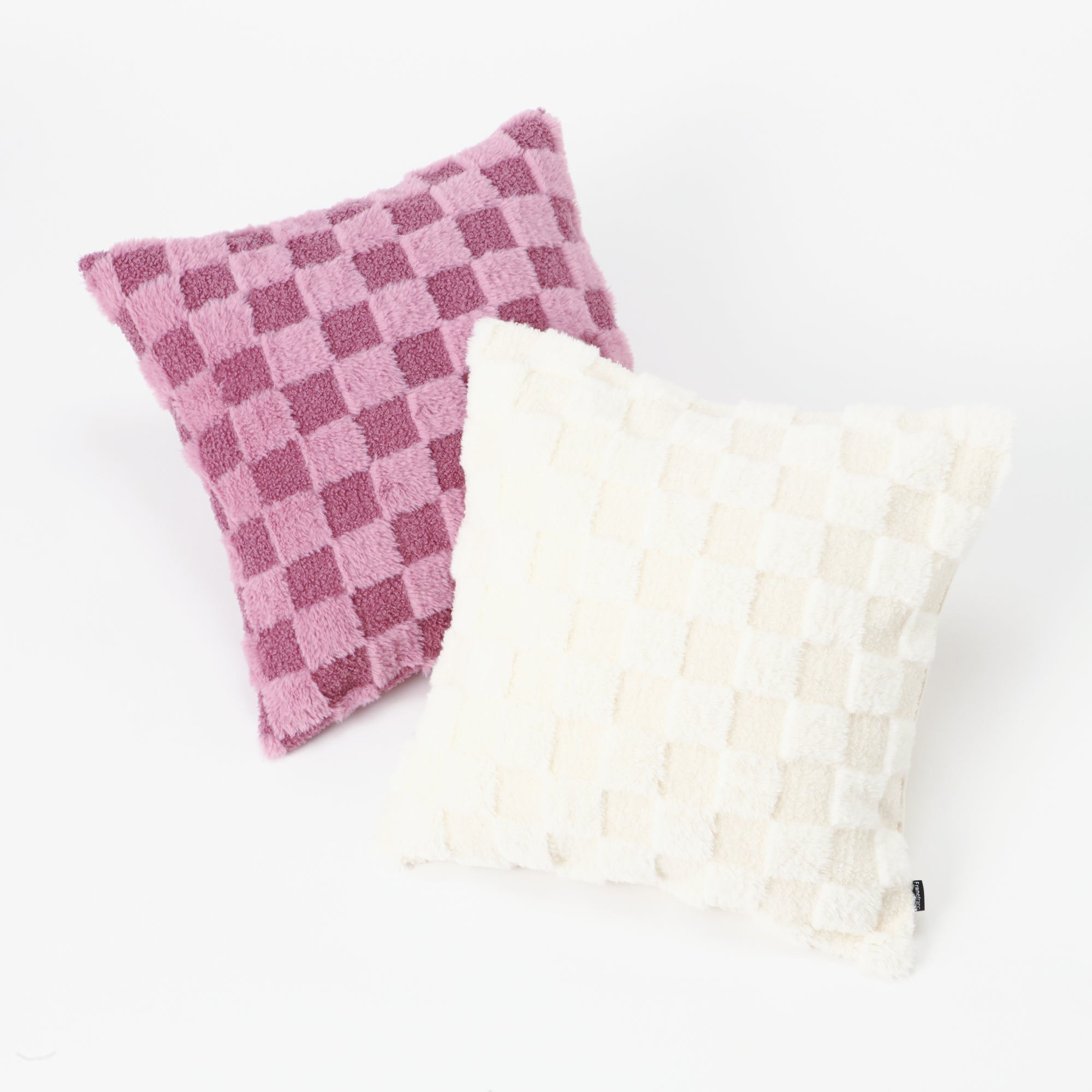 異素材ファーをチェッカーボード柄にデザインしたクッションカバーです。 ▼クッションカバーの中材(別売り)はこちら クッションヌード一覧