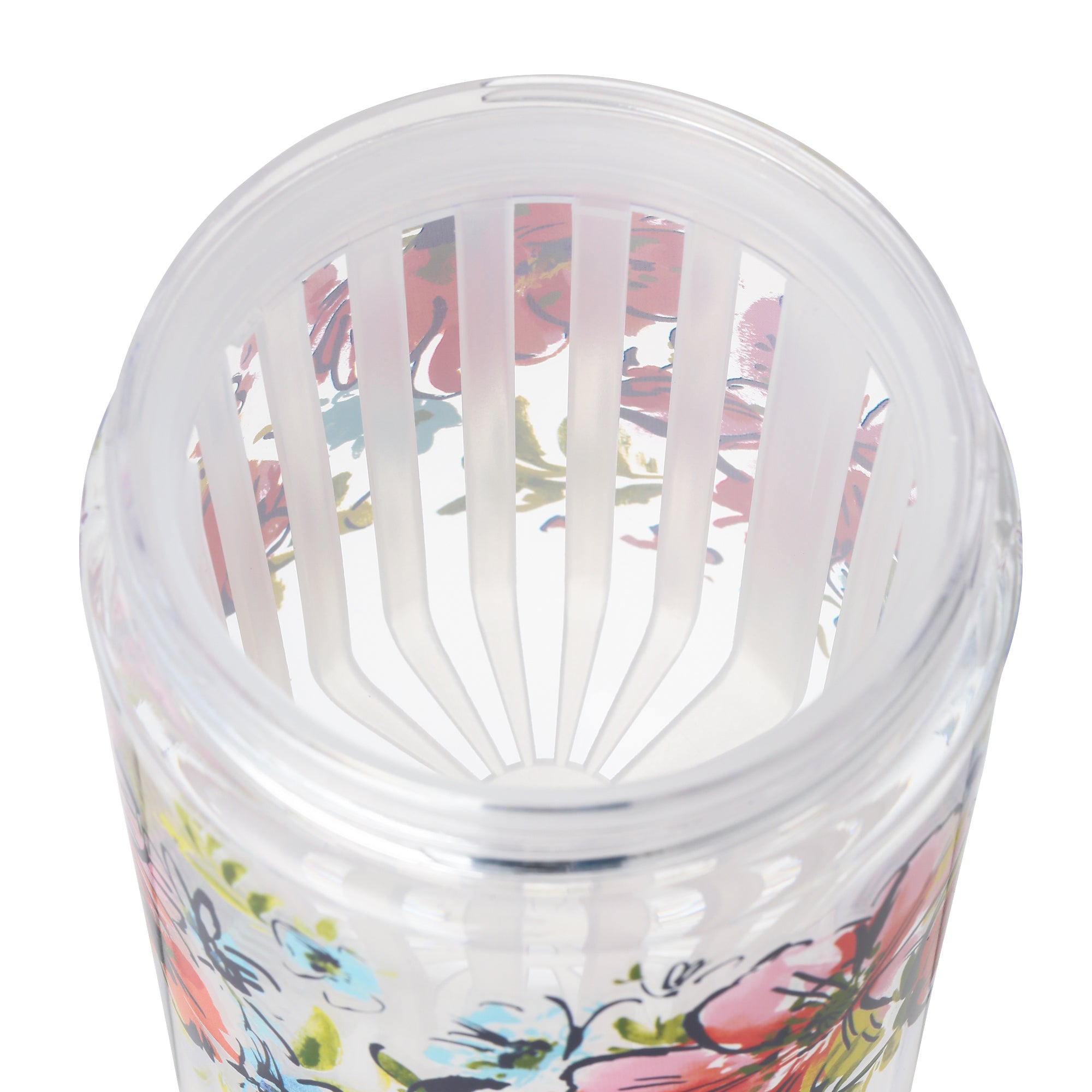 女性の方でも片手で持てる花柄のデザインが素敵なティーボトルです。この商品はピンクのカラーバリエーションとなっています。1L用麦茶などの水出しパックに丁度良い容量で、冷蔵庫のポケットにもぴったり納まる設計になっていてとても便利です。冷水筒にもこだわりたい方へのギフトにもおすすめです。花柄と上部の色の組み合わせがとても可愛いデザインになっています。これ一つ冷蔵庫の中にあるだけでも殺風景になりがちな冷蔵庫も明るく、華やかな印象になります。大容量なため家族でのご使用はもちろんのこと、一人暮らしの方でもたっぷりとストックしておきたい方にぴったりの大きさになっています。また、上部は取り外し可能なため、洗いやすく衛生的です。麦茶や緑茶を作るのに最適な形状です。