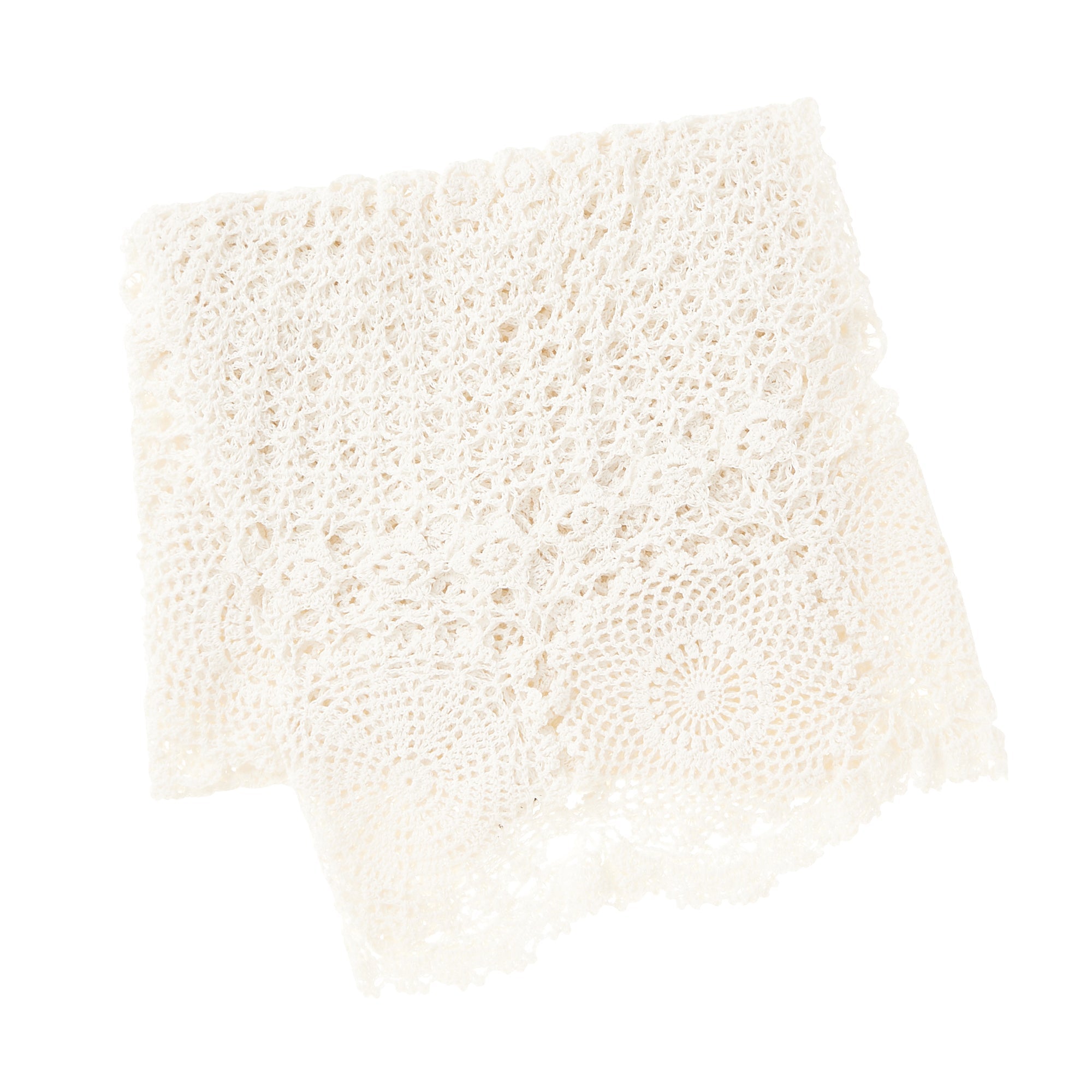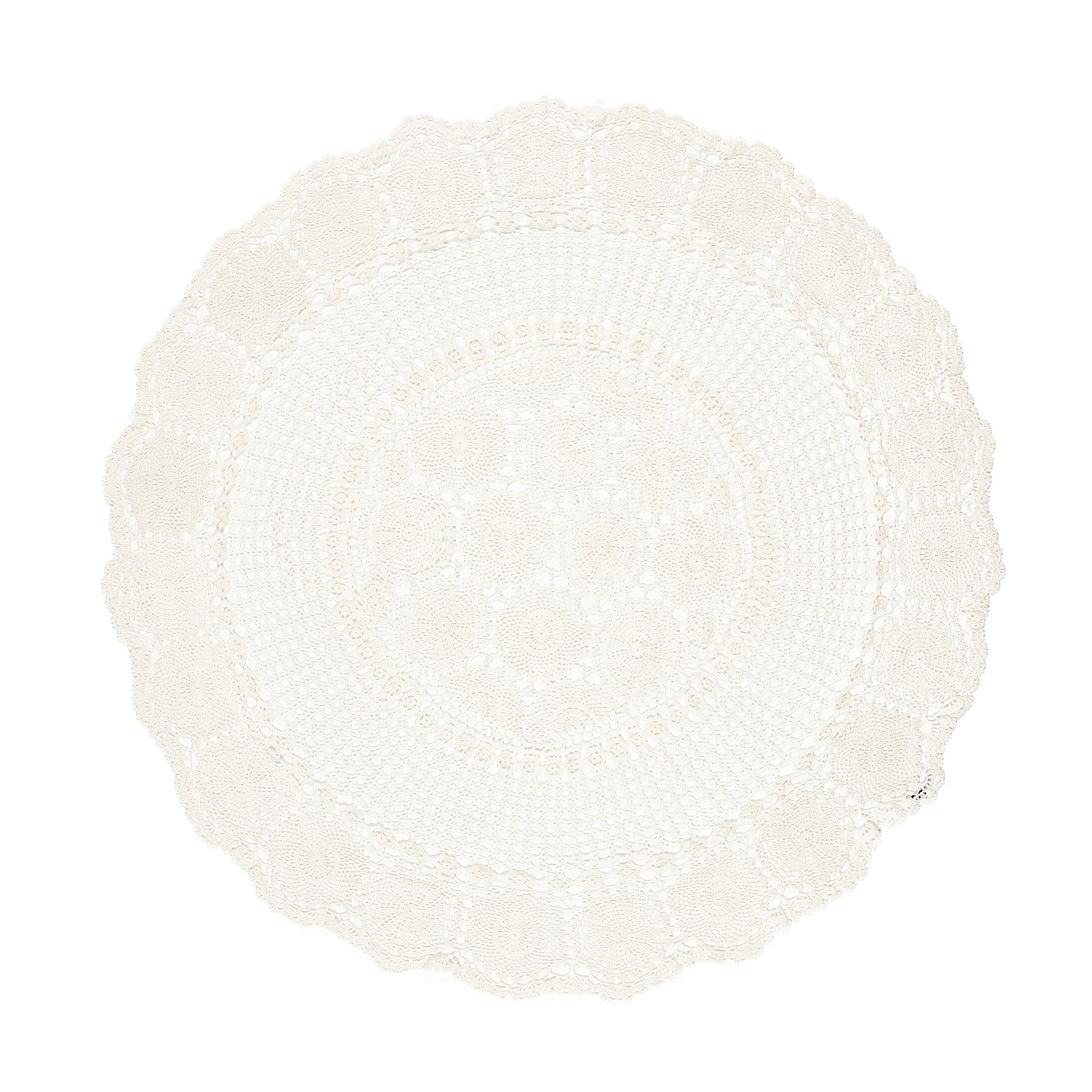 クロシェ編みのキャッチーなラウンド型マルチカバーです。一枚一枚手編みで生産している贅沢な商品。ベッド、ソファーの上にワンポイントとして合わせていただくと、さらに華やかなコーディネートを楽しめます。