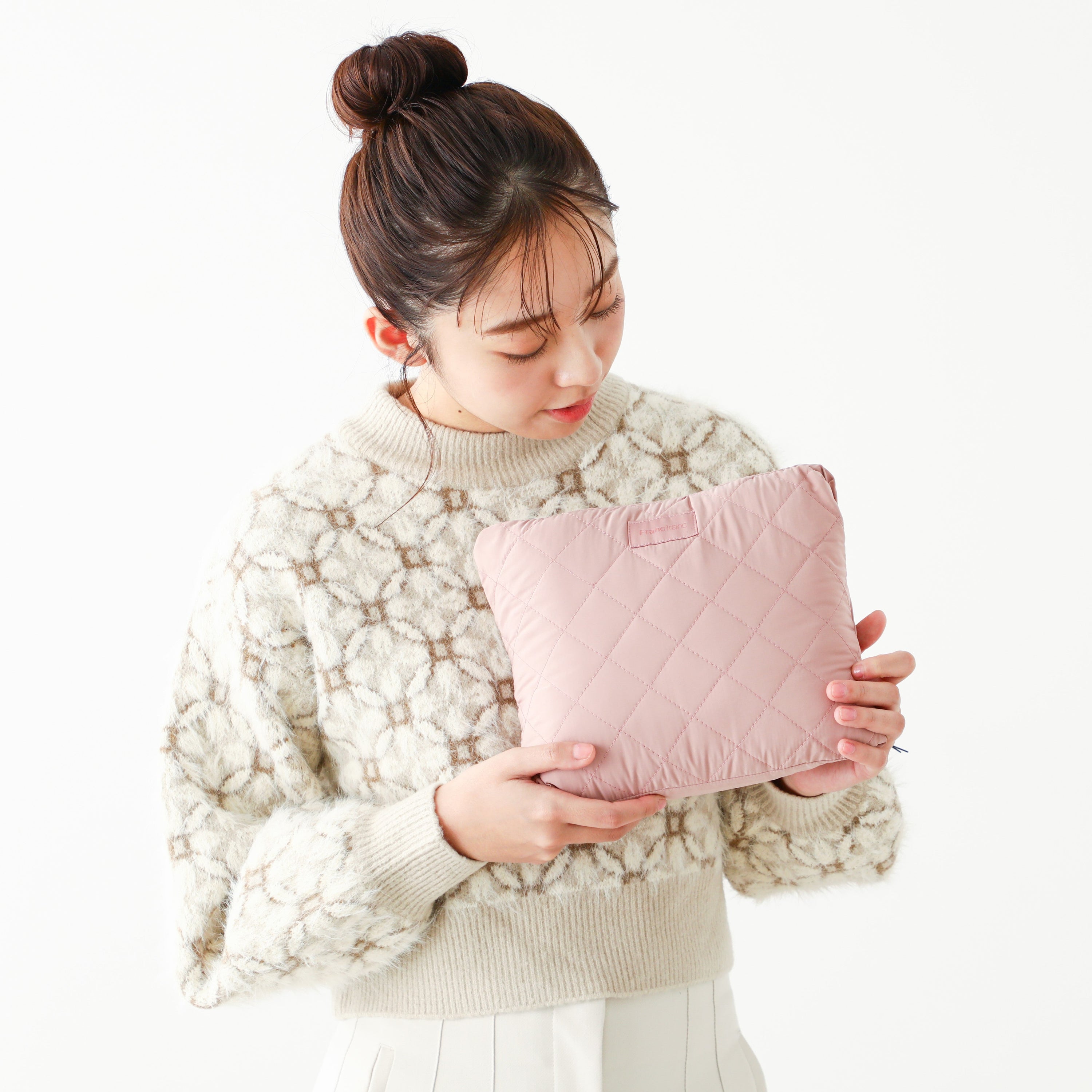 持ち運びに便利なリバーシブル素材のひざ掛けです。本体に縫製されたポケットにひざ掛けを畳んで収納する事が出来ます。なめらかで触り心地の良いマイクロファイバー素材の面と撥水加工されたポリエステル素材の面のリバーシブル仕様で、屋外でも扱いやすいアイテム。ひざ掛けだけでなく、羽織ったり敷いたりと幅広い使い方ができます。スウィートなテイストがお好きな方におすすめのアイテムです。キルティングシリーズでは他にもリモートワークやトラベルに便利で可愛いアイテムをご用意しております。あわせてコーディネートをお楽しみください。