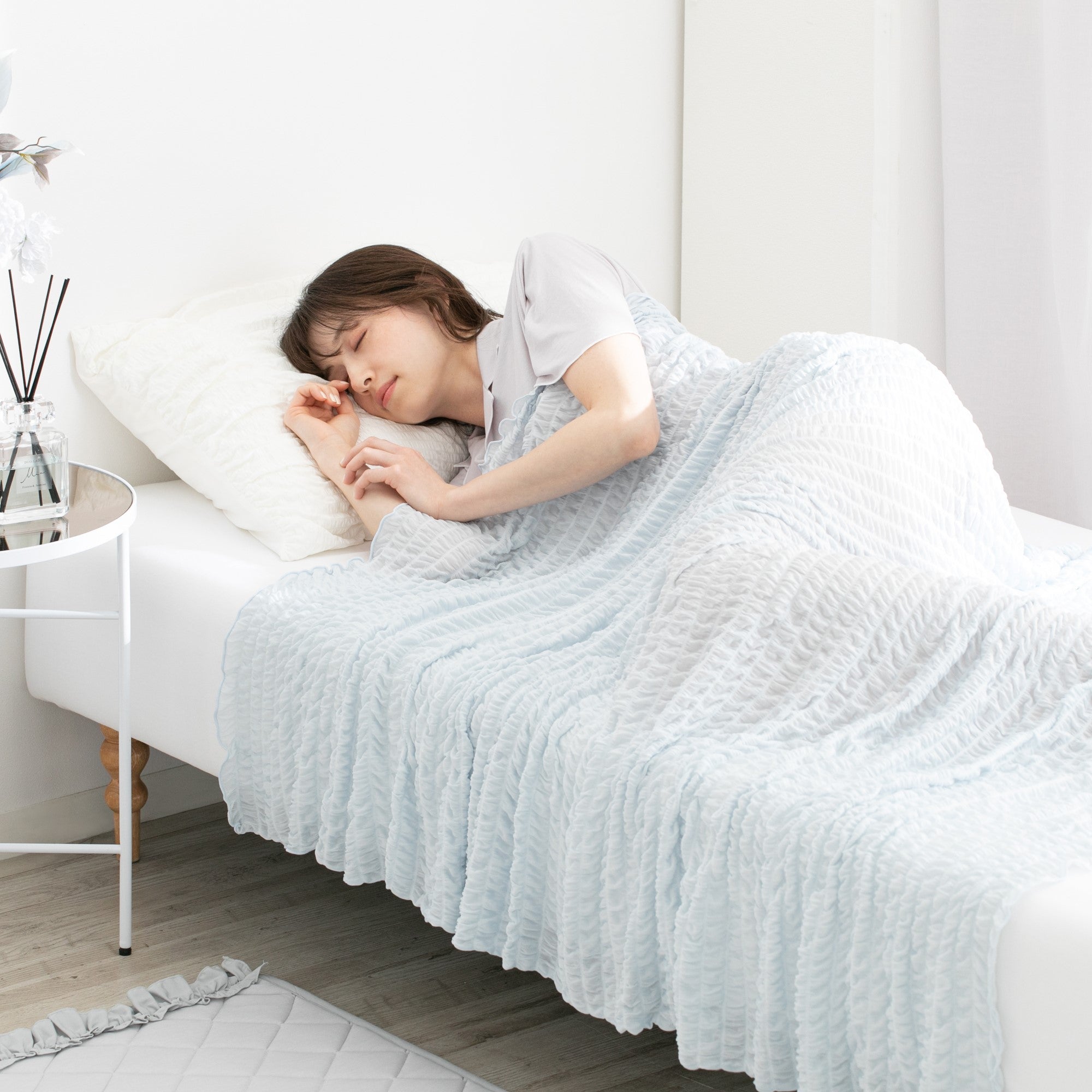 ひんやり リップル ブランケット(毛布) ハーフ ブルー